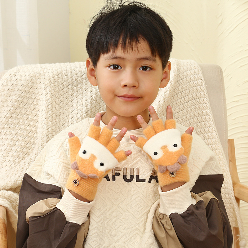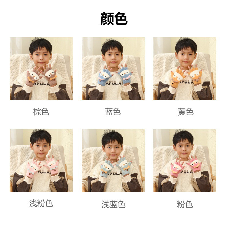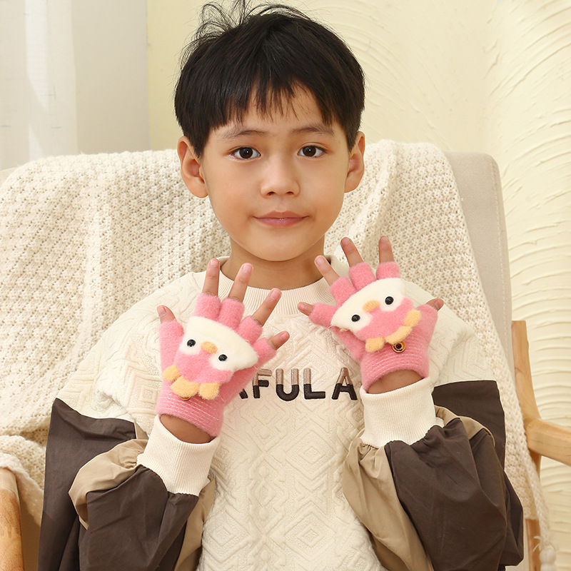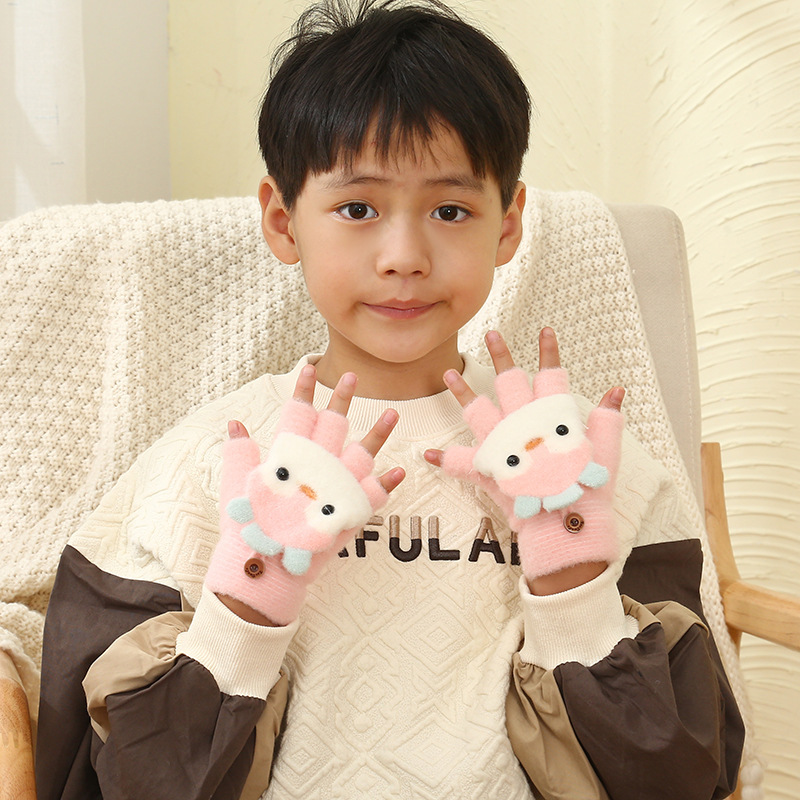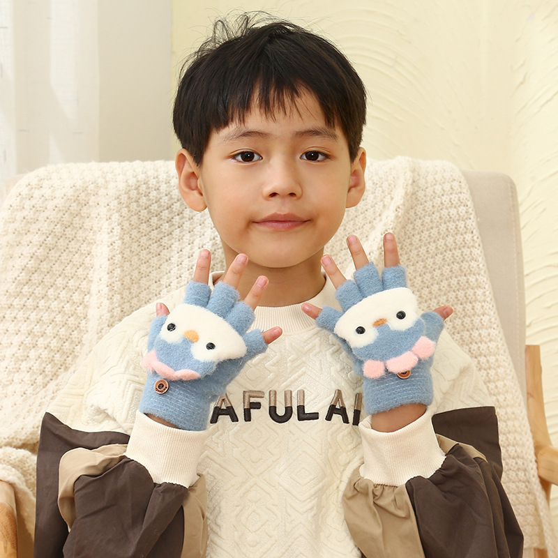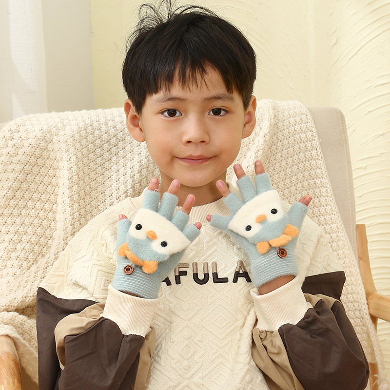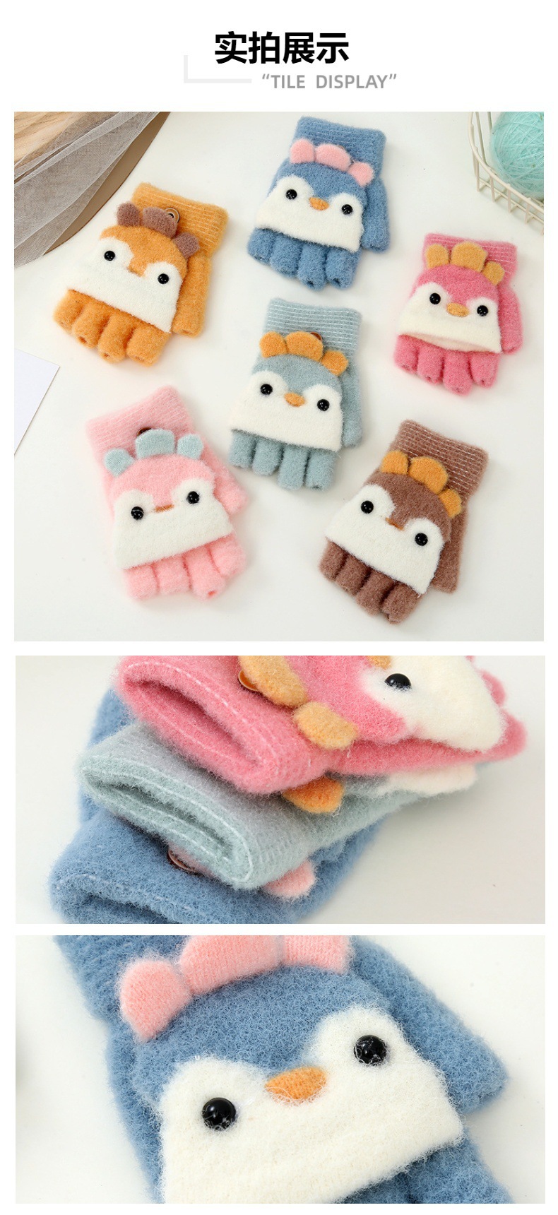 겨울 펭귄 장갑 어린이 따뜻한 장갑 귀여운 반 손가락 플립 커버 장갑 이중 목적 어린이 손가락 누출 장갑