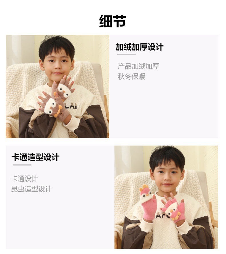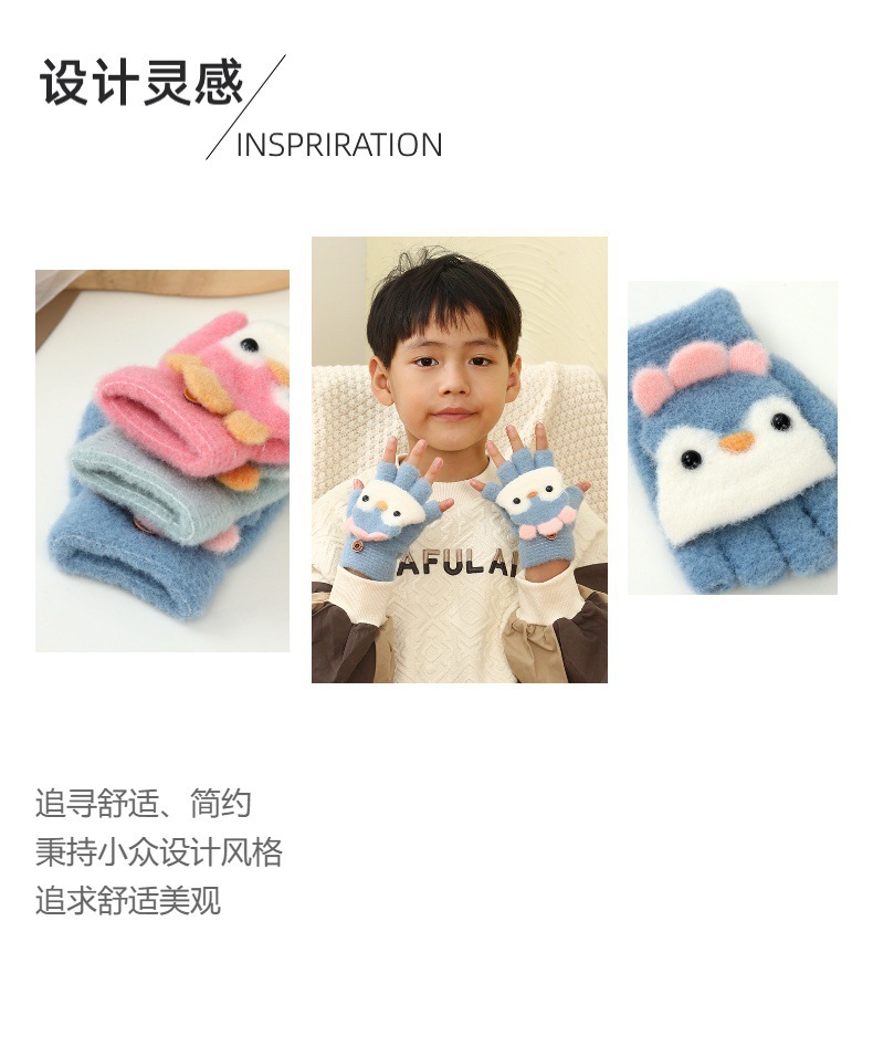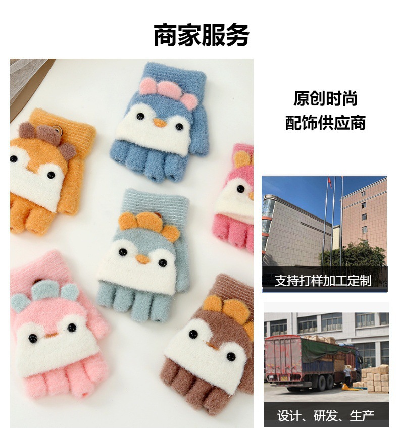 冬季企鹅手套儿童保暖手套可爱半指翻盖手套两用儿童漏指手套