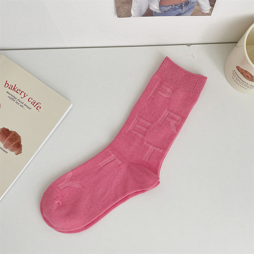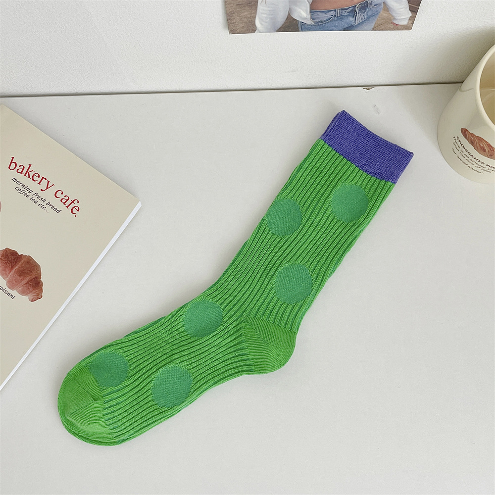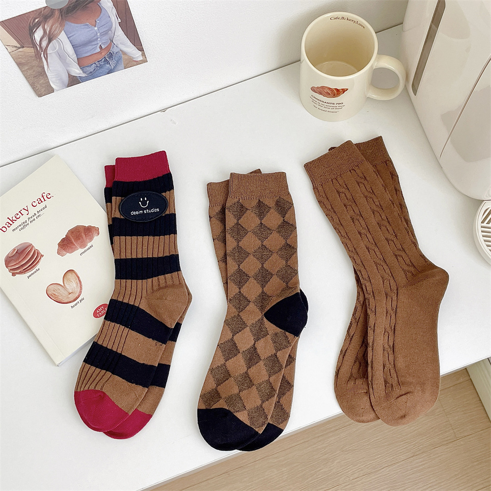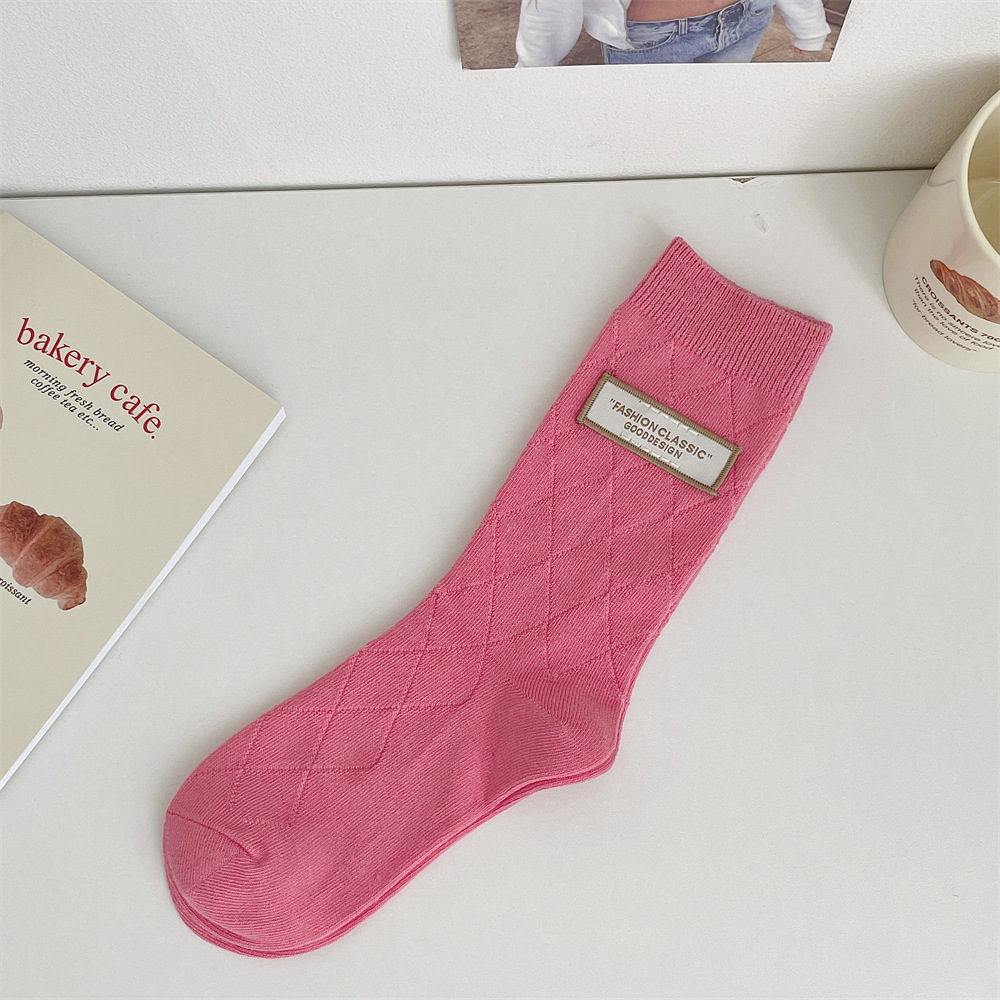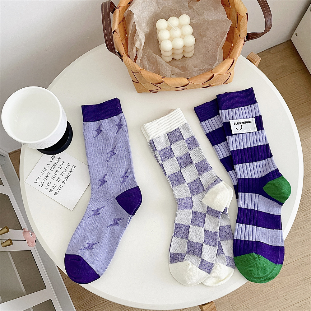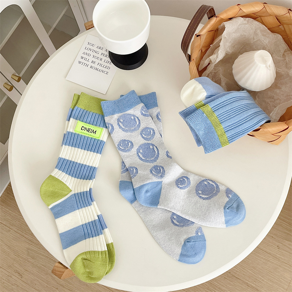 도파민 양말 여성 중간 배럴 대비 색상 Ins 일본 유행 양말 사계절 천 라벨 줄무늬 한국 스타일 스택 양말 스타킹스토어 가기