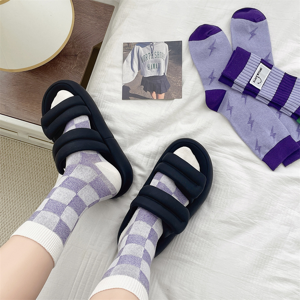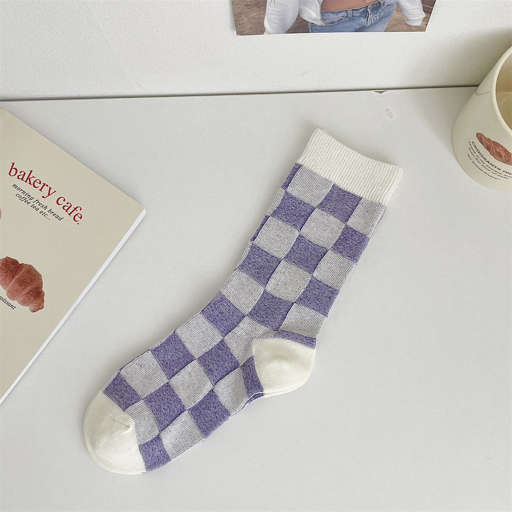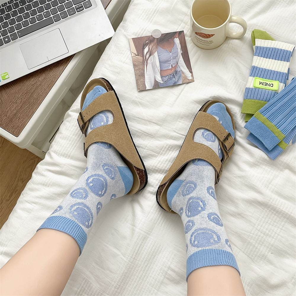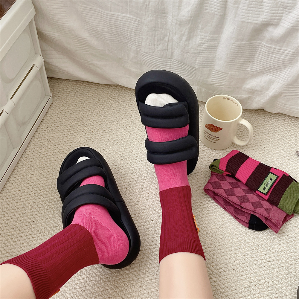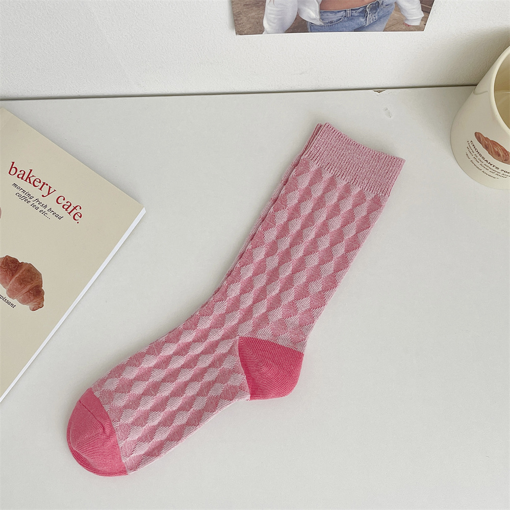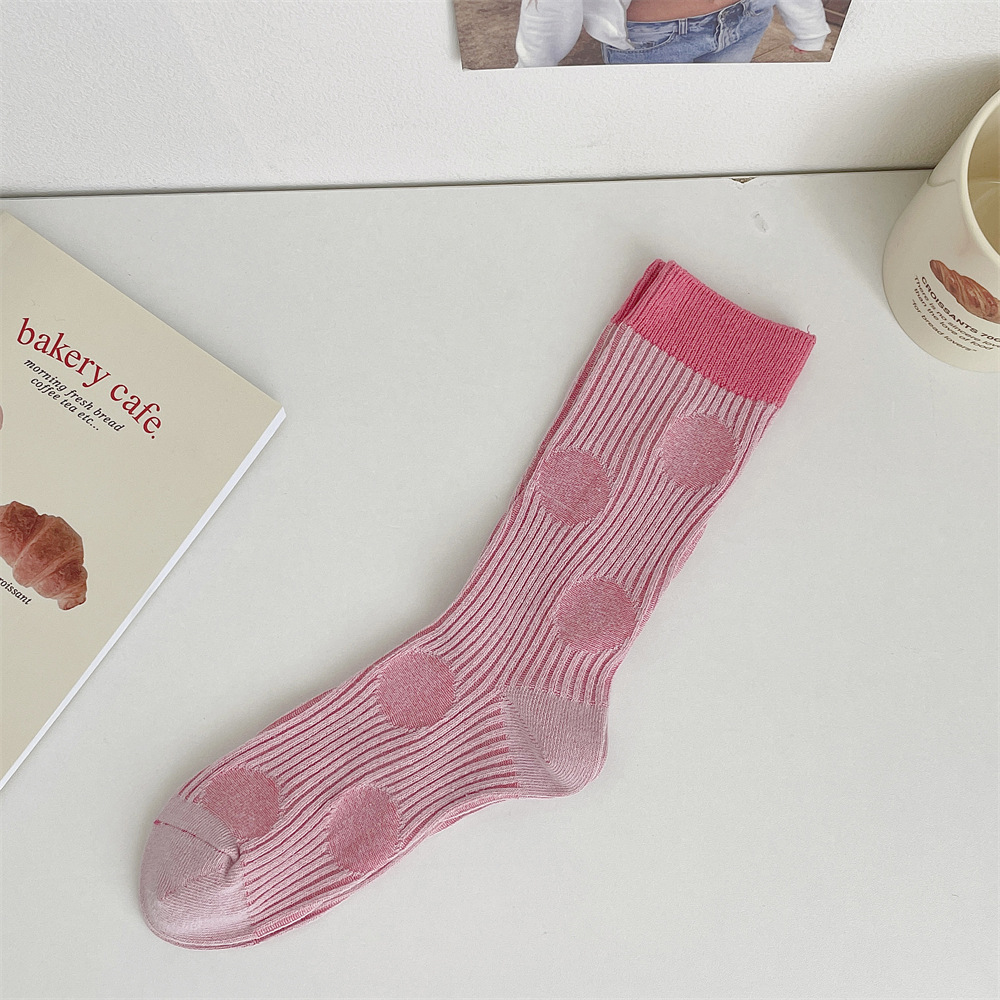 도파민 양말 여성 중간 배럴 대비 색상 Ins 일본 유행 양말 사계절 천 라벨 줄무늬 한국 스타일 스택 양말 스타킹스토어 가기