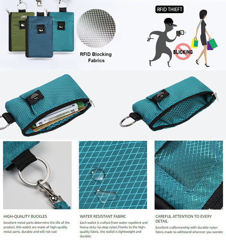 맞춤형 도난 방지 카드 지갑 미니 동전 지갑 RFID 신호 차단 가방 휴대용 열쇠 동전 카드 홀더 목걸이 가방스토어 가기