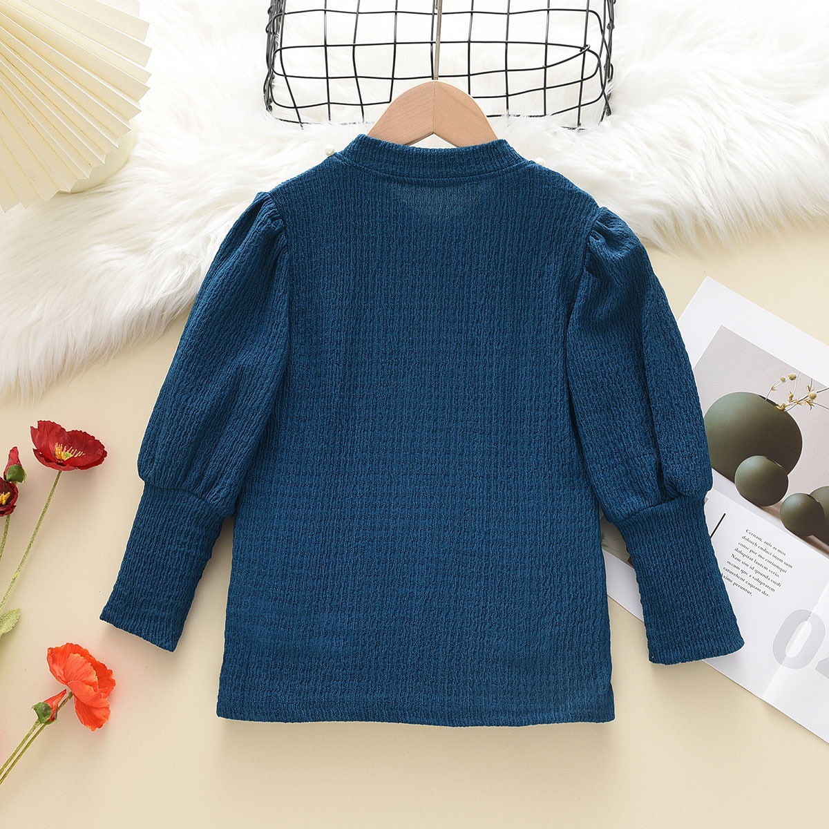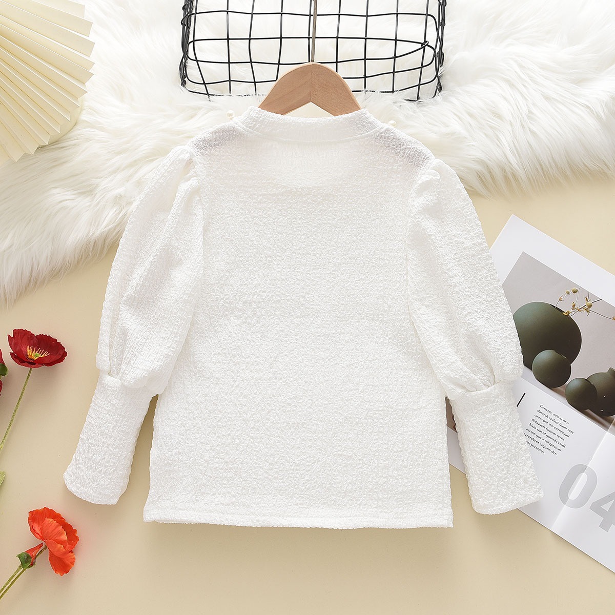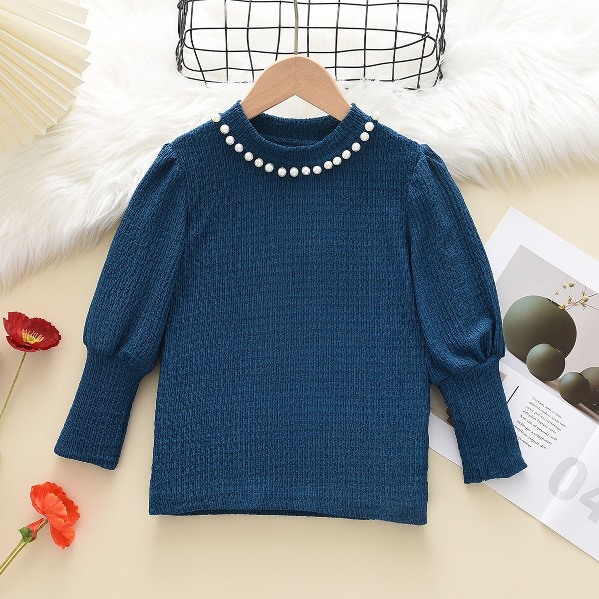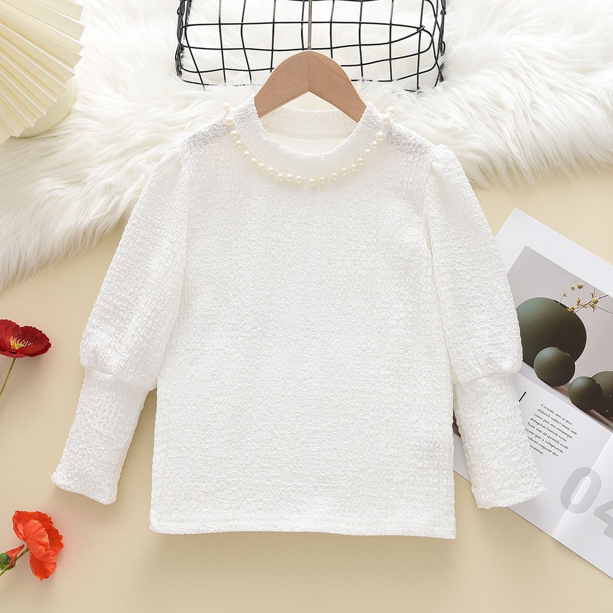 6365 소녀 버블 슬리브 탑 구슬 베이스 셔츠 아기 공주 긴 소매 셔츠 어린이 봄 한국 스타일 외국 스타일 아동복