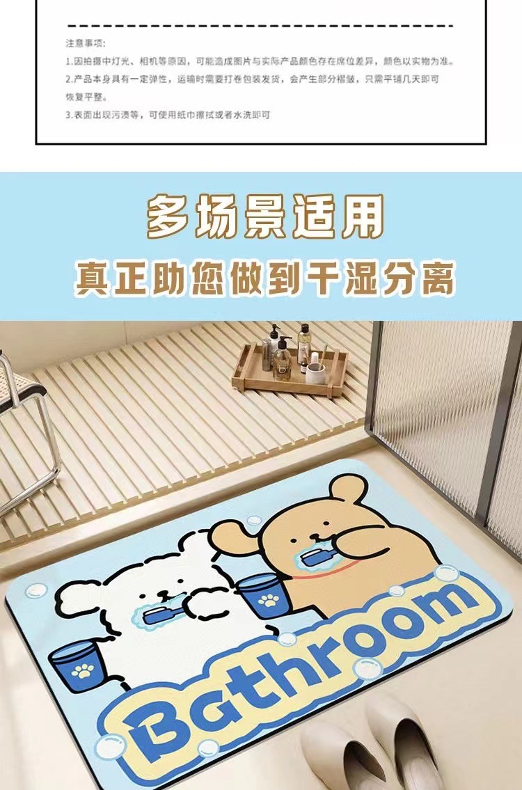 만화 욕실 바닥 매트, 얼룩 방지 규조토 진흙 바닥 매트, 욕실 흡수 매트, 출입문 미끄럼 방지 매트, 가정용 바닥 매트스토어 가기