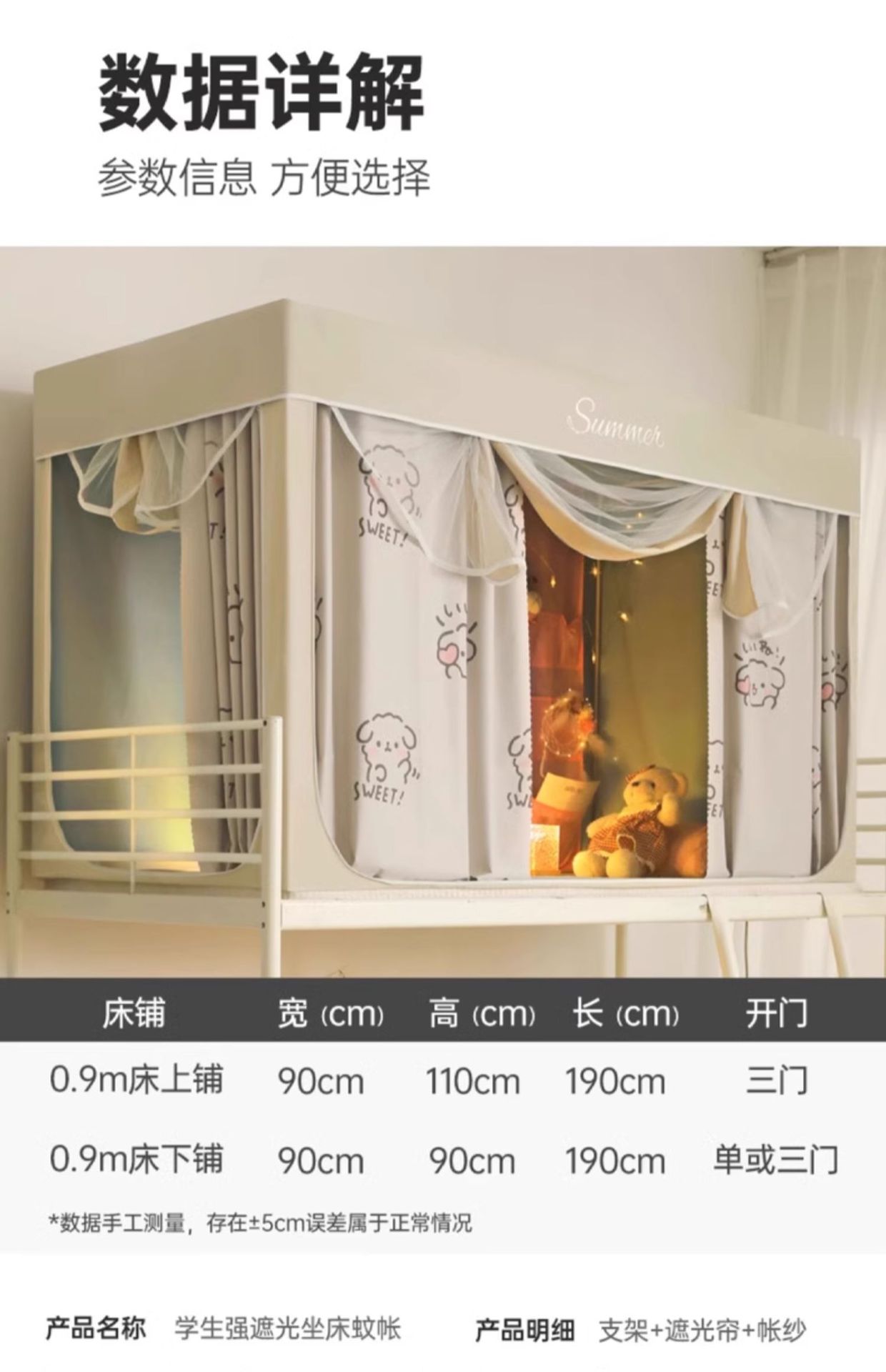• 0.8~0.9m 침대 - 상하 범용 3도어 [폭 및 높이 텔레스코픽] 190*70~90*높이 9