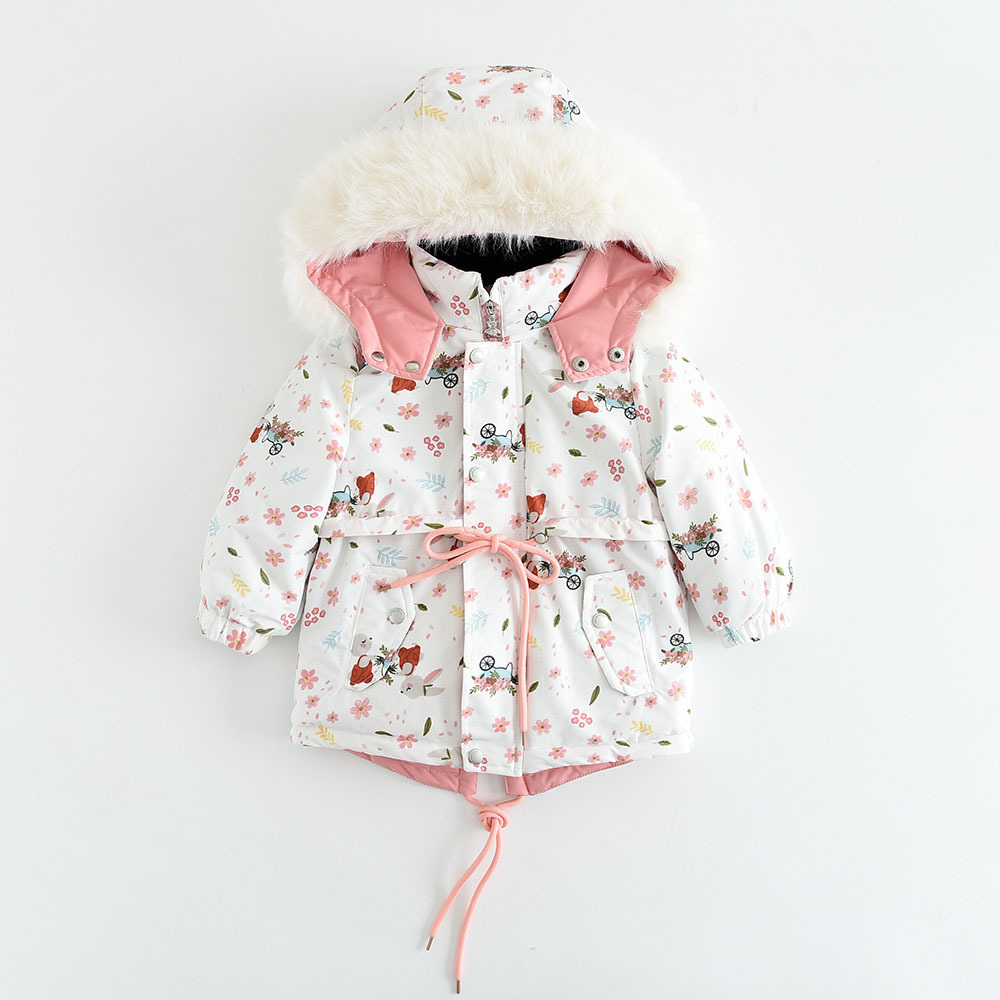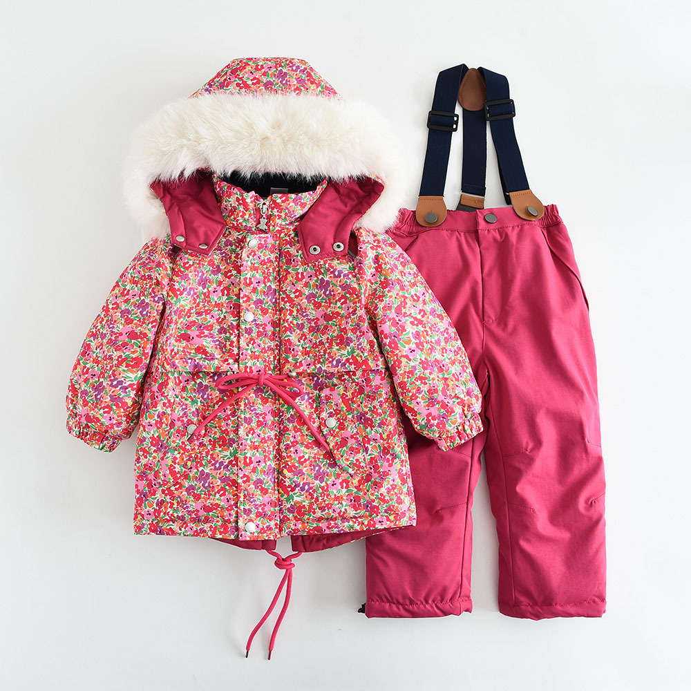 방수 퀼트 두꺼운 소녀의 후드 스키 복 세트 어린이 외출복 3 피스 세트 2025 겨울 새 스타일스토어 가기