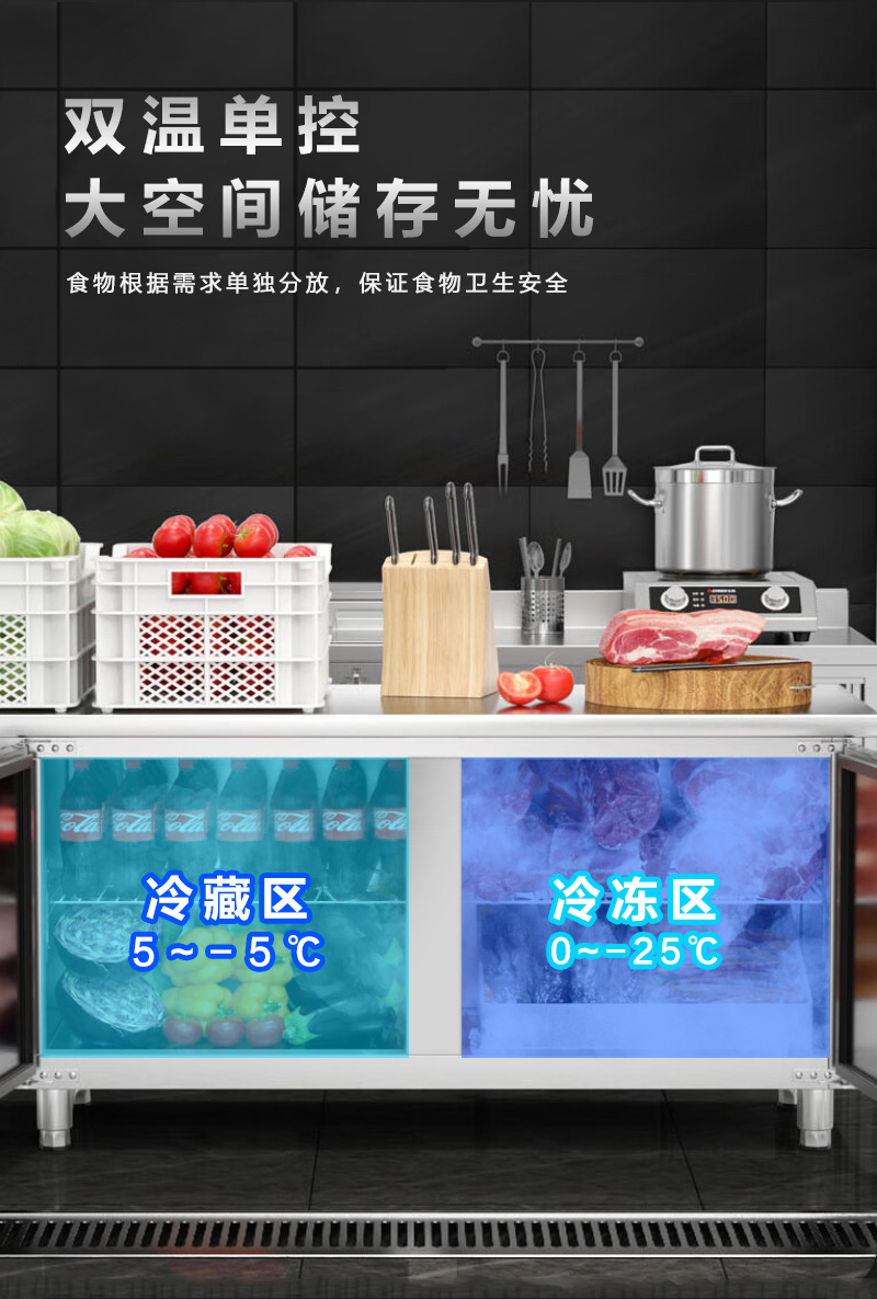 플랫 냉동고 냉동 작업대 냉동고 신선한 케이스 유형 주방 냉동고 콘솔 냉장고 상업용 우유 차 가게스토어 가기