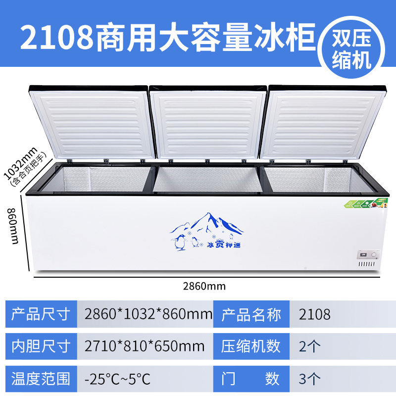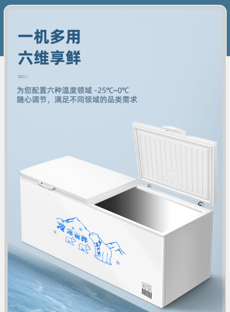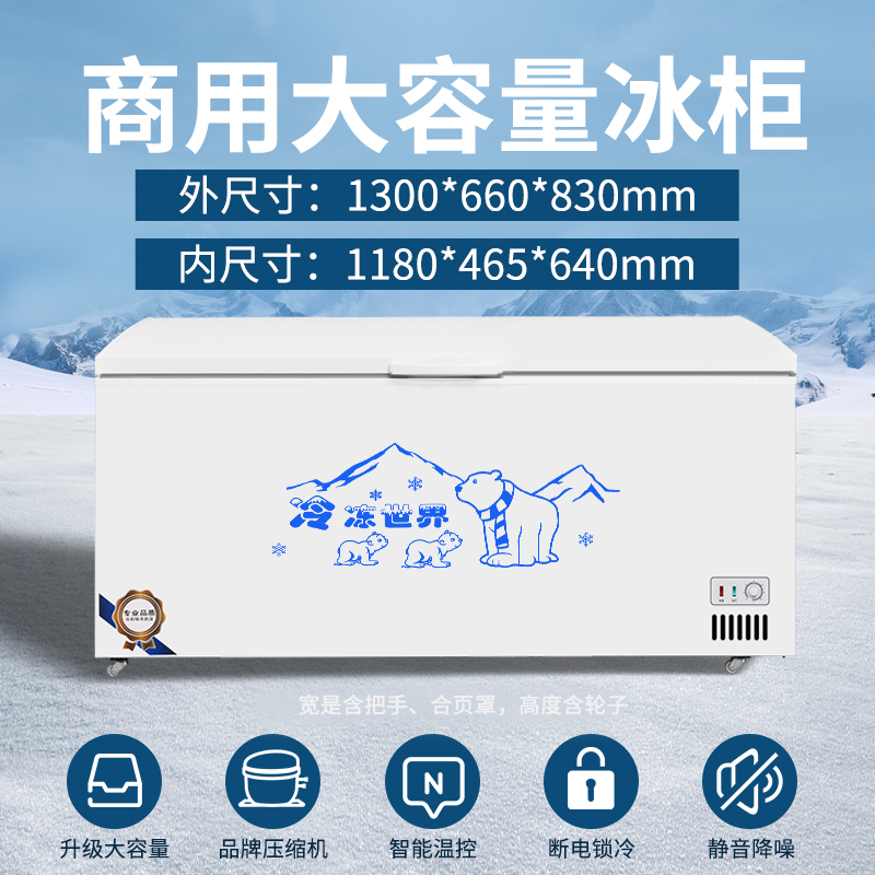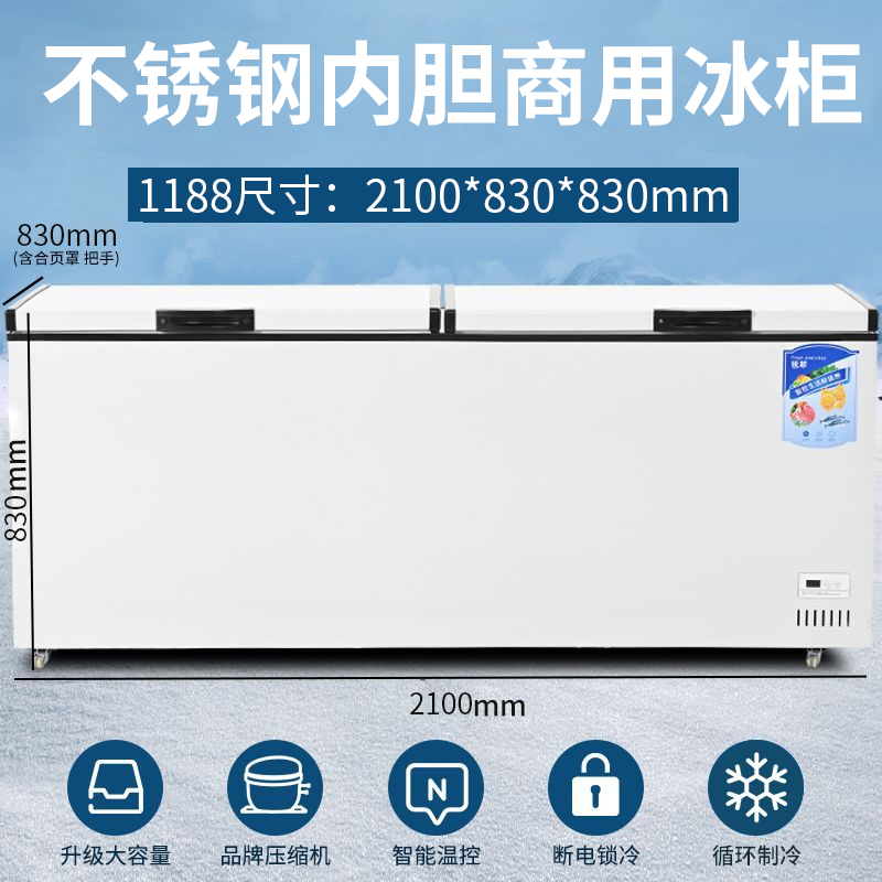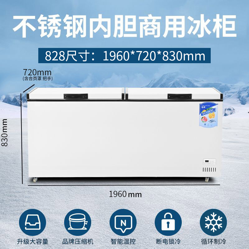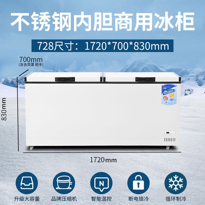 냉동고 상업용 대용량 냉장고 가정용 냉동 신선한 유지 냉동 이중 목적 구리 튜브 수평 냉동고 단일 및 이중 온도 냉장고스토어 가기
