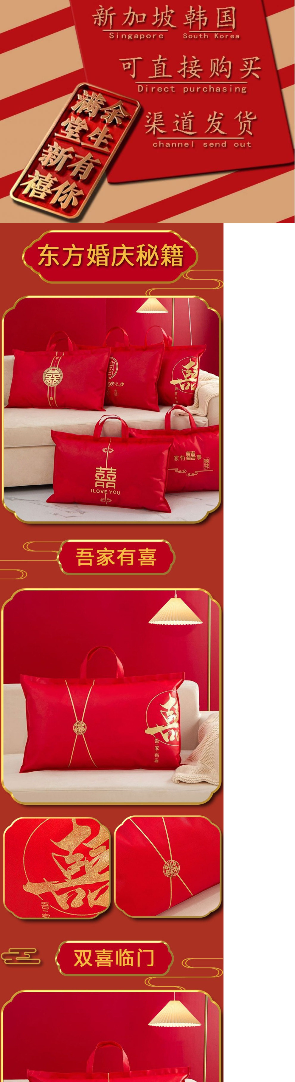웨딩 베개 보관 가방 축제 큰 빨간 베개 커버 대형 선물 가방 웨딩 베개 코어 포장 가방스토어 가기