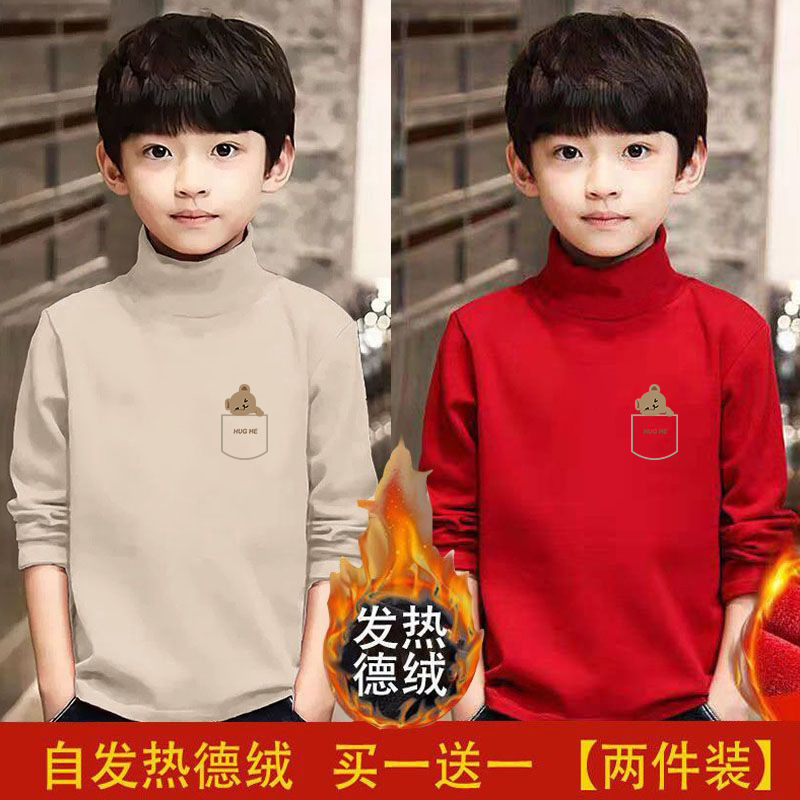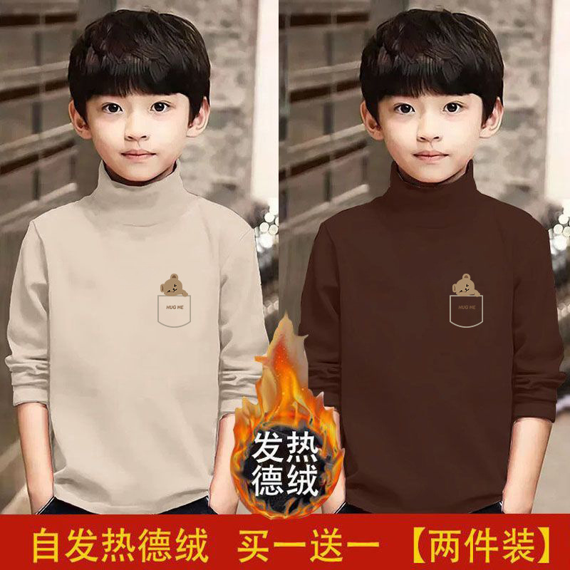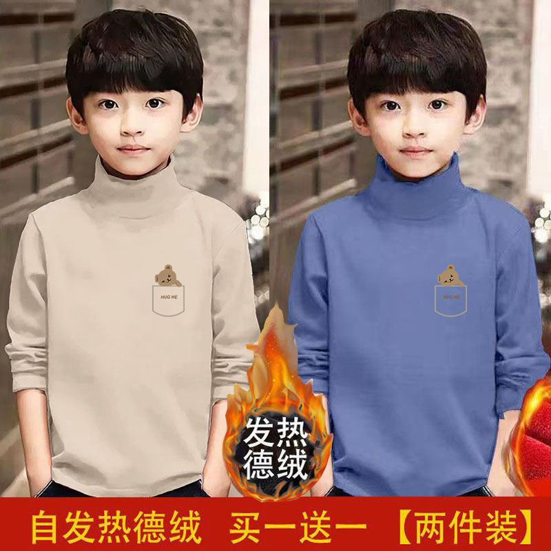 Y2556 # 어린이 벨벳 바닥 가을과 겨울 소년 긴팔 티셔츠 아기 기모 따뜻한 코트 반 높은 칼라 조수스토어 가기