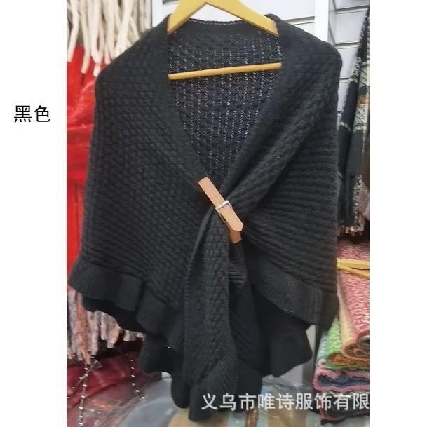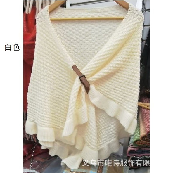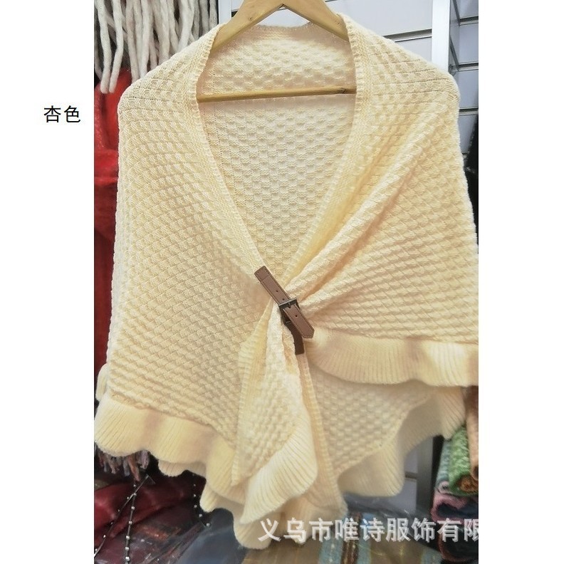 한국 스타일 삼각형 PU 가죽 버클 니트 러플 목도리 따뜻한 장식 스카프 목도리 외부 착용스토어 가기