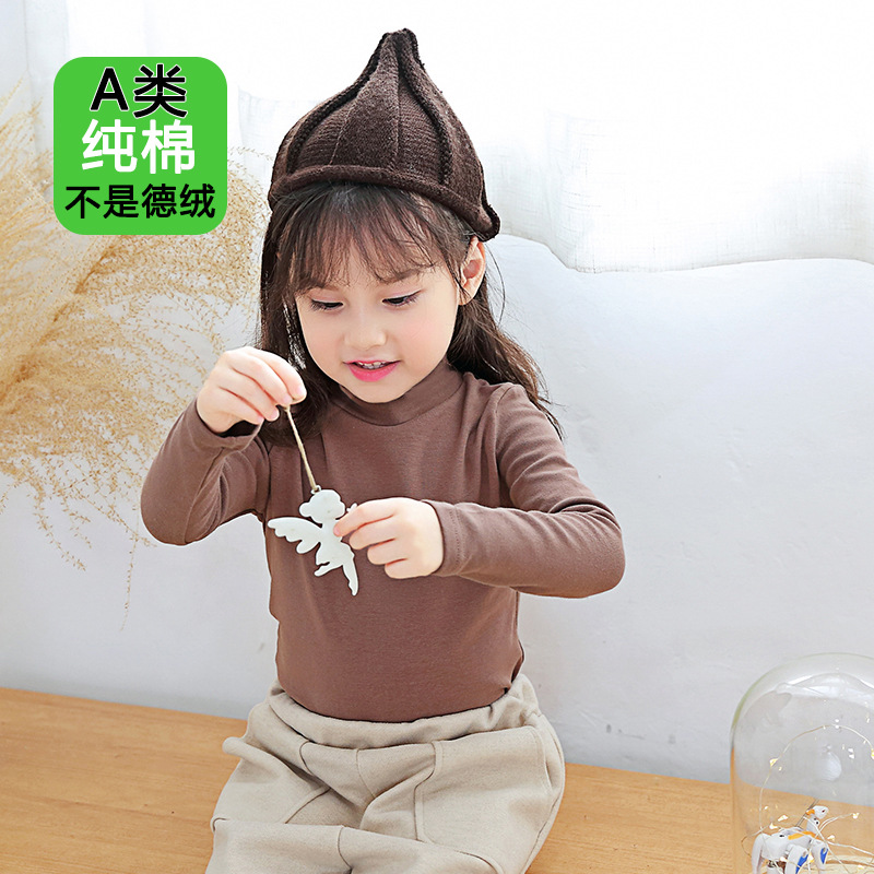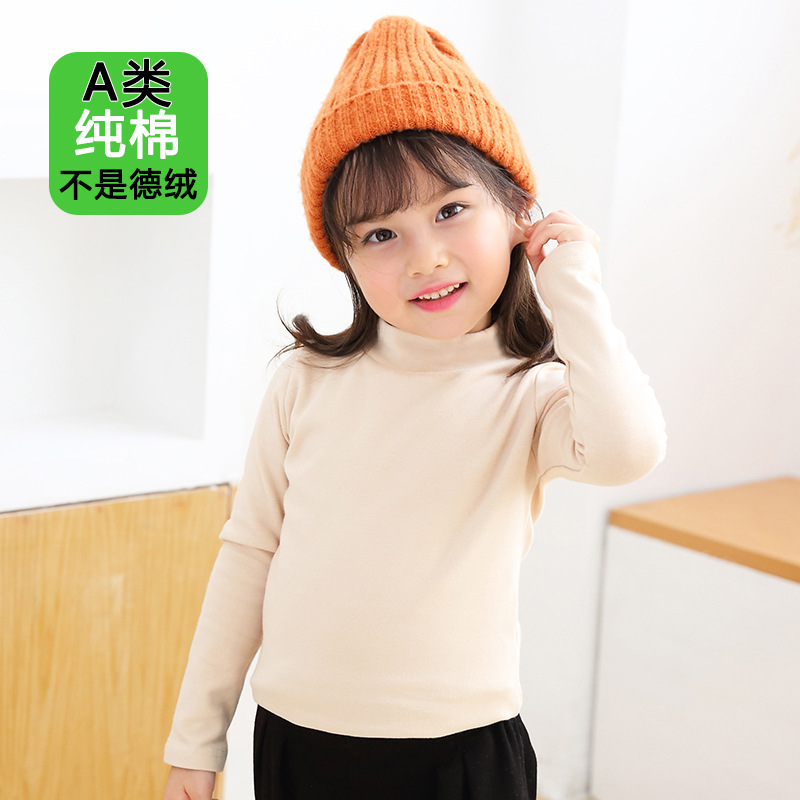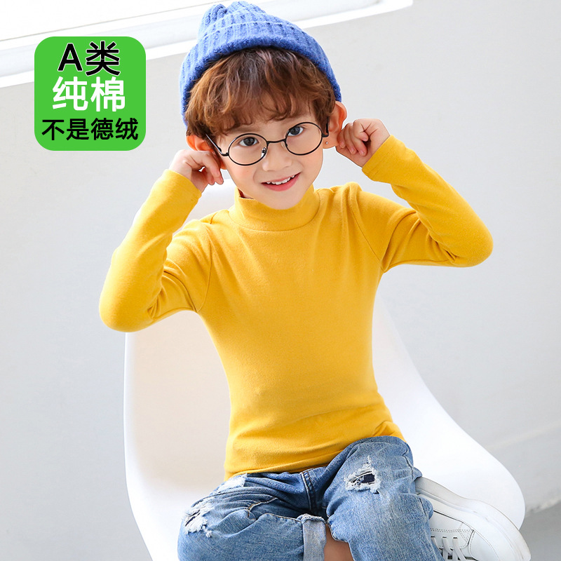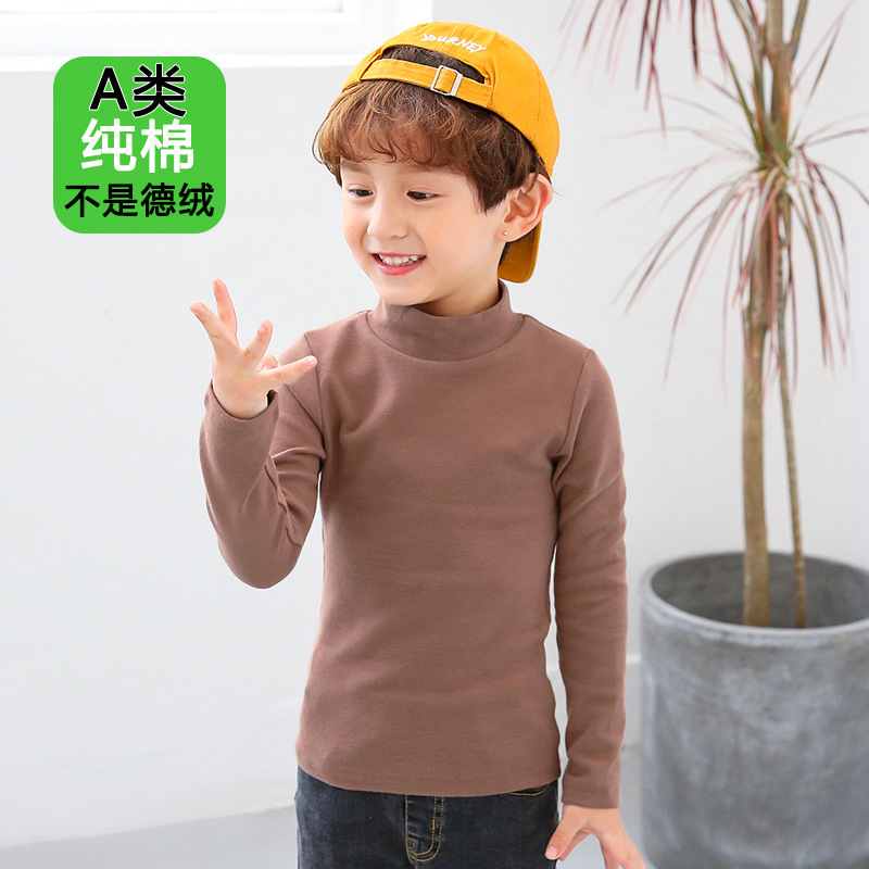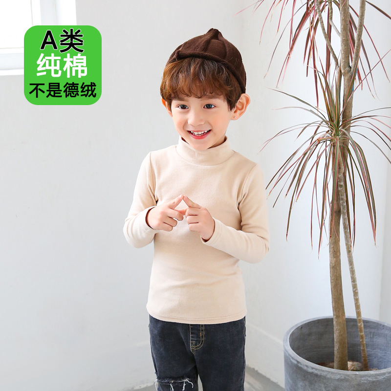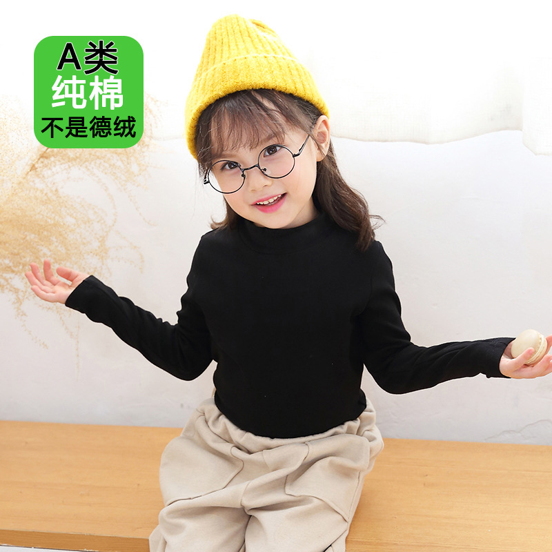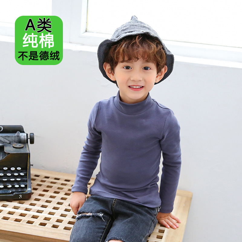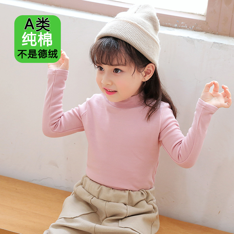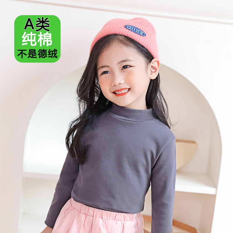 반 높이 칼라 걸스베이스 셔츠 가을 및 겨울 어린이 기지 셔츠 클래스 순수 코튼 내부 재킷 소년 소녀를위한 긴팔 티셔츠스토어 가기