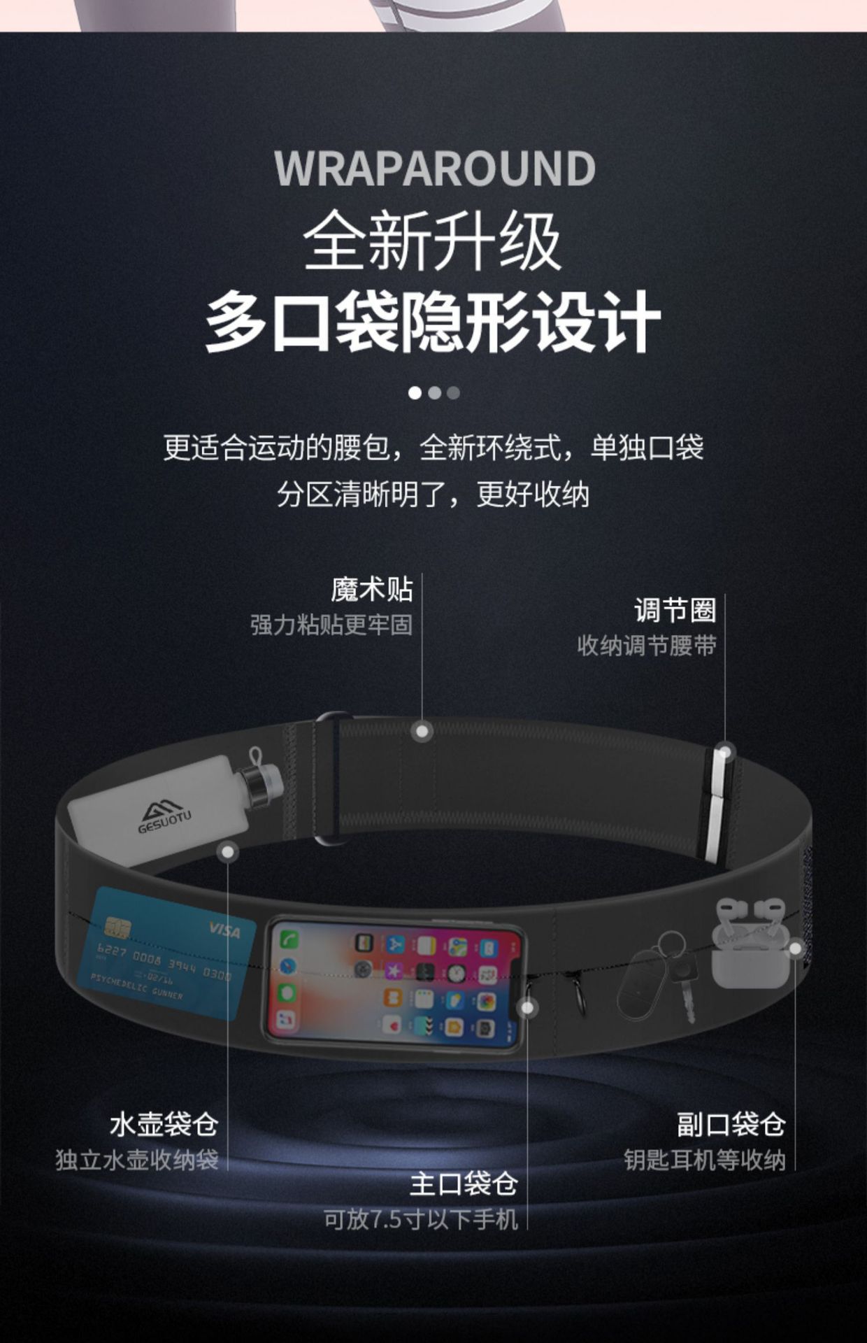 마라톤 프로 러닝 허리 가방 스트레치 스포츠 여자 벨트 워터 주전자 보이지 않는 벨크로 휴대 전화 가볍고 얇은
