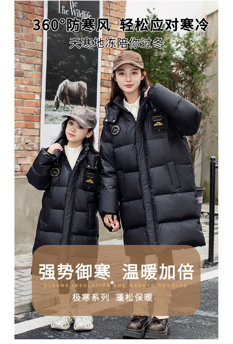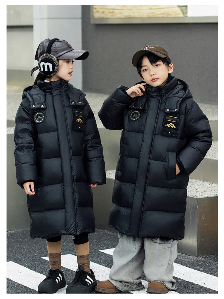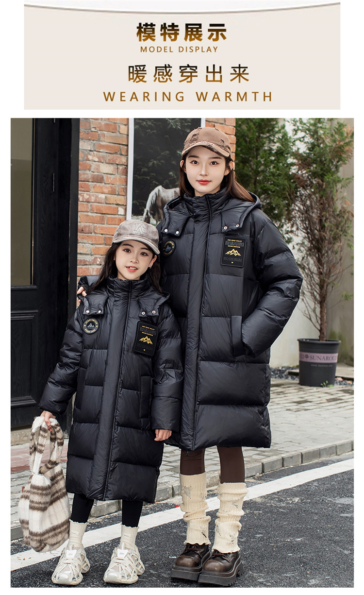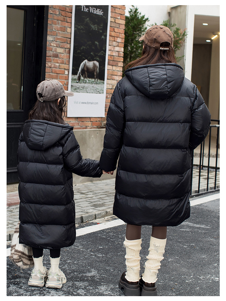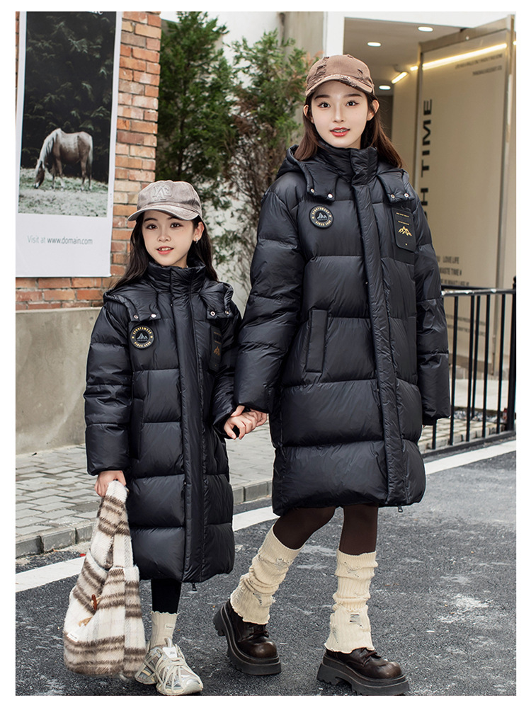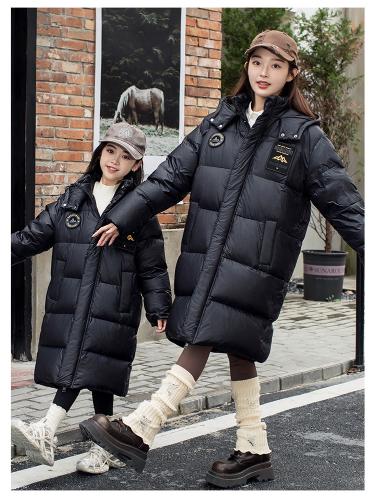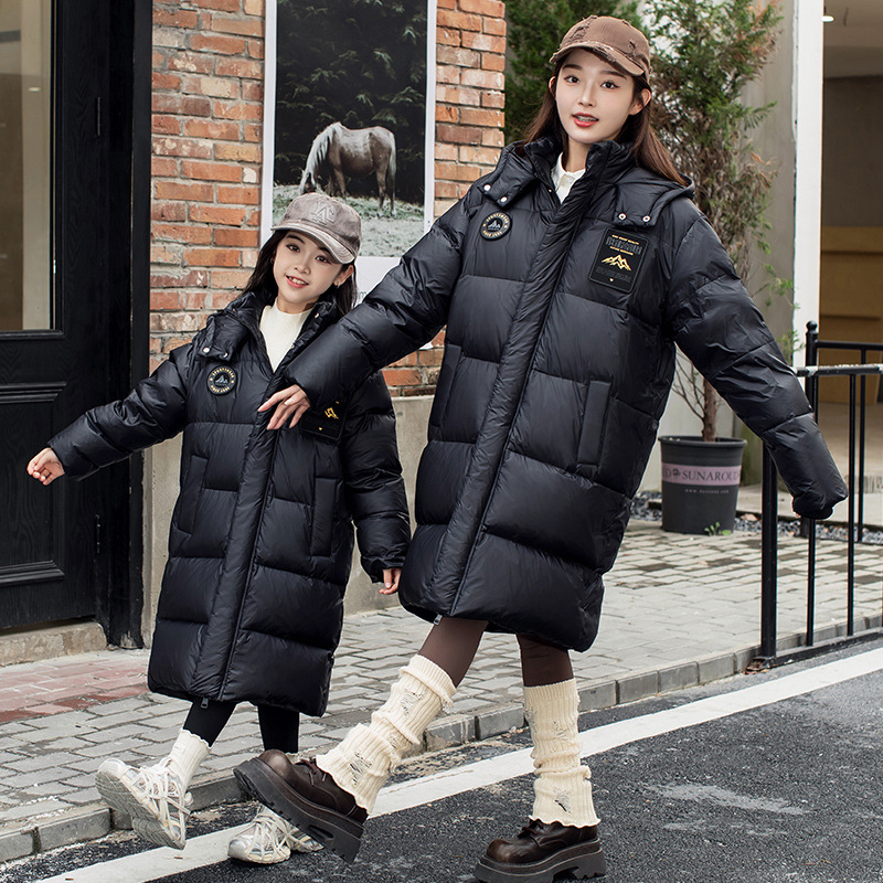 어린이용 블랙 골드 롱 두꺼운 어깨끈 코트 겨울옷 눈 시즌 부모-자녀용 남녀 아동용 깃털 벨벳 의류스토어 가기