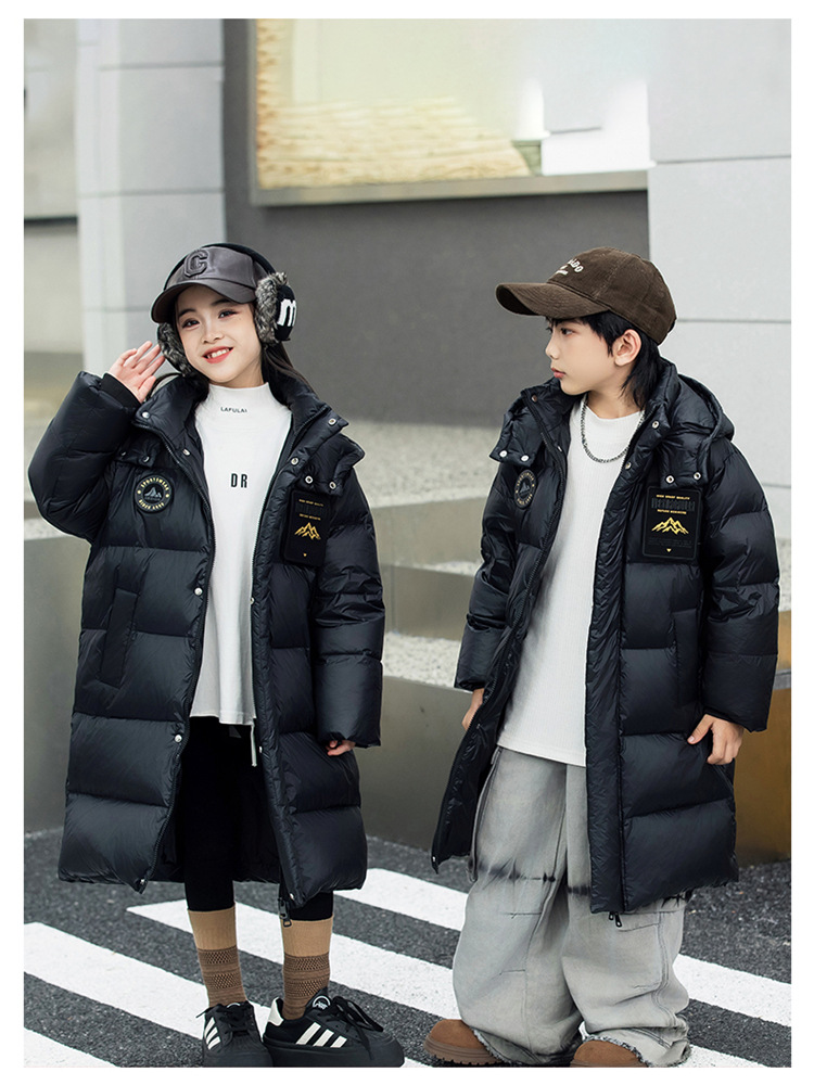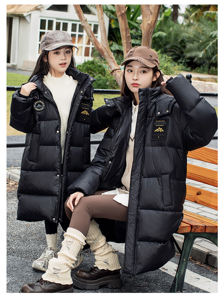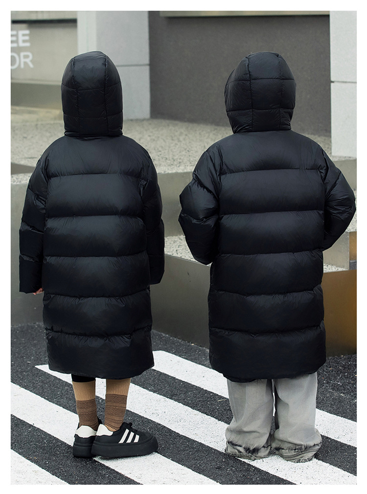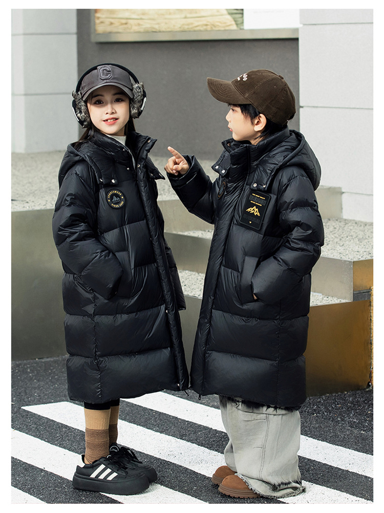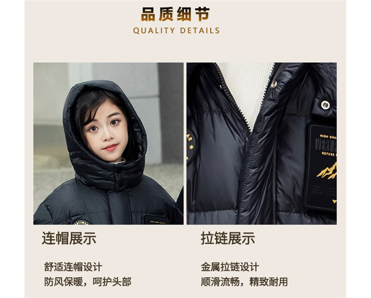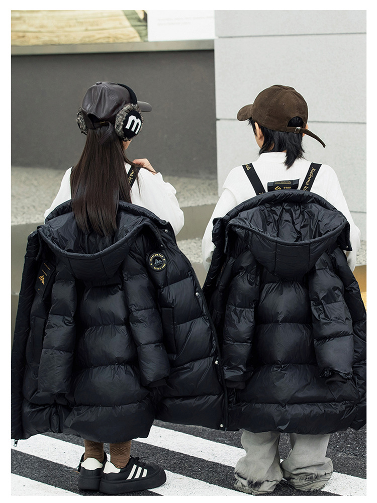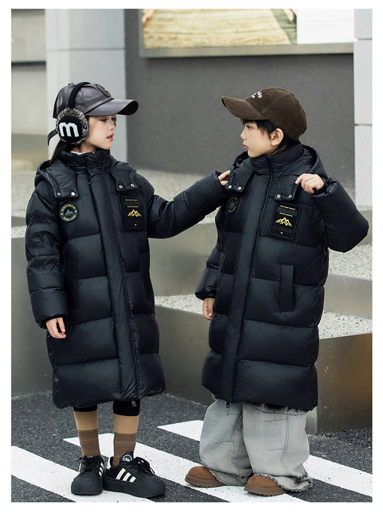어린이용 블랙 골드 롱 두꺼운 어깨끈 코트 겨울옷 눈 시즌 부모-자녀용 남녀 아동용 깃털 벨벳 의류스토어 가기