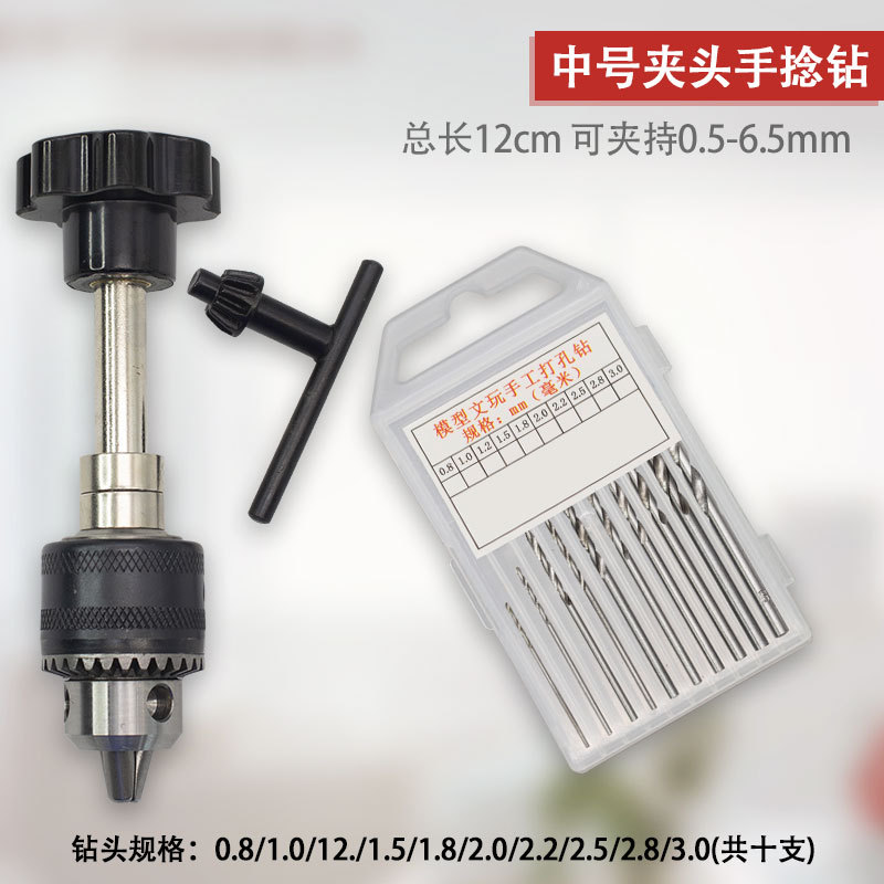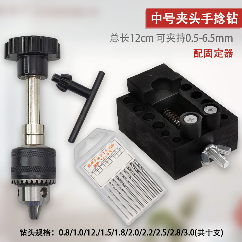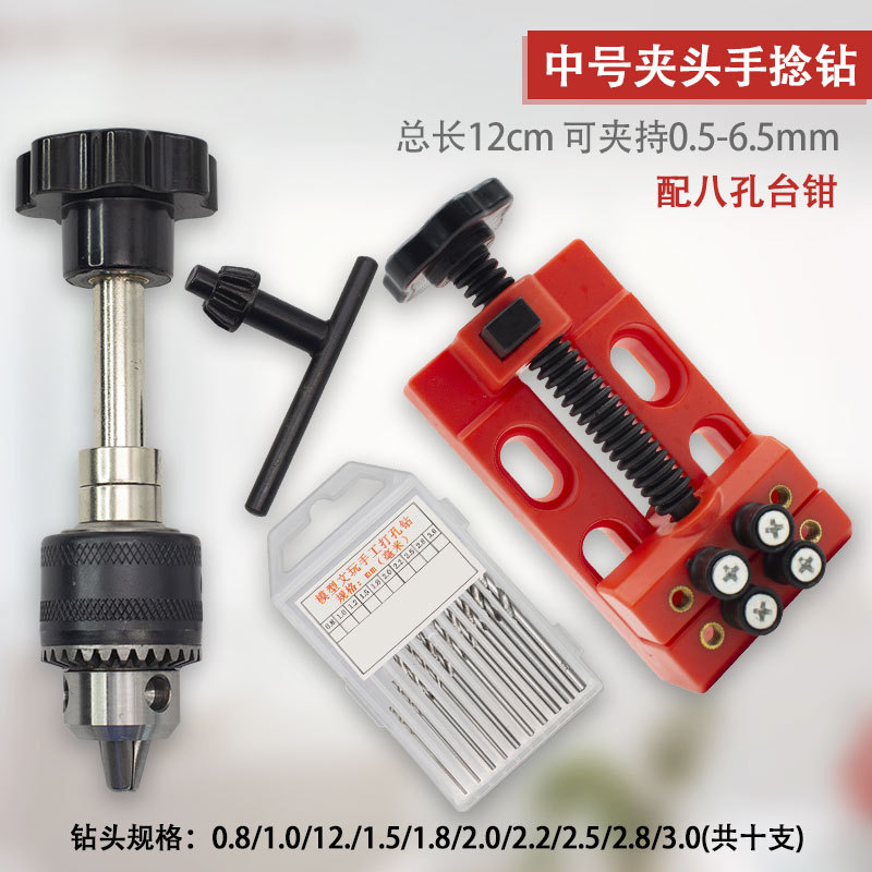 • 대형 척 핸드 트위스트 드릴 + 소형 바이스 + 드릴 비트 10개