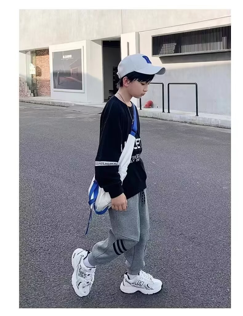 소년 바지 봄과 가을 스트레이트 와이드 다리 바지 2024 새로운 도착 빅 키즈 소년 가을 스포츠 캐주얼 트렌디 바지