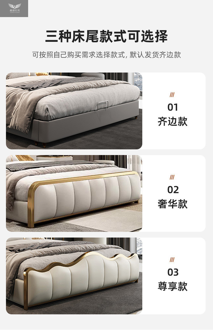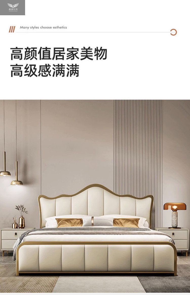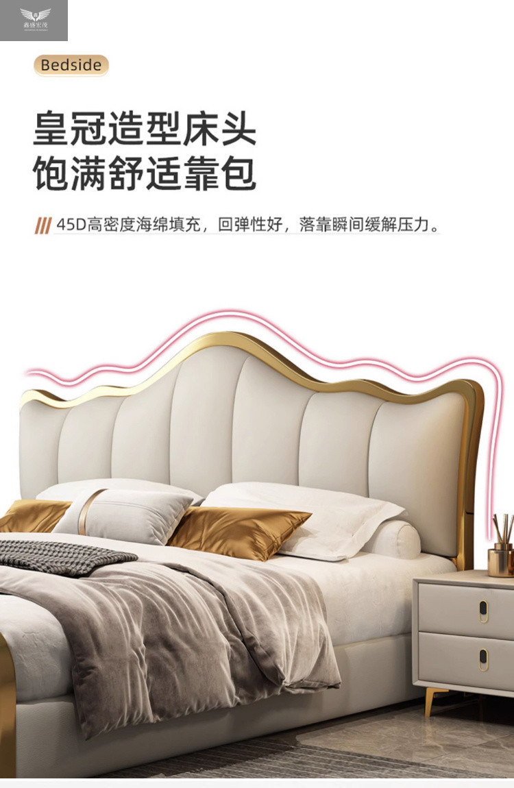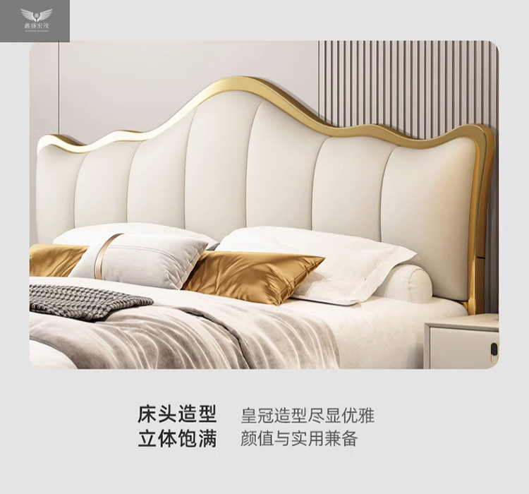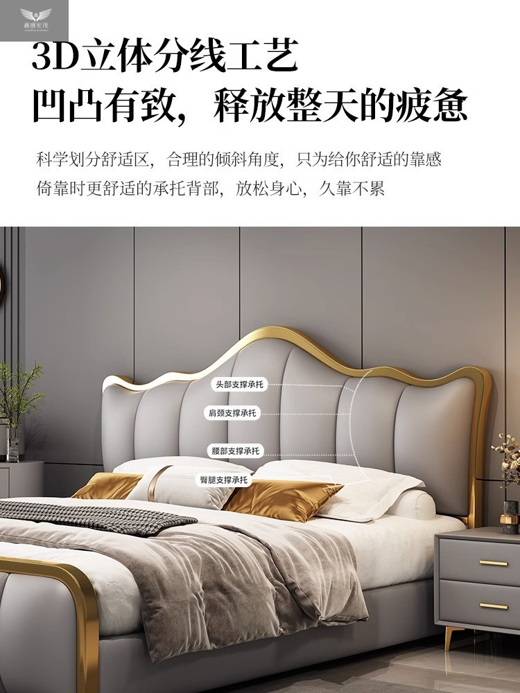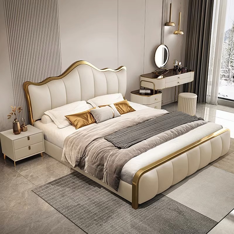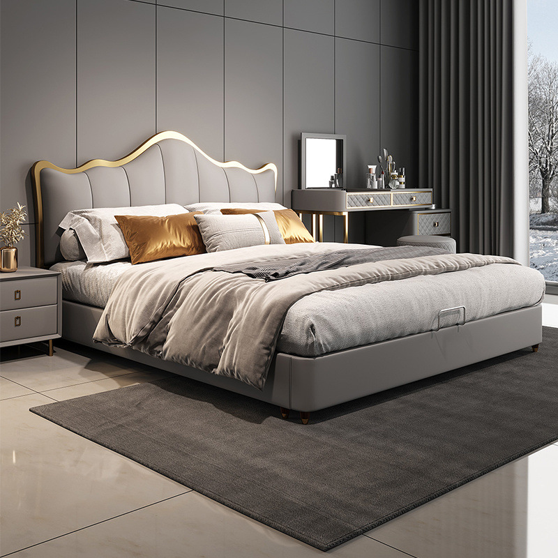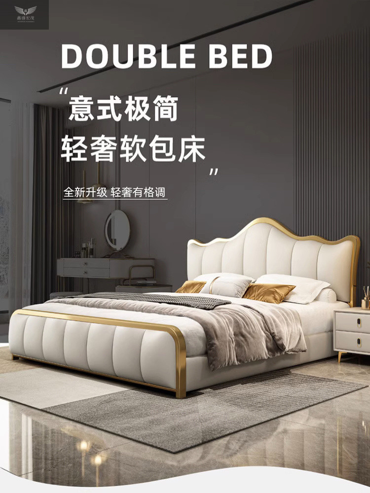 라이트 럭셔리 가죽 침대 마스터 침실 퀸 침대 현대 간단한 방 더블 침대 성인 하이 엔드 럭셔리 소프트 가방 웨딩 침대 이탈리아 스타일