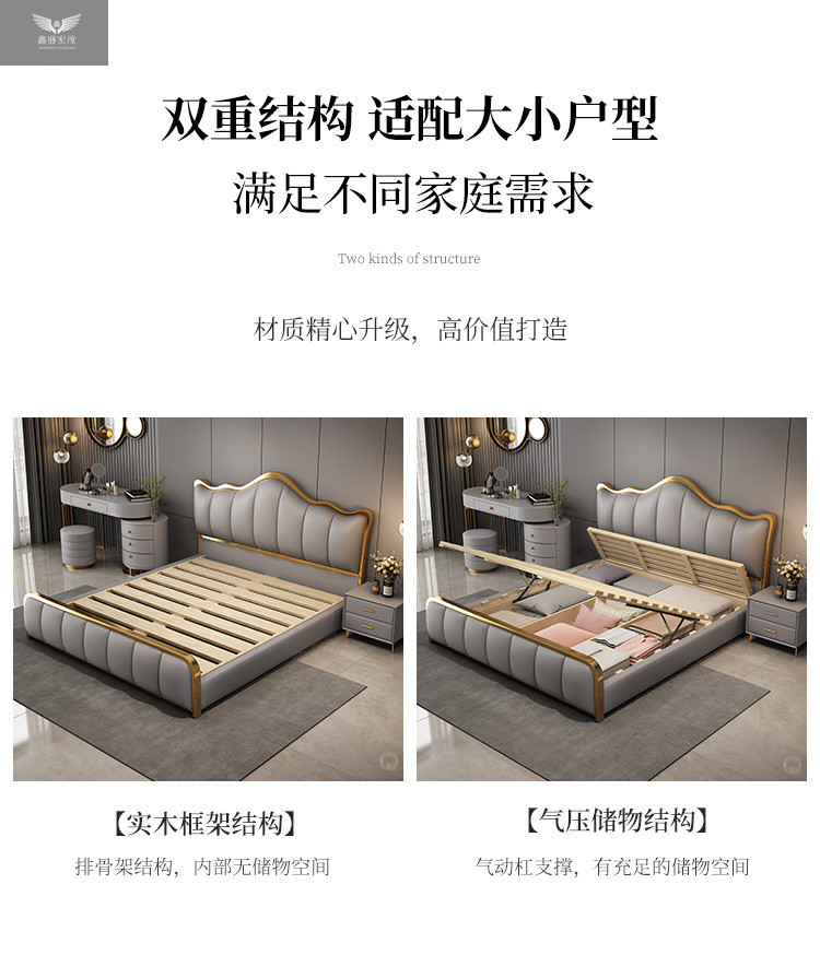 라이트 럭셔리 가죽 침대 마스터 침실 퀸 침대 현대 간단한 방 더블 침대 성인 하이 엔드 럭셔리 소프트 가방 웨딩 침대 이탈리아 스타일스토어 가기
