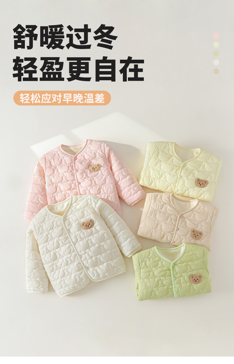 아기 시작 지점 가을과 겨울 2024 새로운 소년과 소녀 캔디 컬러 귀여운 편안한 기모 코튼 아기 따뜻한 코튼 코트스토어 가기