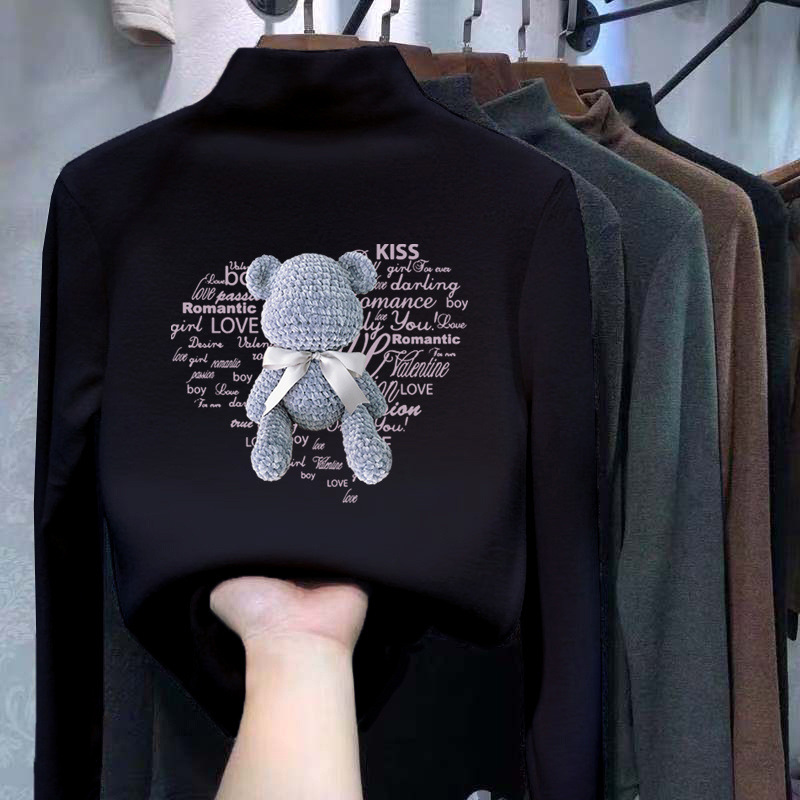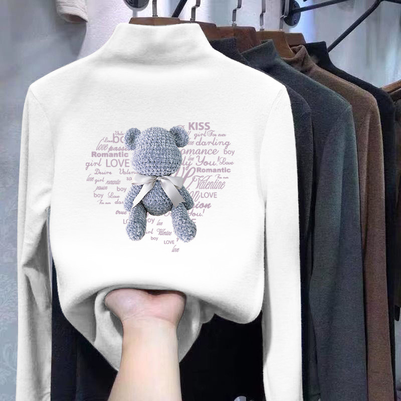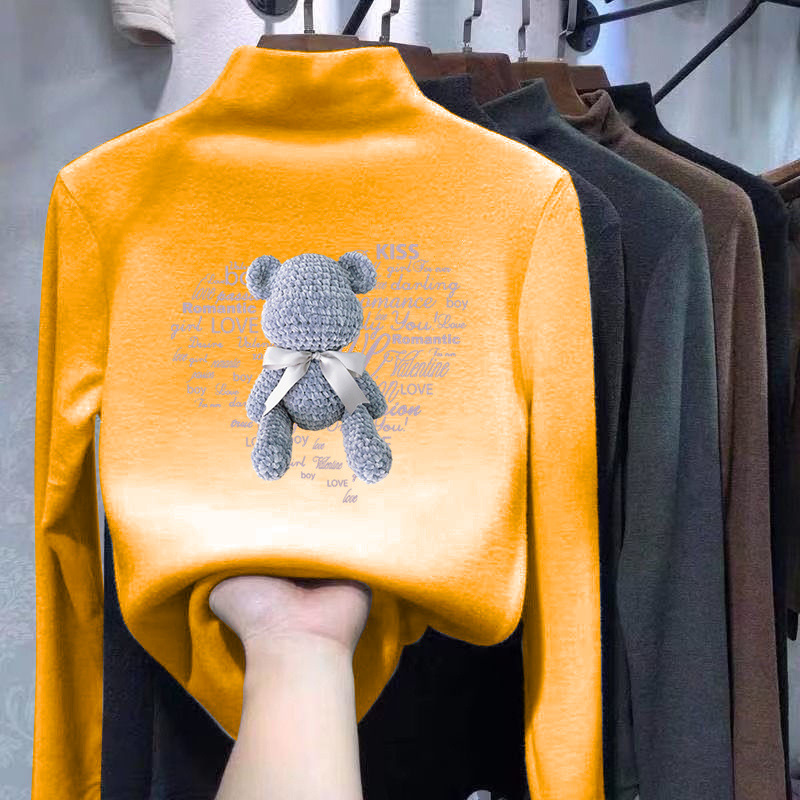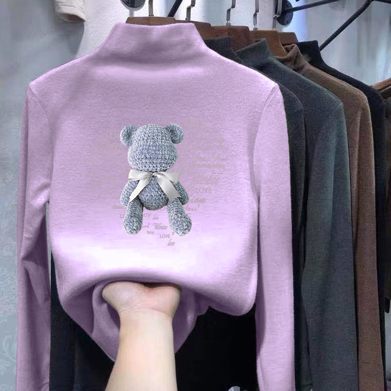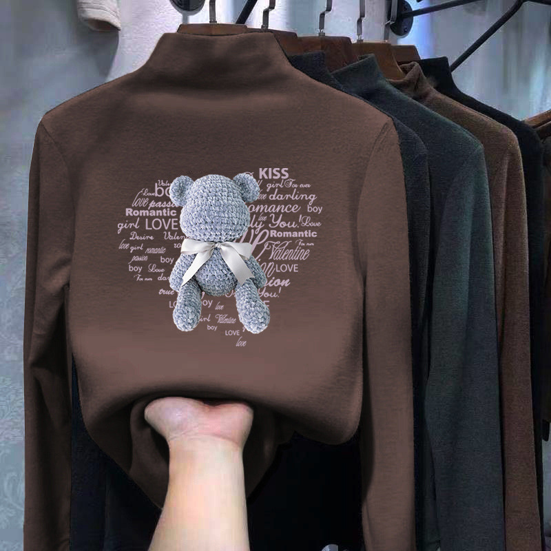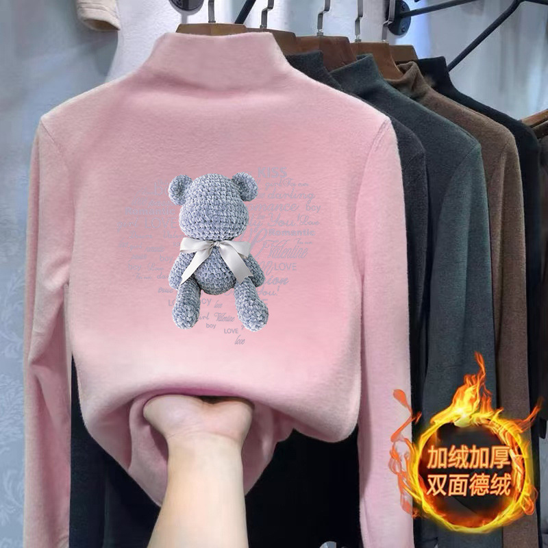 Y2547 # 여자 바닥 셔츠 가을과 겨울 새로운 두꺼운 따뜻한 어린이 긴팔 티셔츠 큰 어린이 세미 하이 칼라 벨벳 티셔츠스토어 가기