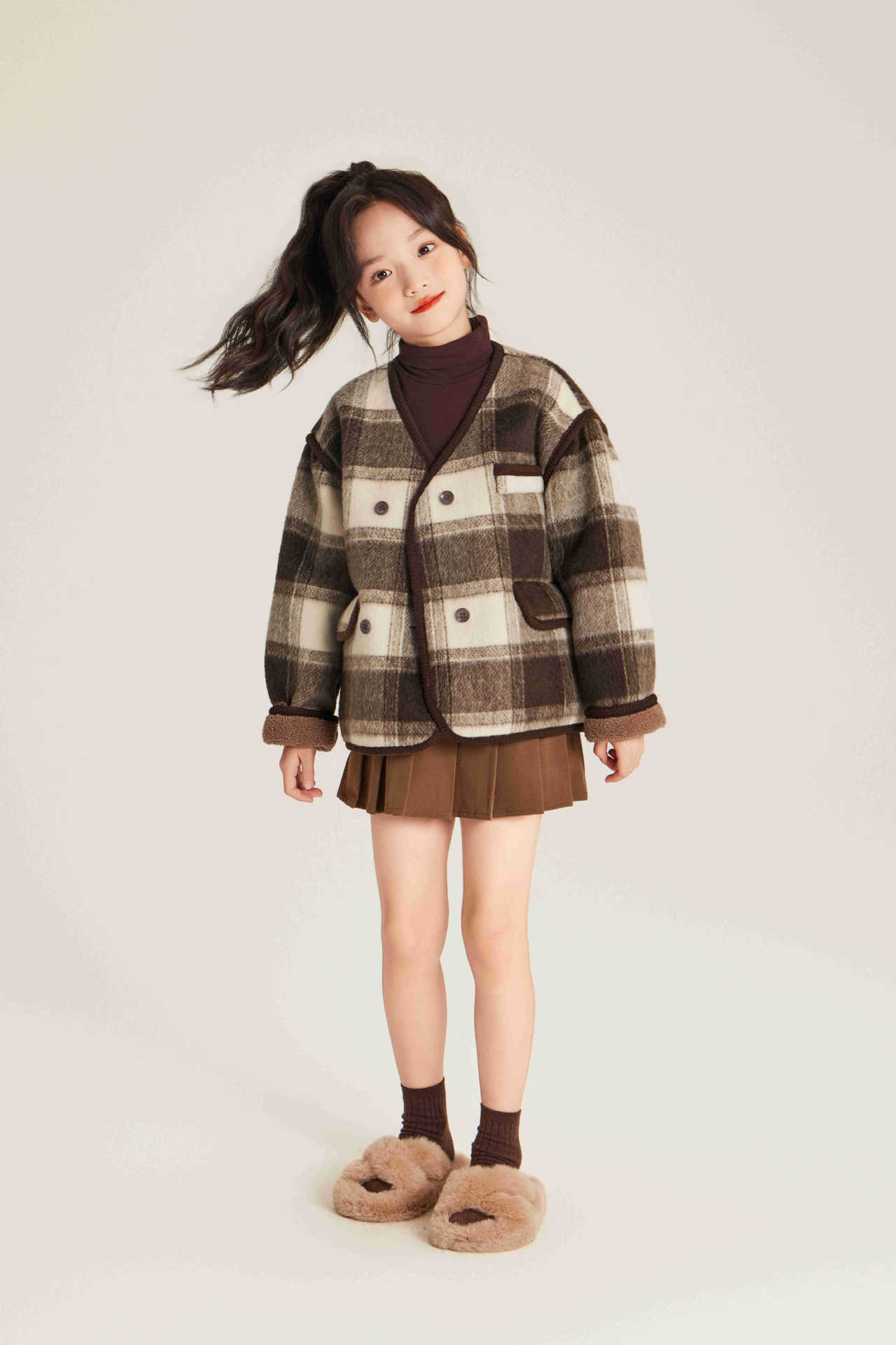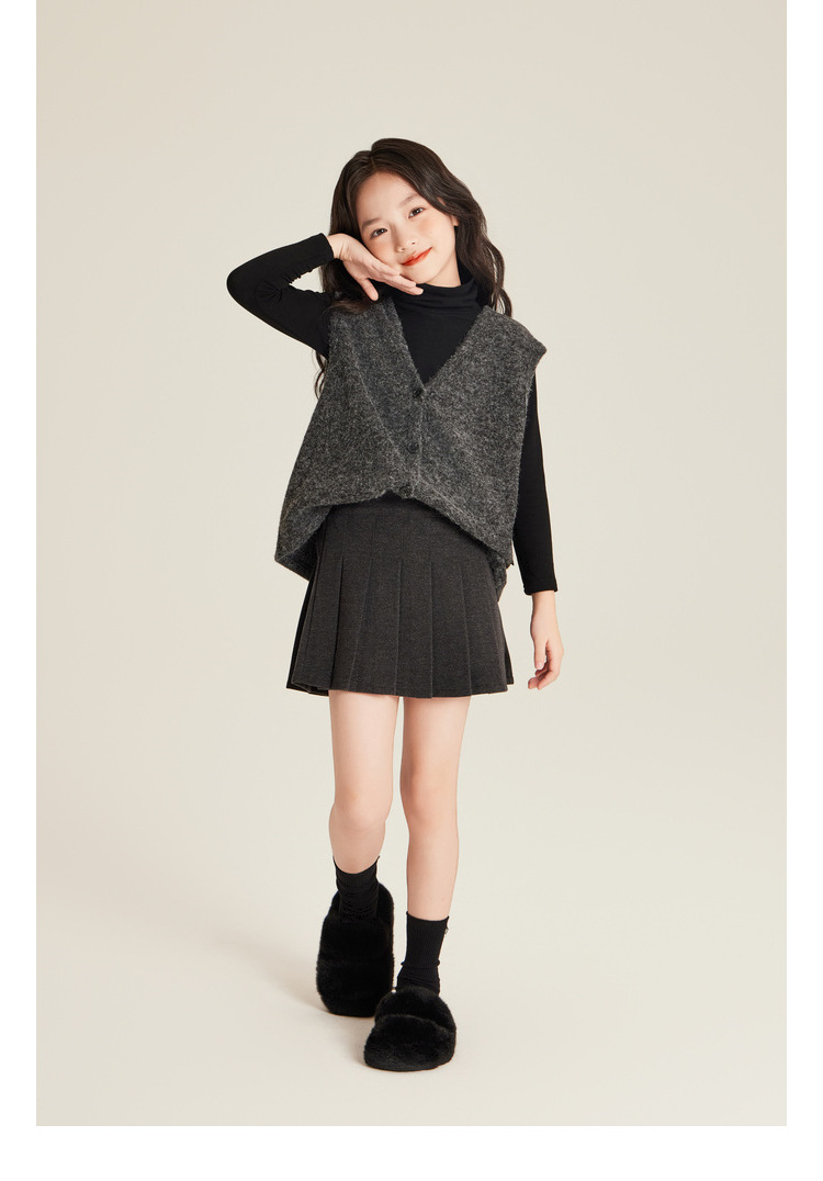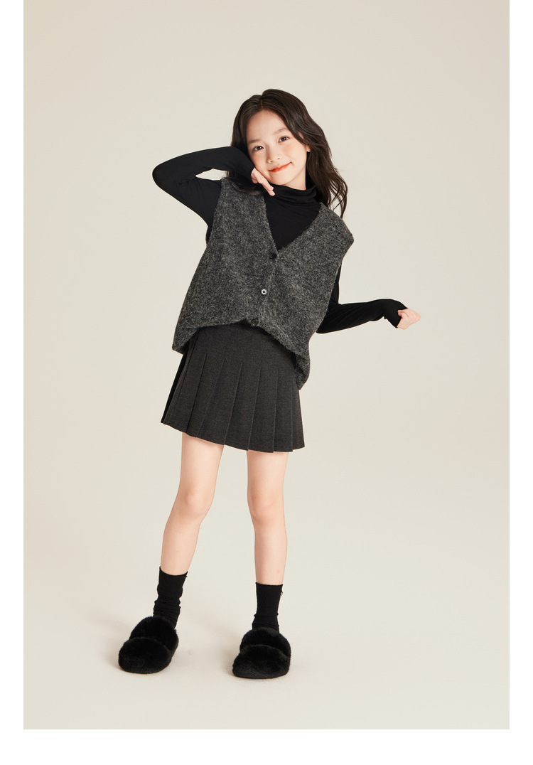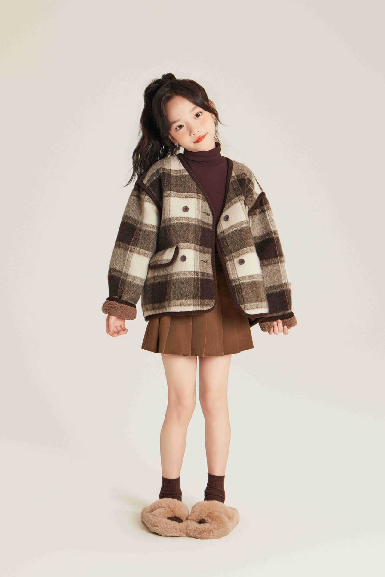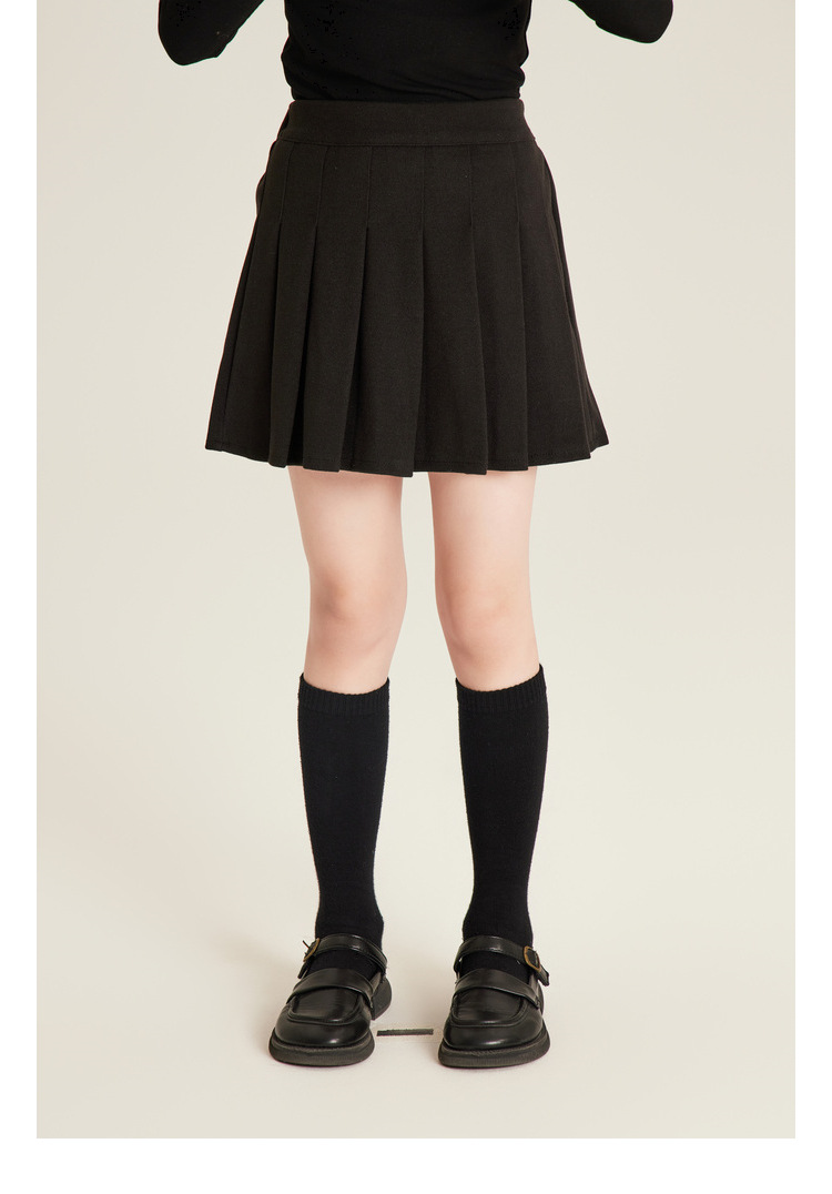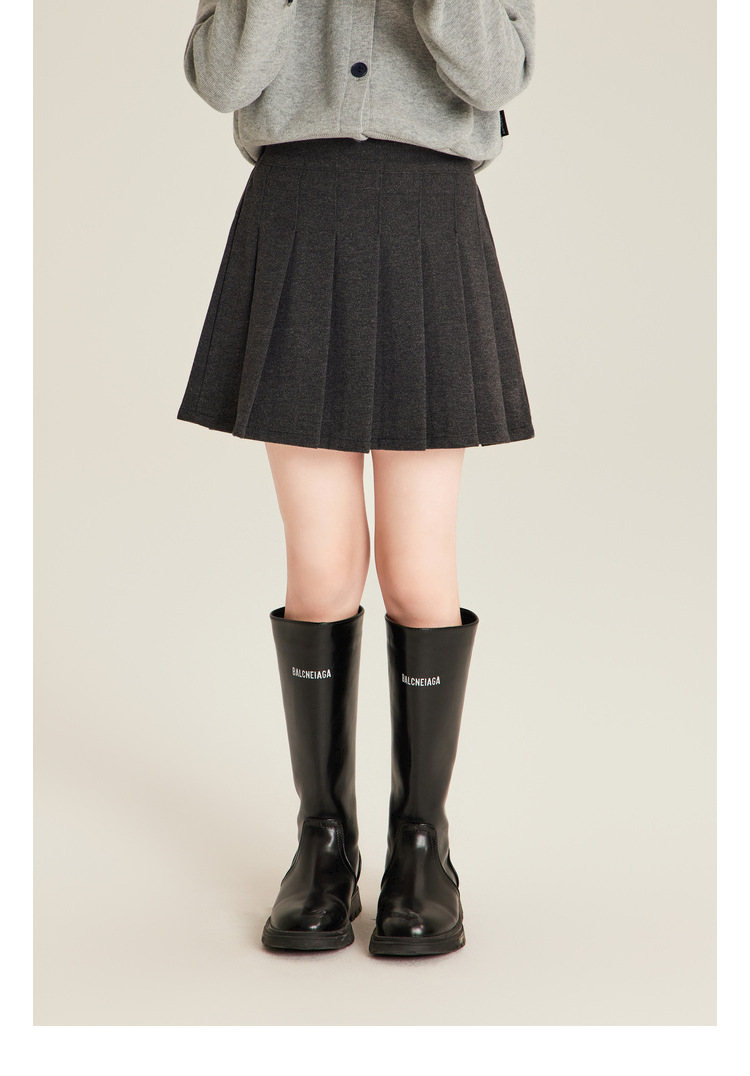 Amybaby Girl's Skirt Winter 2024 새로운 두꺼운 단색 모든 경기 따뜻한 모직 주름 치마스토어 가기