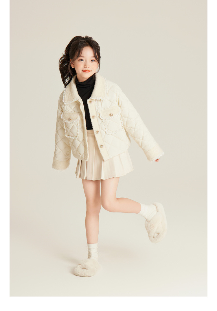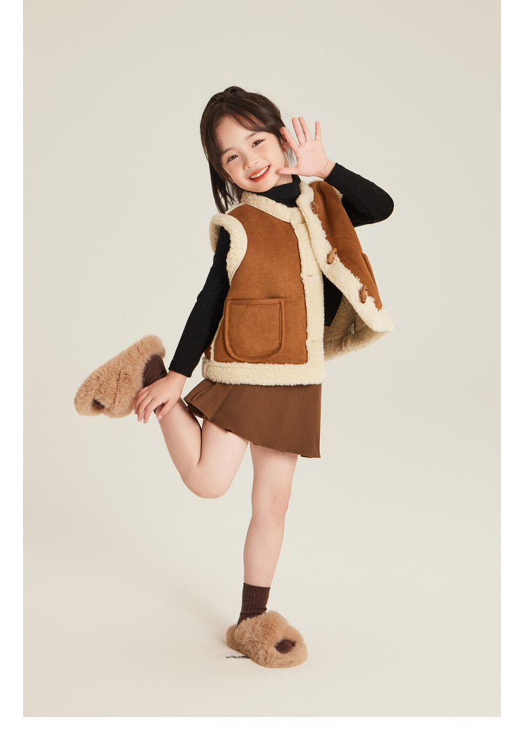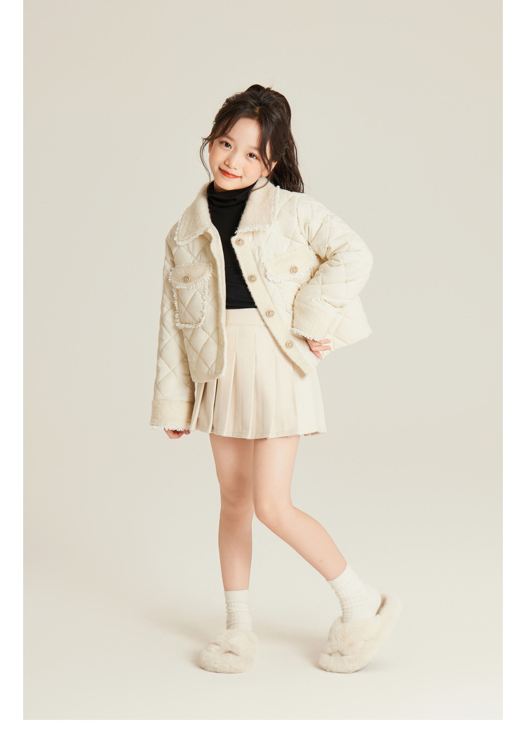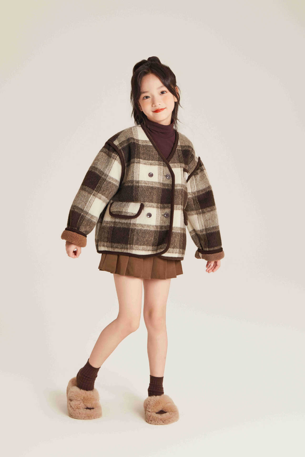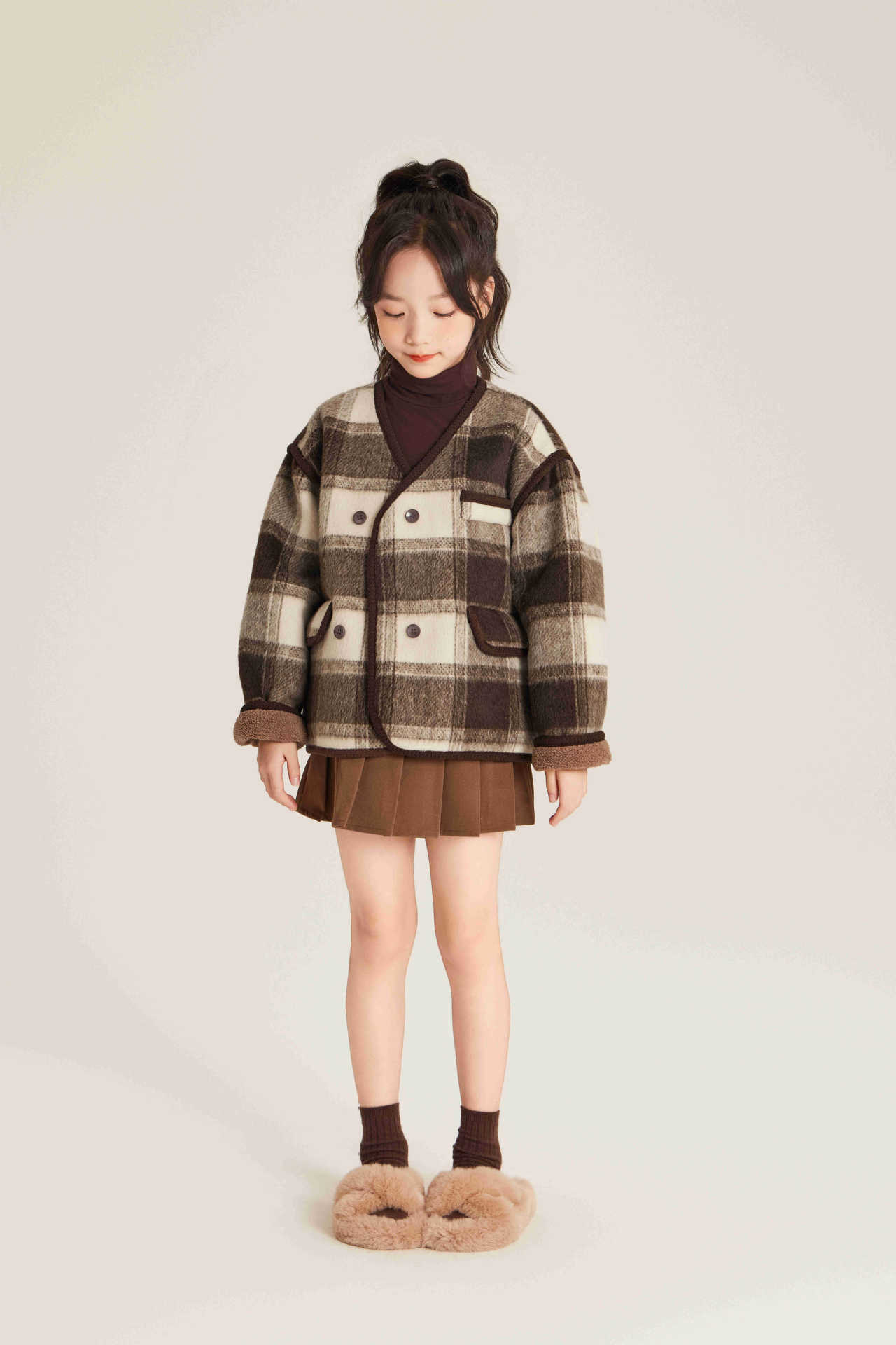 Amybaby Girl's Skirt Winter 2024 새로운 두꺼운 단색 모든 경기 따뜻한 모직 주름 치마스토어 가기