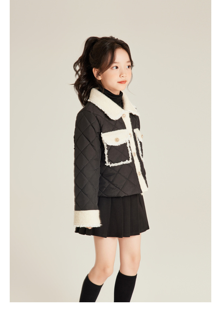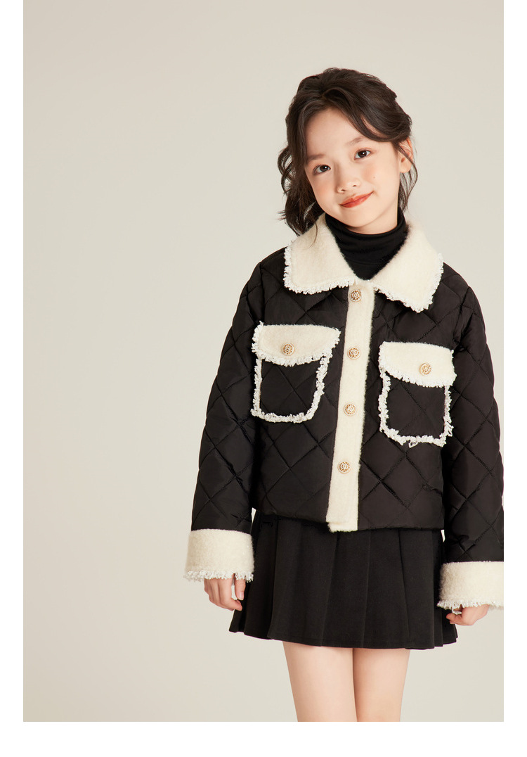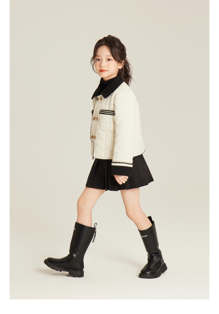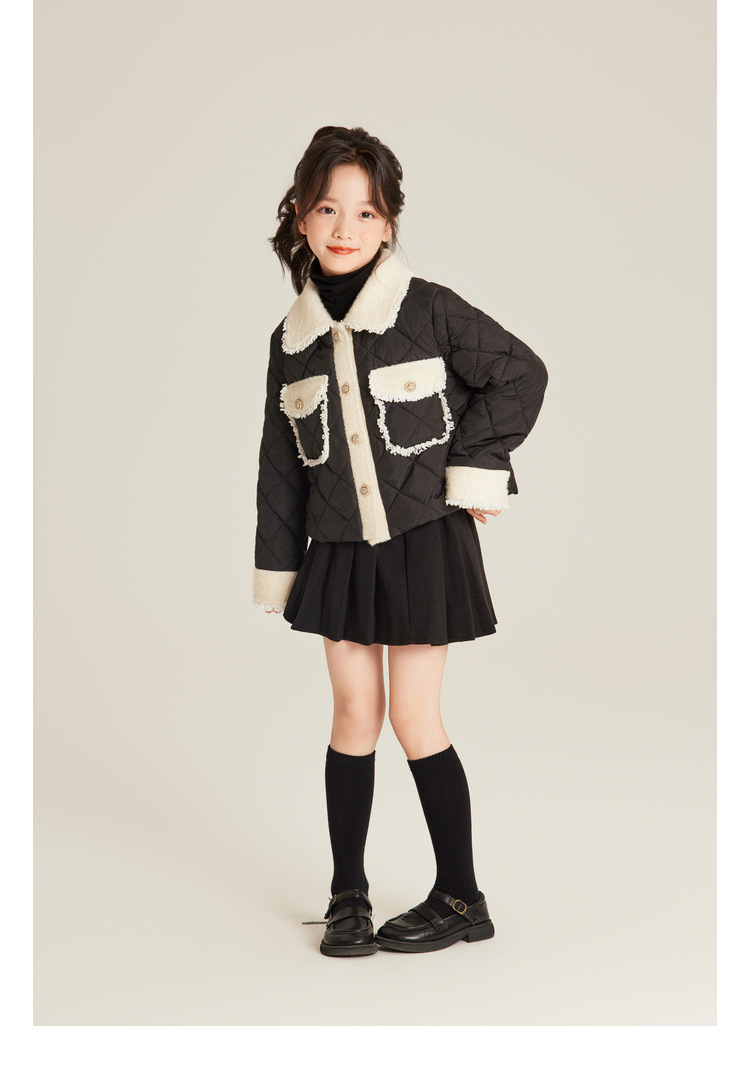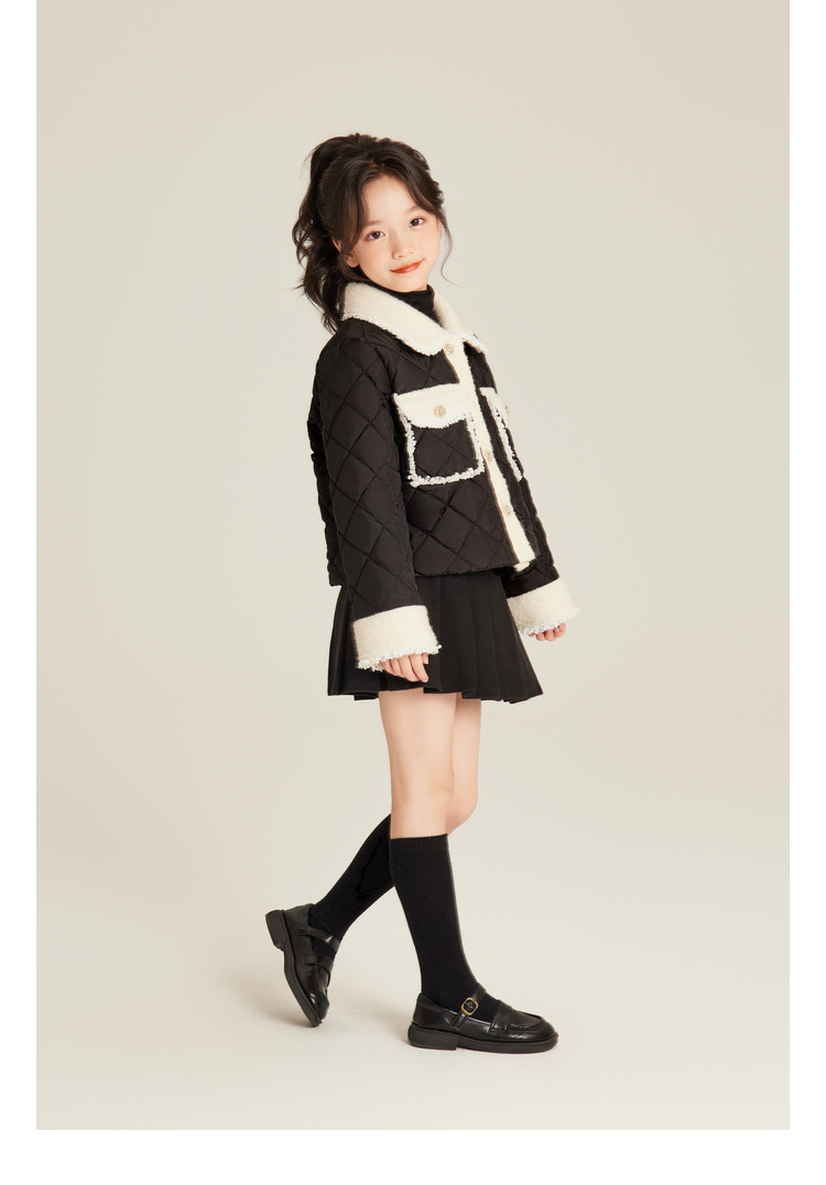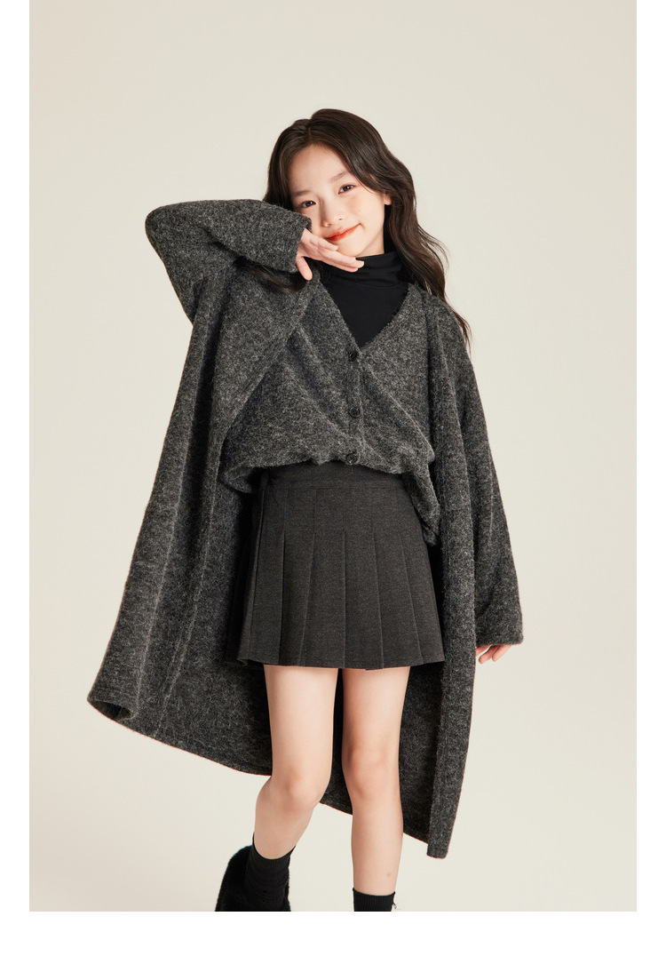Amybaby Girl's Skirt Winter 2024 새로운 두꺼운 단색 모든 경기 따뜻한 모직 주름 치마