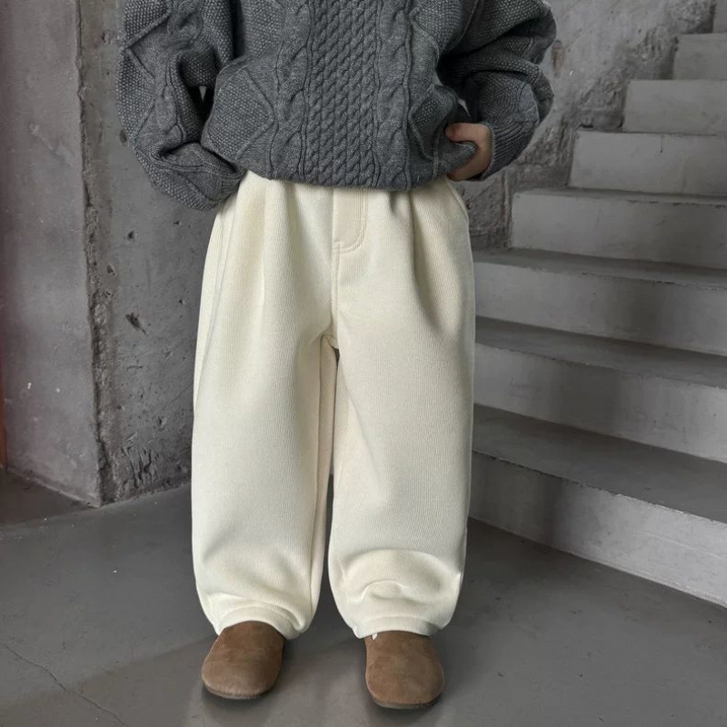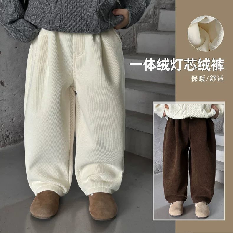 소년 기모 바지 한 조각 양털 겨울 2024 새로운 가을과 겨울 착용 어린이 코듀로이 바지 화이트 캐주얼 바지스토어 가기