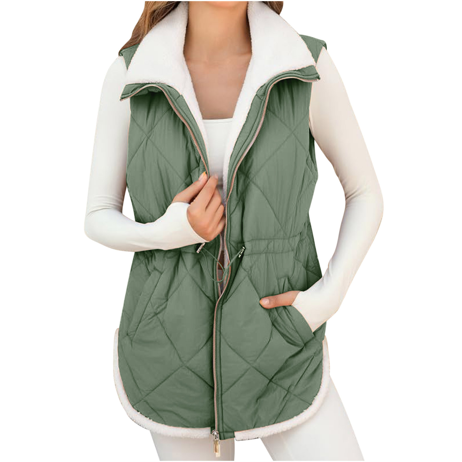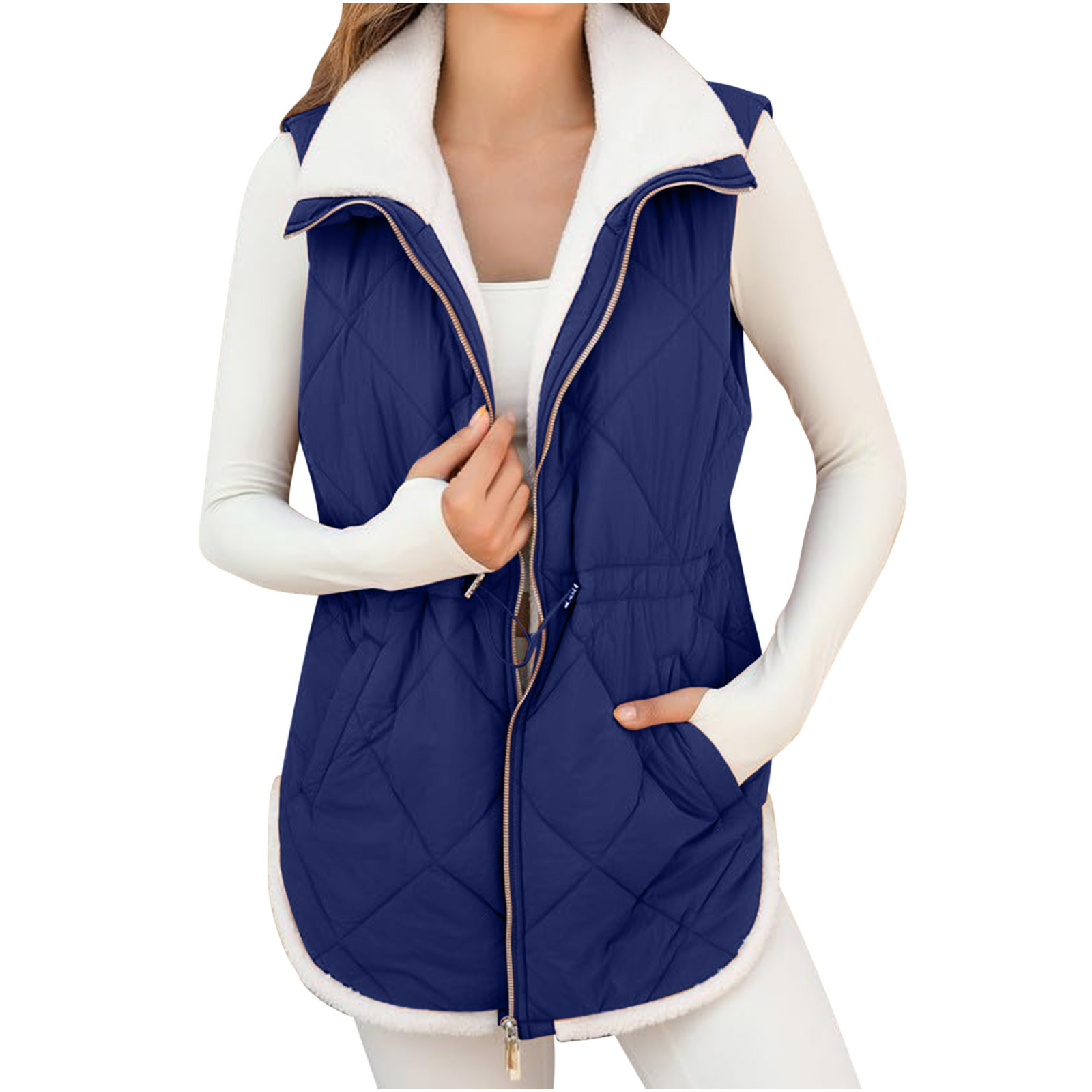 아마존 독립 역 2024 국경 유럽 및 미국 새로운 중간 길이의 여성 스트리트 트렌디면 패딩 재킷 캐주얼 조끼스토어 가기
