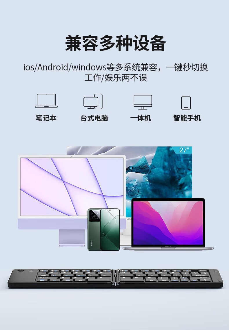 ipad 휴대 전화 태블릿에 적합한 국경 간 접이식 무음 Bluetooth 무선 키보드 편리한 충전 미니 접이식 키보드스토어 가기