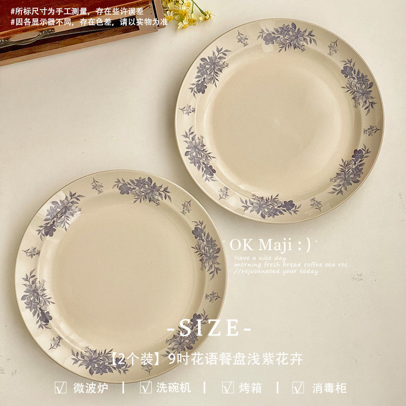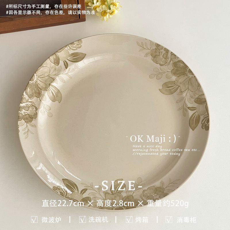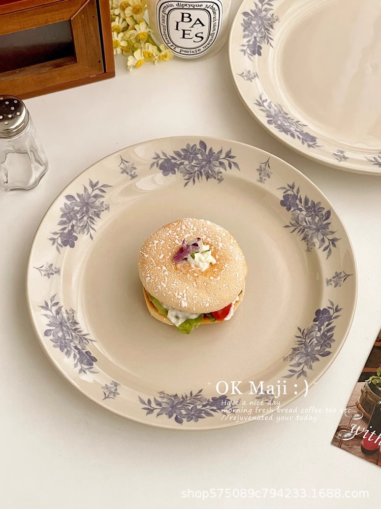 프랑스 레트로 디너 플레이트 높은 수준의 느낌 중간 고대 접시 접시 홈 의식 아침 식사 플레이트 세라믹 디저트 스테이크 플레이트스토어 가기