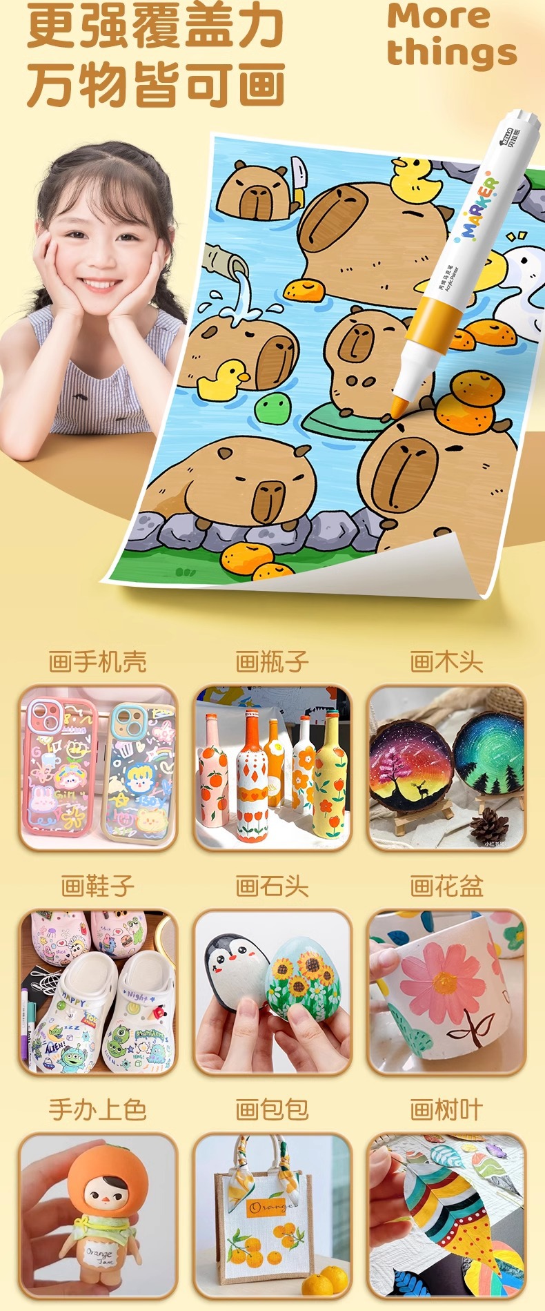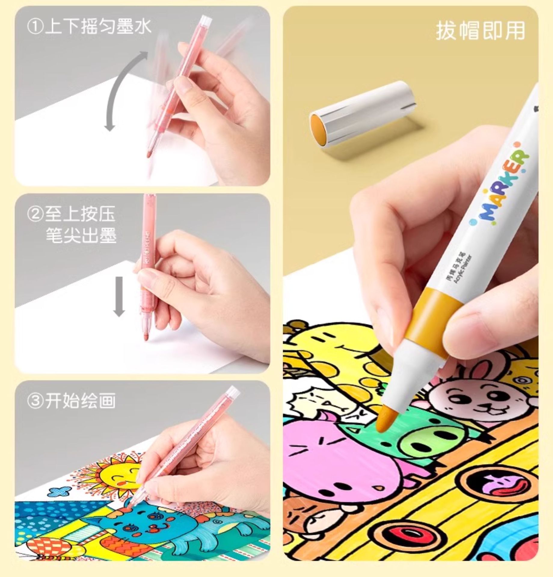 카피 발라 아크릴 마커 펜 초등학교 예술 특수 브러시 수채화 펜 불투명 한 색 쌓을 수있는 유치원스토어 가기