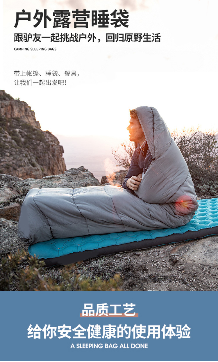 브랜드 야외 여분의 두꺼운 단색 사다리꼴 침낭 봉투 유형 사계절 보편적 인 더러운 여행 점심 휴식 실내 침낭스토어 가기
