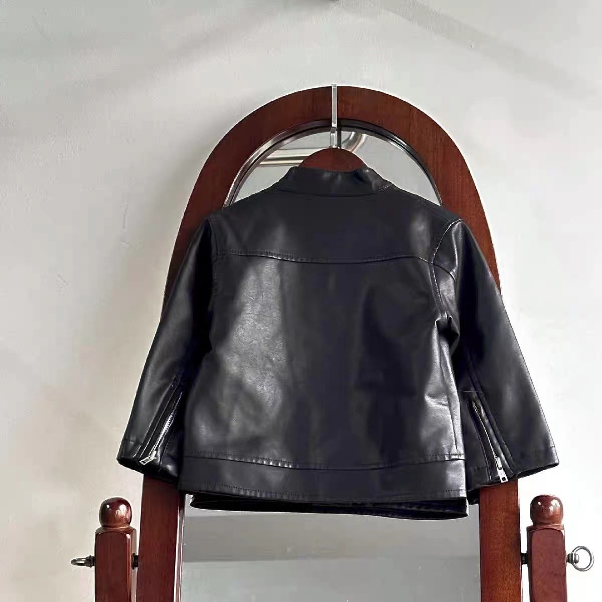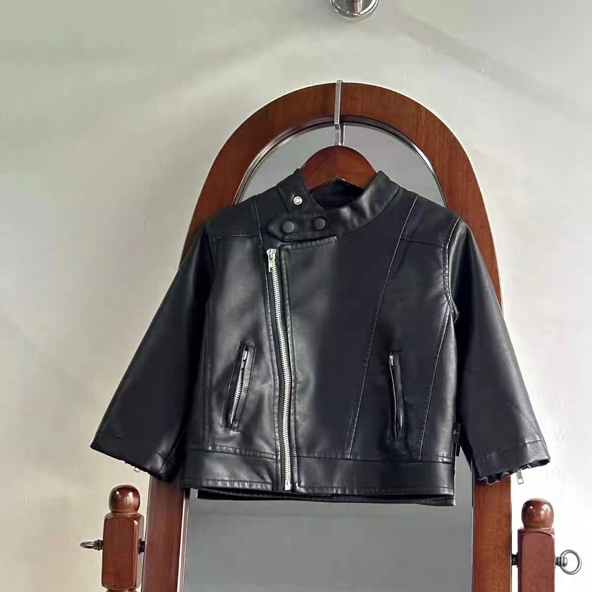 어린이 가죽 의류 소녀 소년 코트 아기 가죽 자켓 2024 새로운 튀긴 거리 러피 잘 생긴 오토바이 의류 데님 바지스토어 가기