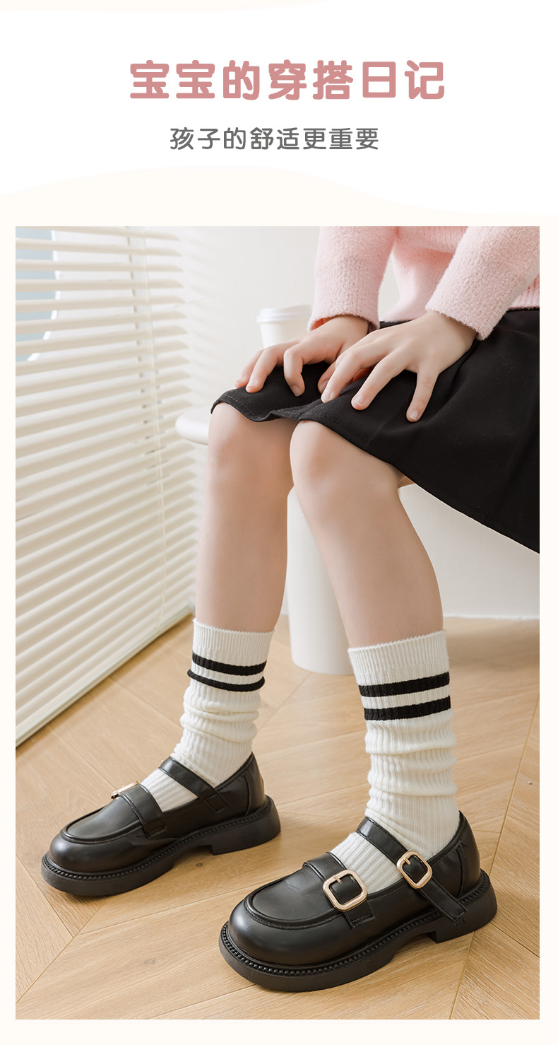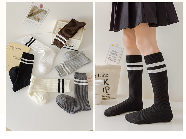 어린이 Combed Cotton Two-Bar 스타킹 솔리드 컬러 핀스트라이프 아카데미 스타일 코튼 스타킹 플레인 걸스 스택 스타킹