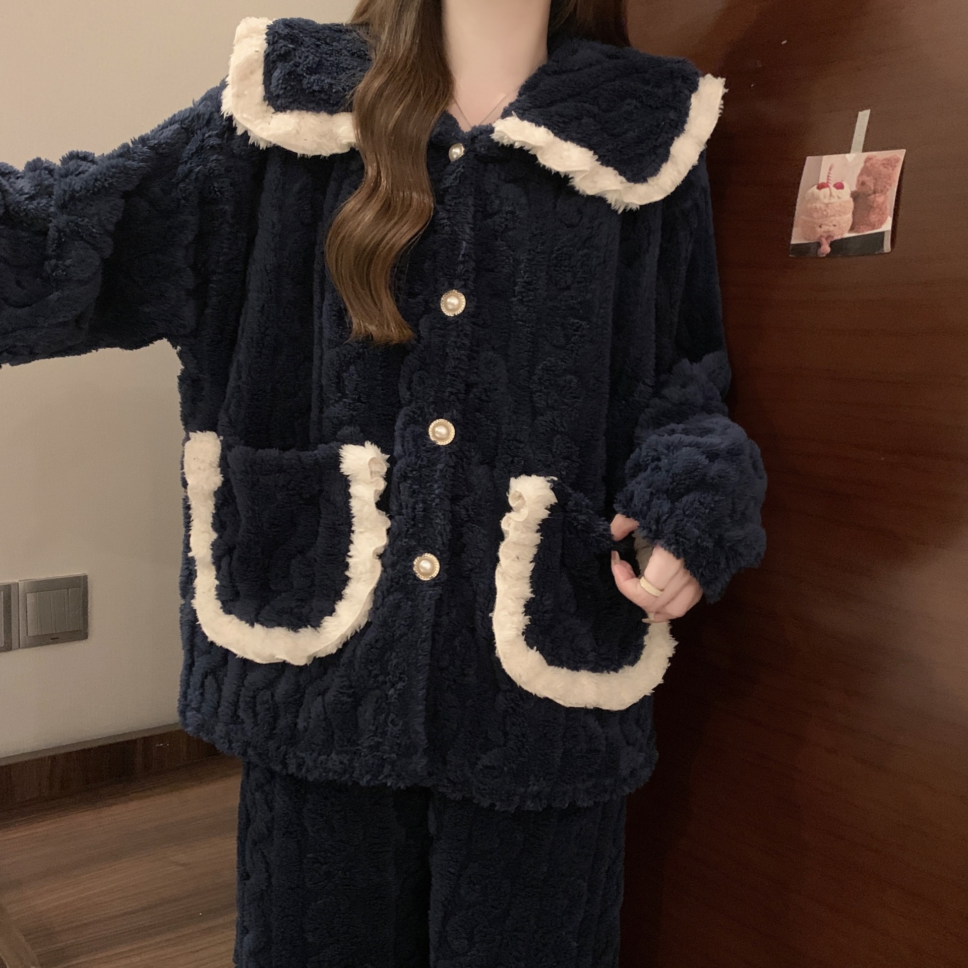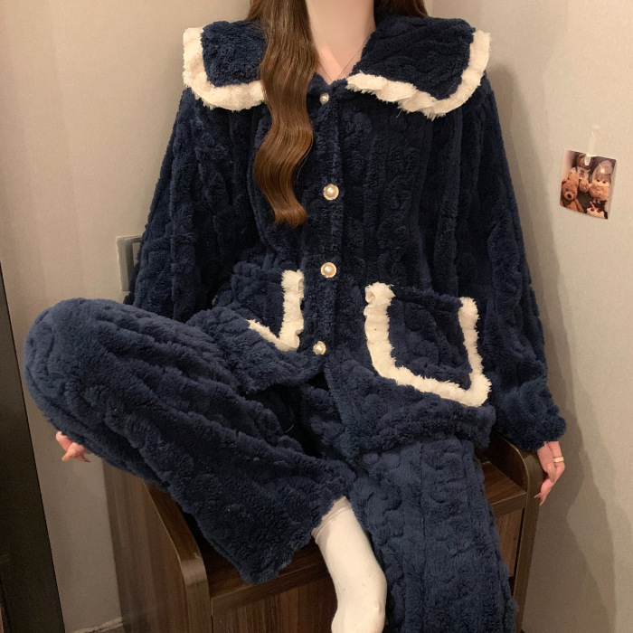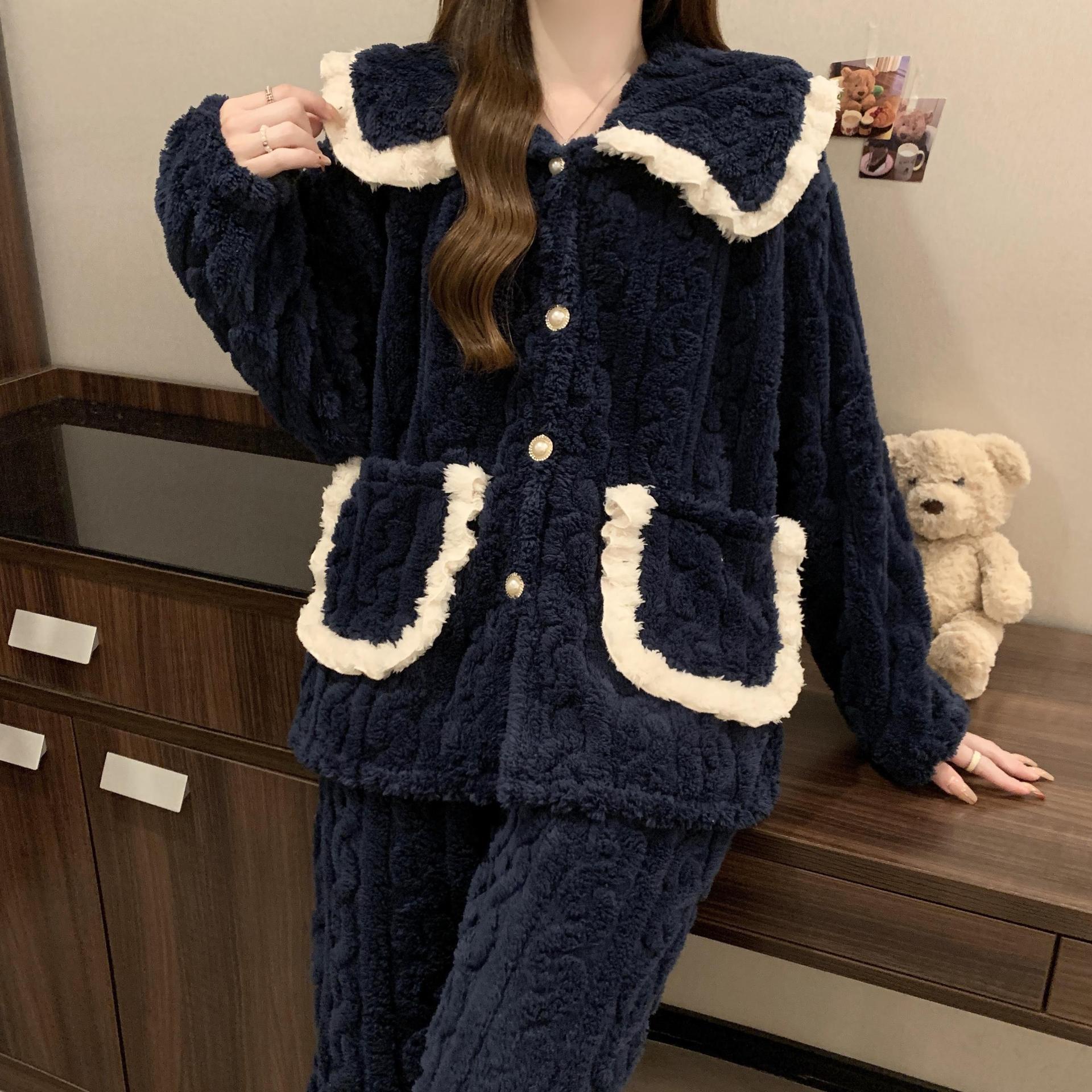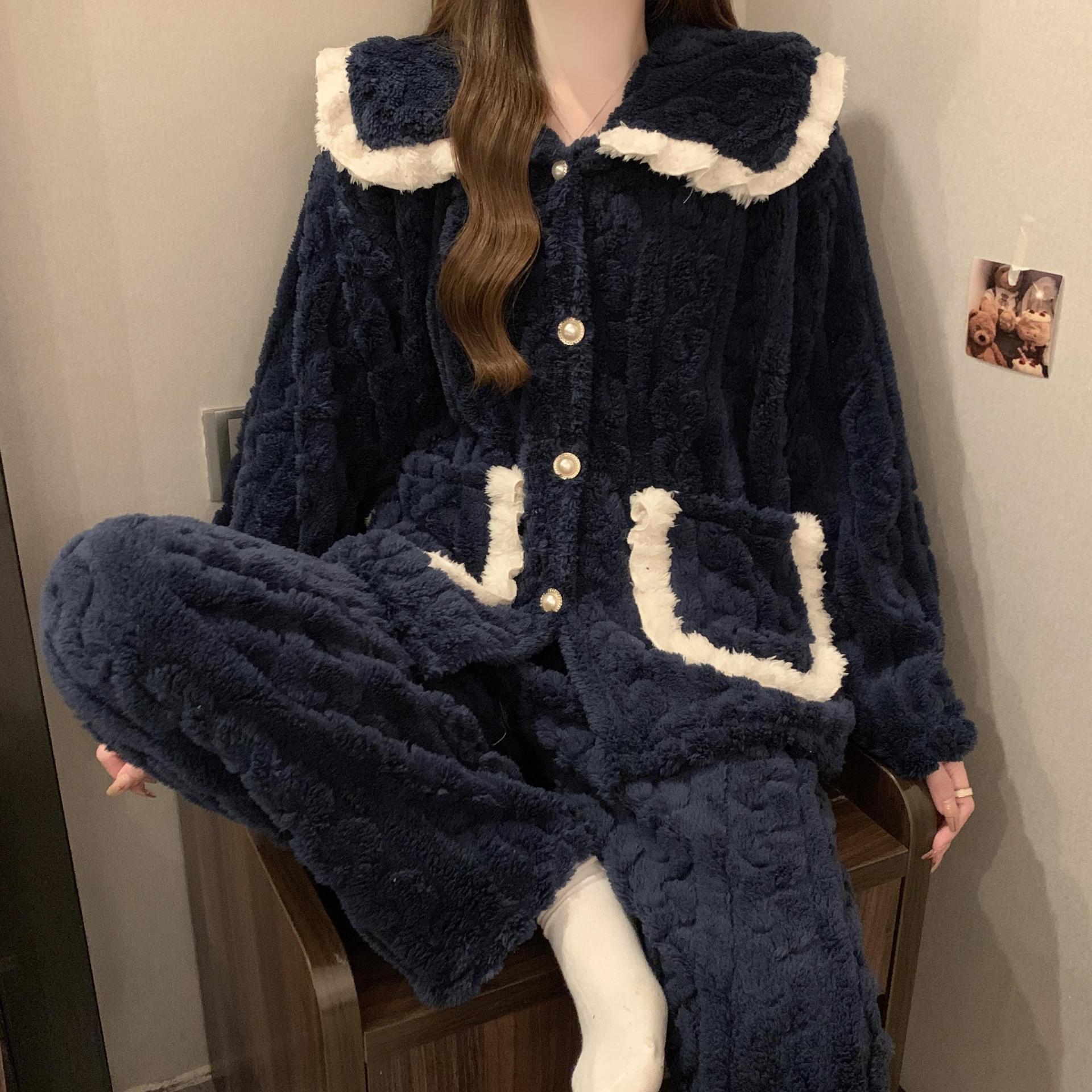 2024 겨울 새 기모 두꺼운 공주 스타일 옷깃 달콤한 카디건 파자마 홈 의류 세트스토어 가기