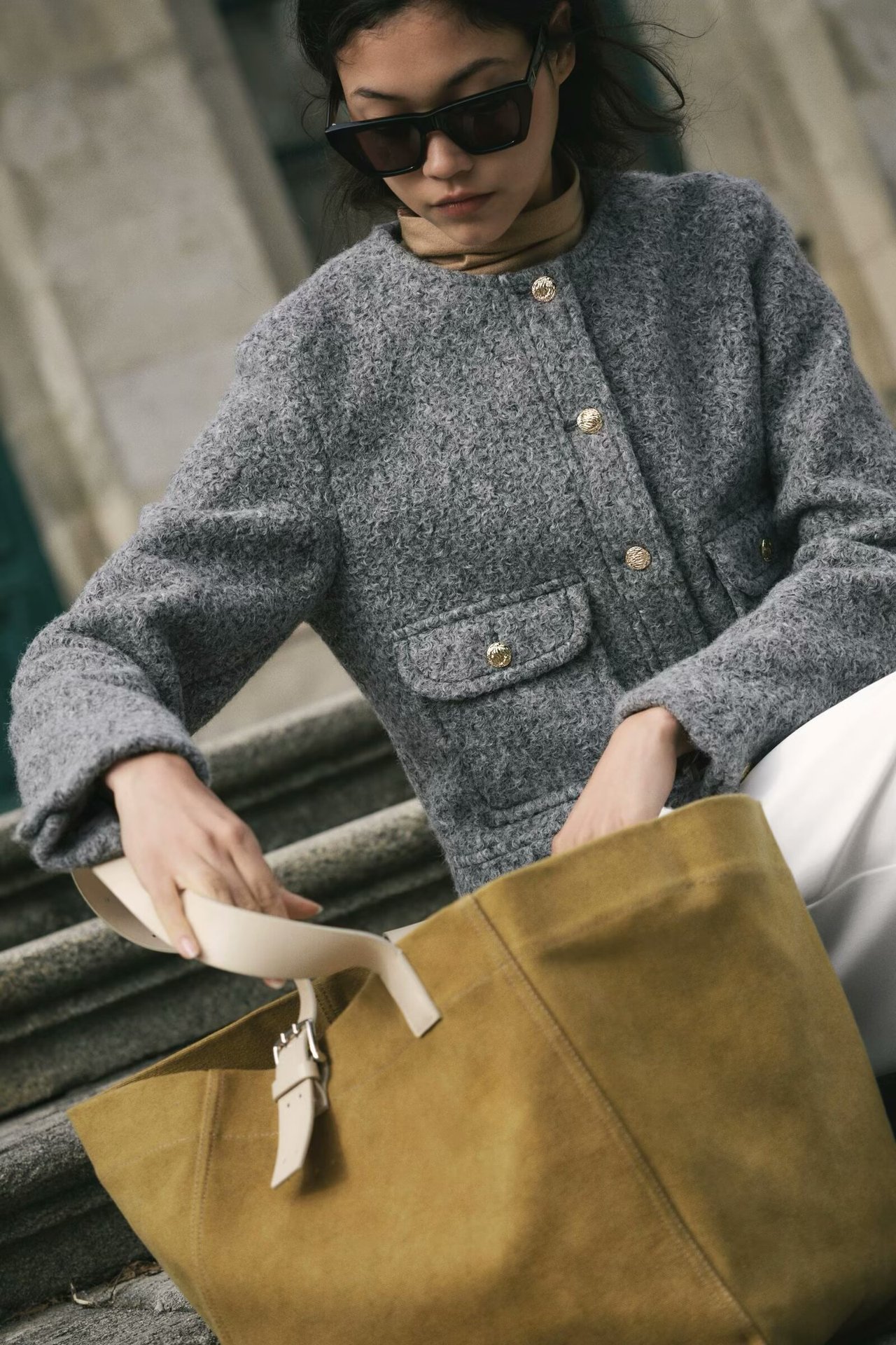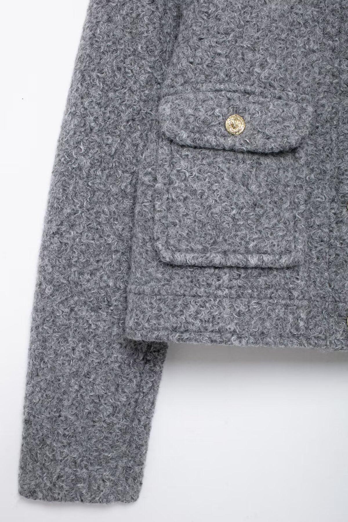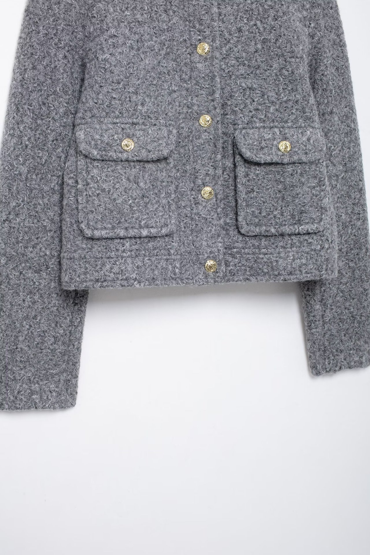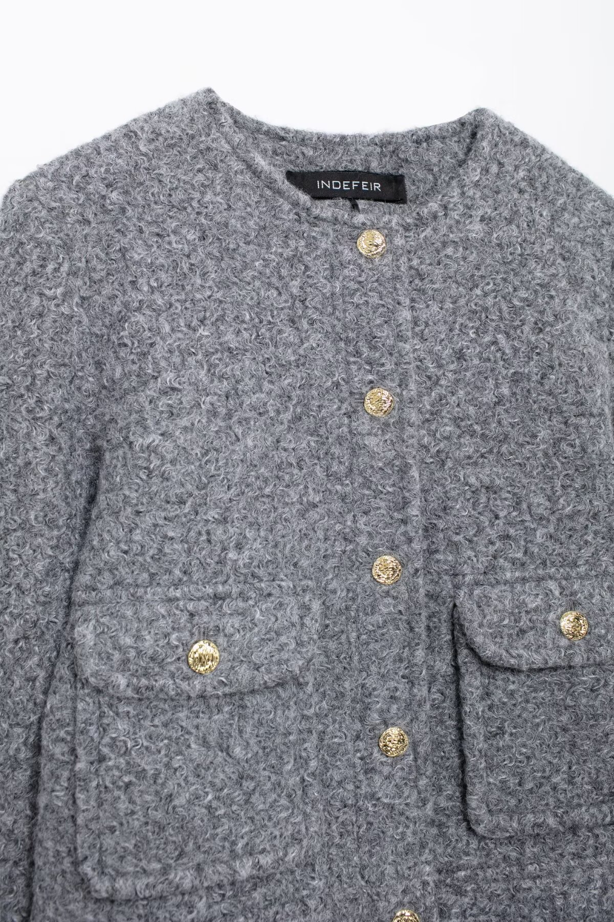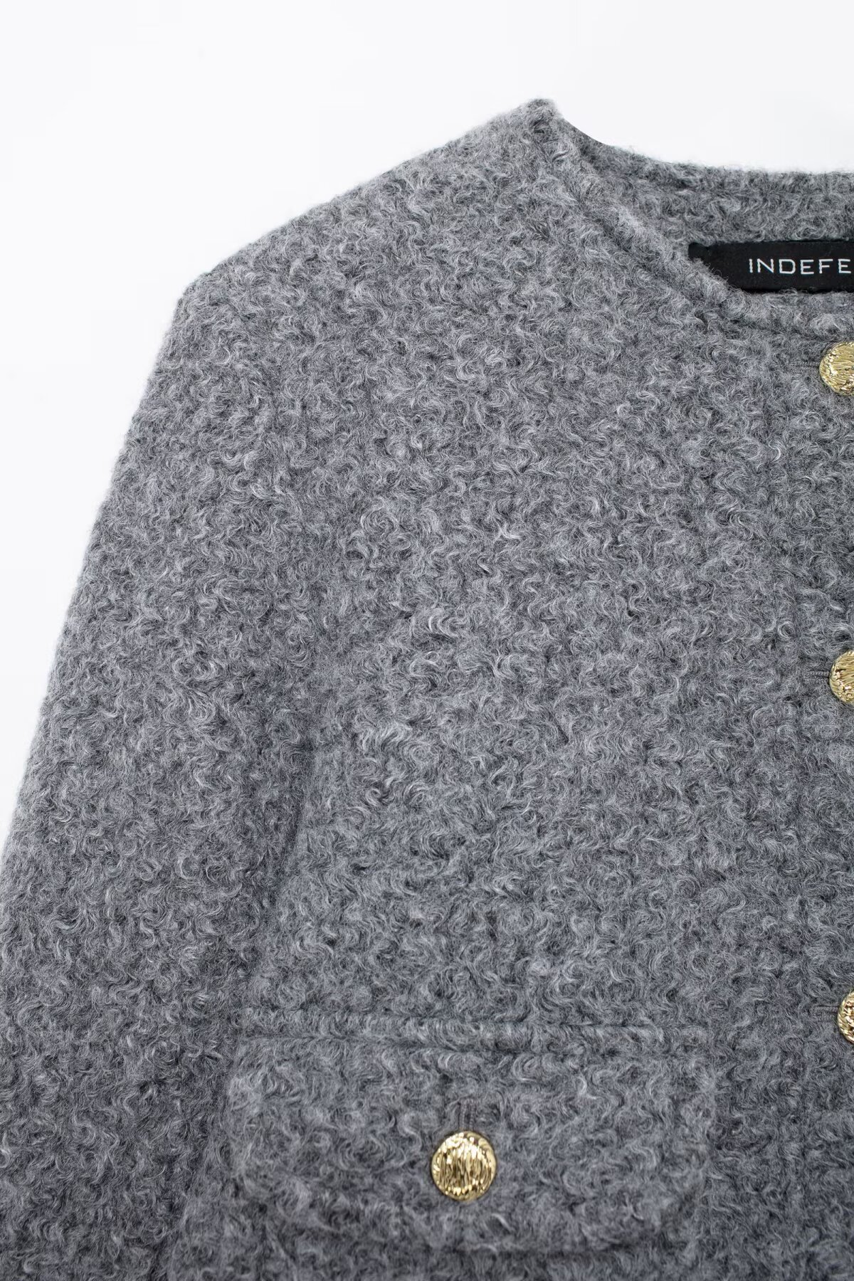 패션 기질 새로운 구슬 가죽 둥근 목 긴 소매 짧은 재킷 코트 ZR 대외 무역 도매 유럽과 미국 스타일의 여성 의류스토어 가기