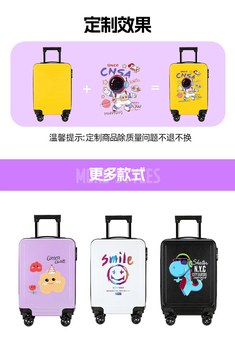 인쇄 가능한 만화 어린이 수하물 유니버설 휠 조합 잠금 18 인치 트롤리 케이스 레저 여행 탑승 가방