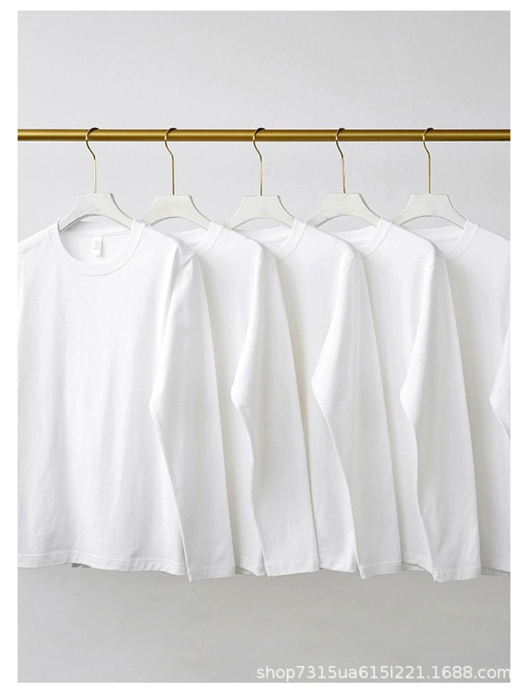 300g 무거운면 티셔츠 남성용 순수한 흰색 느슨한 탑 두꺼운 내부 긴 소매 바닥 셔츠 기본 흰색 티스토어 가기