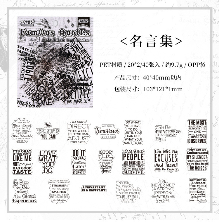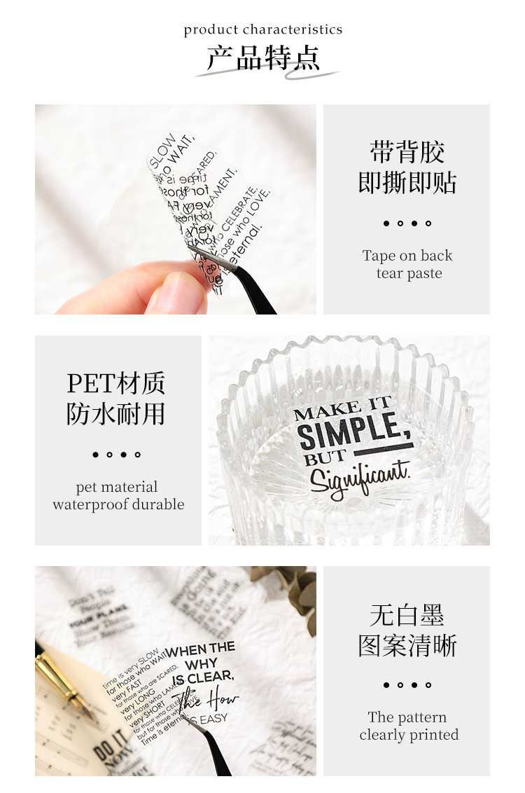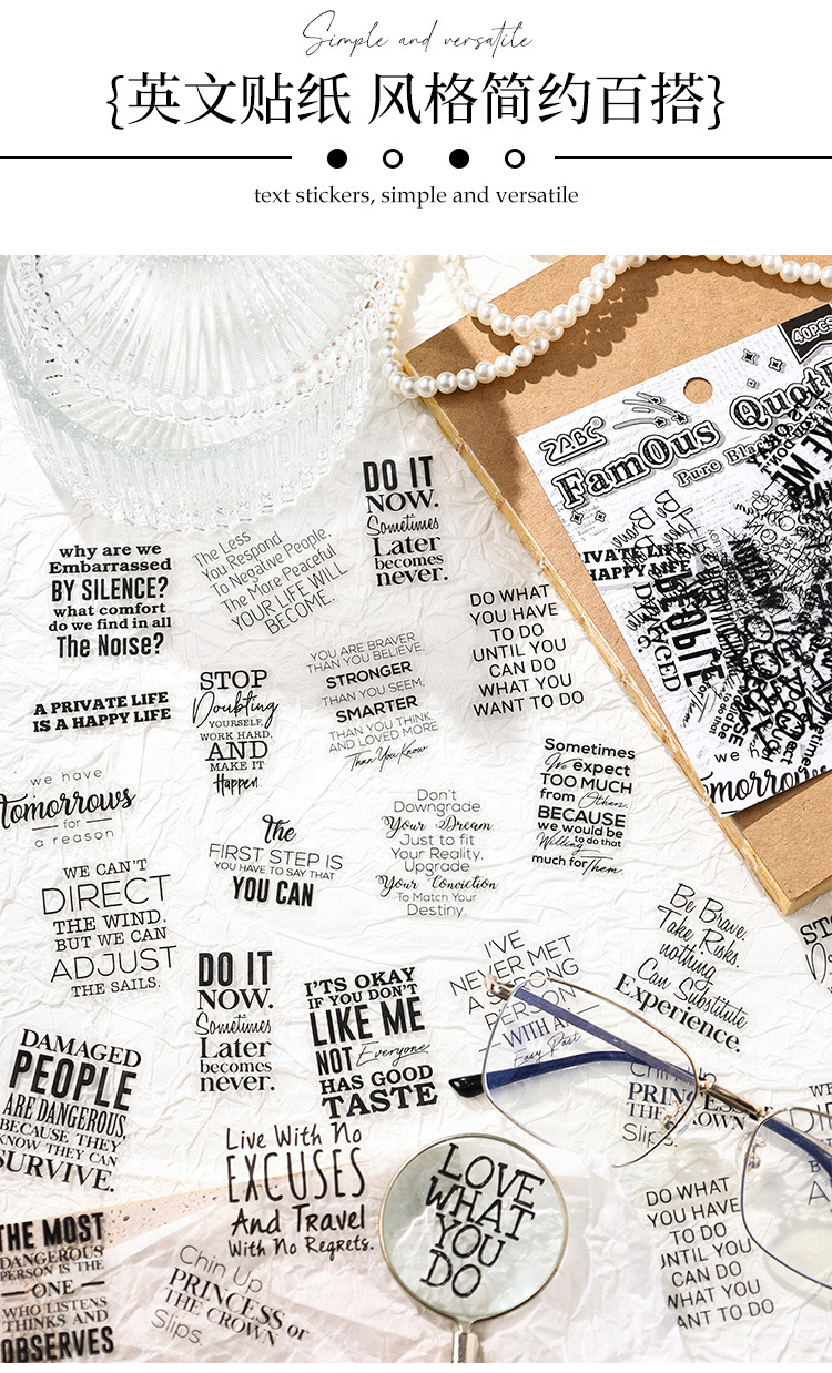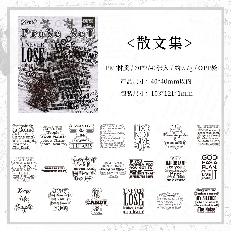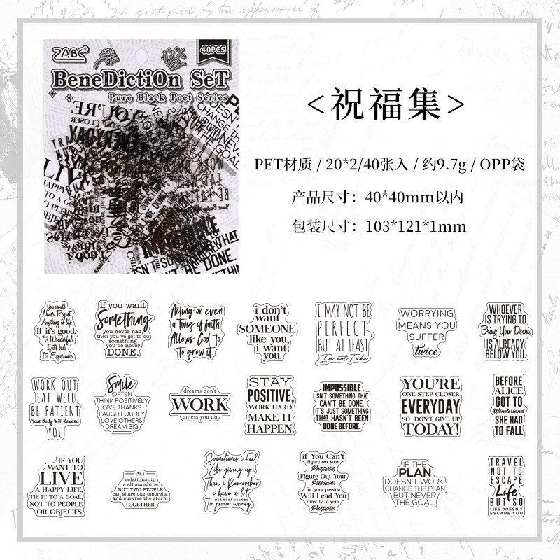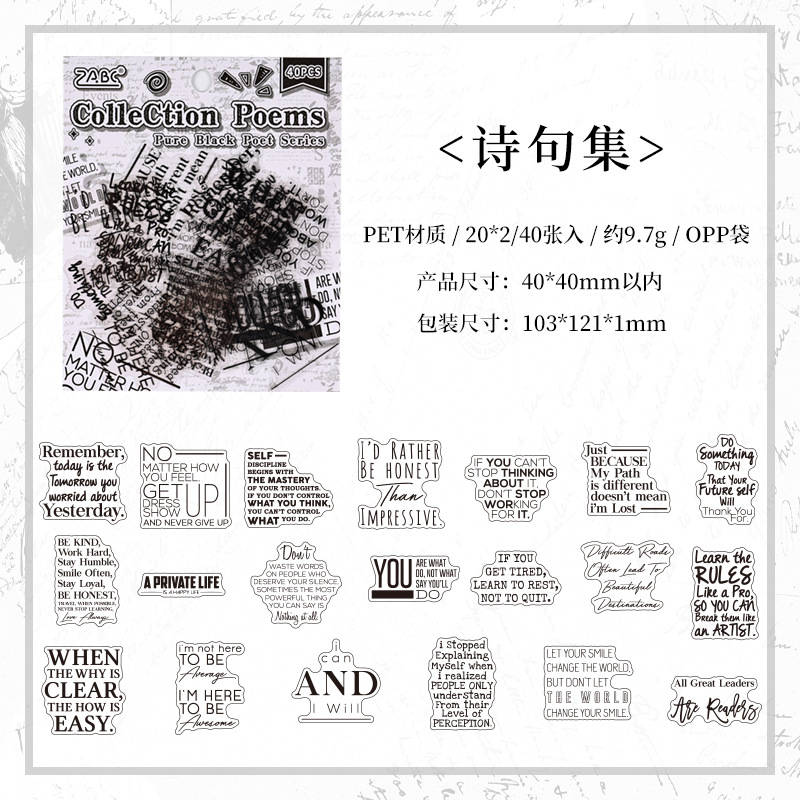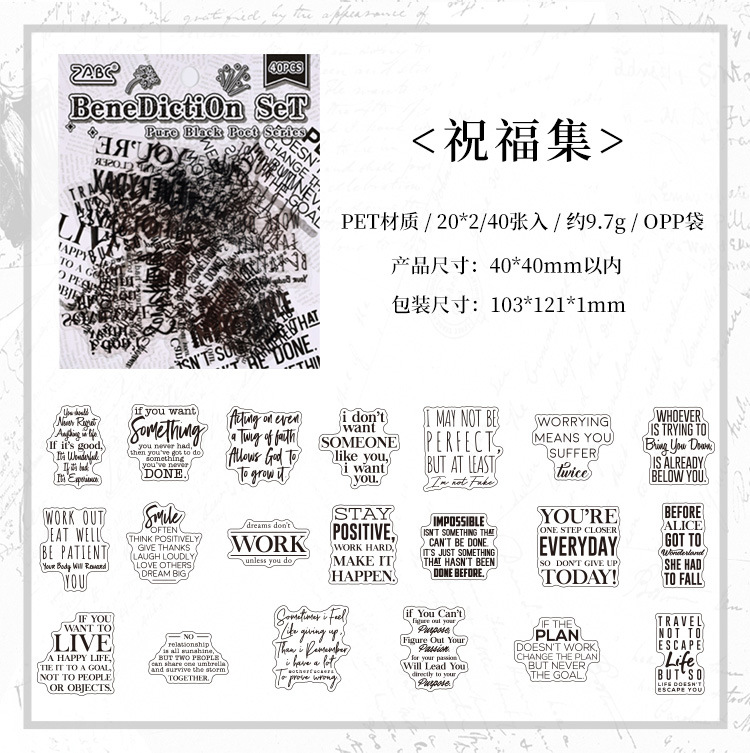 Yuezhen 순수한 검은 시인 창조적 인 스티커 핸드북 스티커 패키지 국경 영어 편지 애완 동물 핸드북 자료 스티커스토어 가기