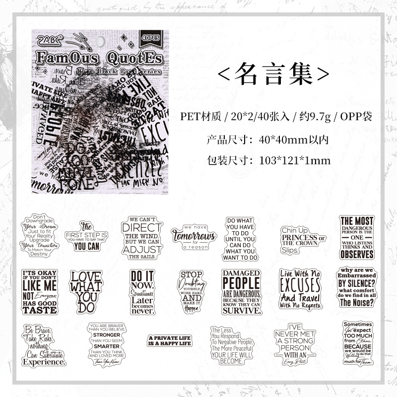 Yuezhen 순수한 검은 시인 창조적 인 스티커 핸드북 스티커 패키지 국경 영어 편지 애완 동물 핸드북 자료 스티커