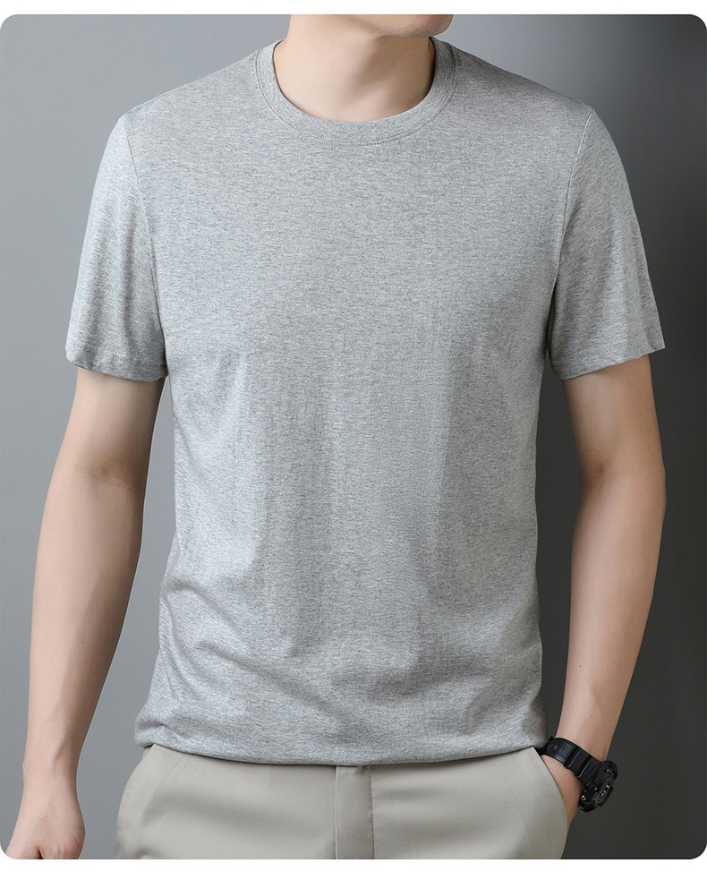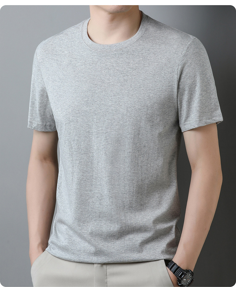 Combed Cotton 100 면 반팔 티셔츠 남성용 둥근 목 단색 간단한 캐주얼 2024 여름 얇은 남성 의류 배치