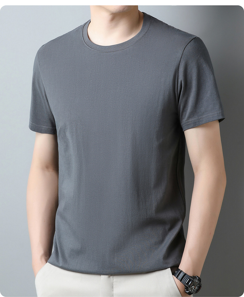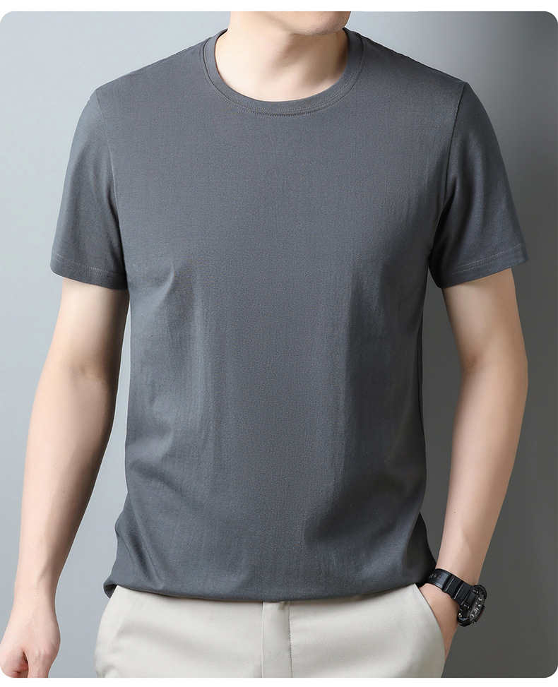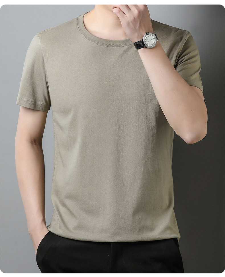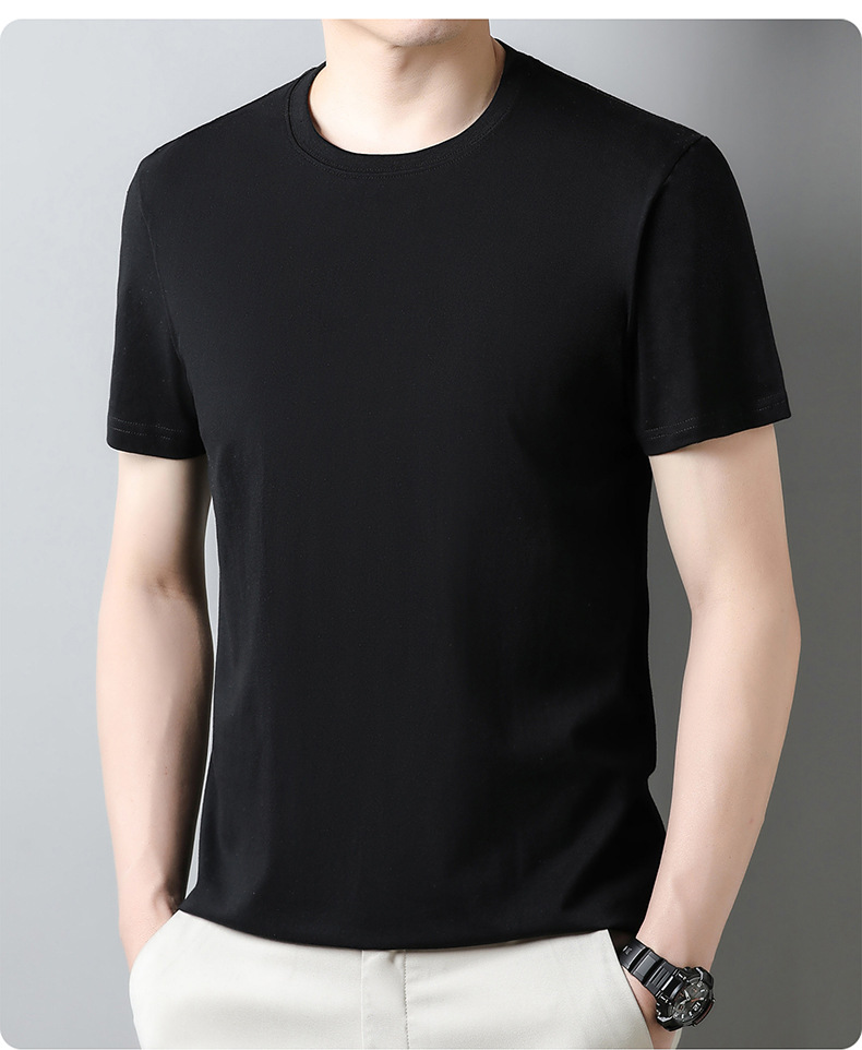 Combed Cotton 100 면 반팔 티셔츠 남성용 둥근 목 단색 간단한 캐주얼 2024 여름 얇은 남성 의류 배치스토어 가기