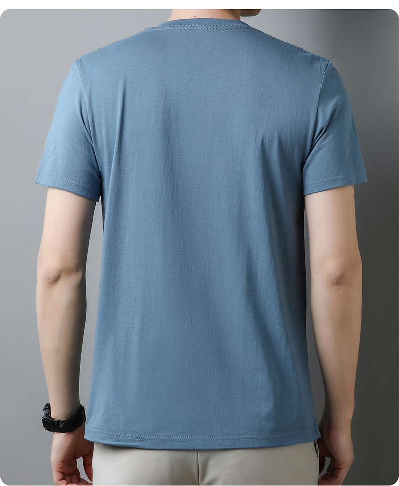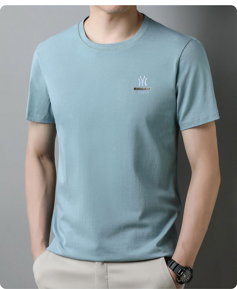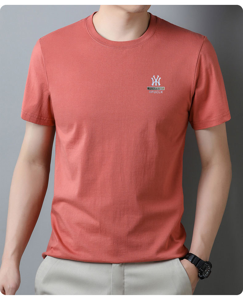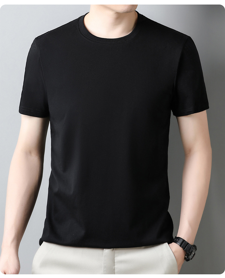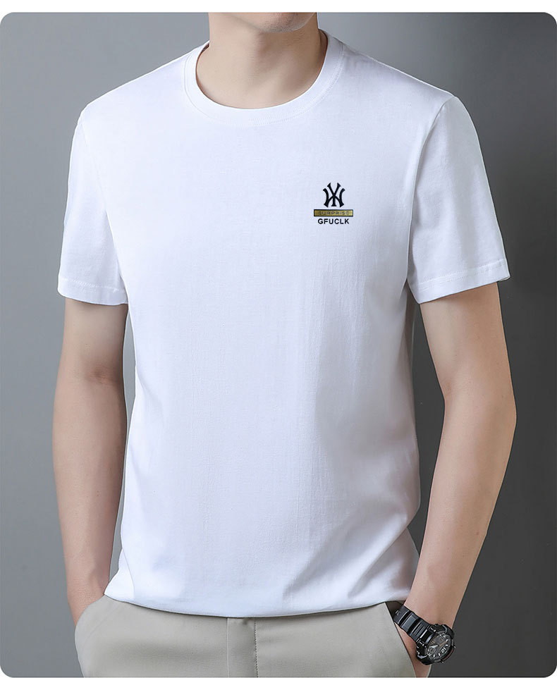 Combed Cotton 100 면 반팔 티셔츠 남성용 둥근 목 단색 간단한 캐주얼 2024 여름 얇은 남성 의류 배치스토어 가기