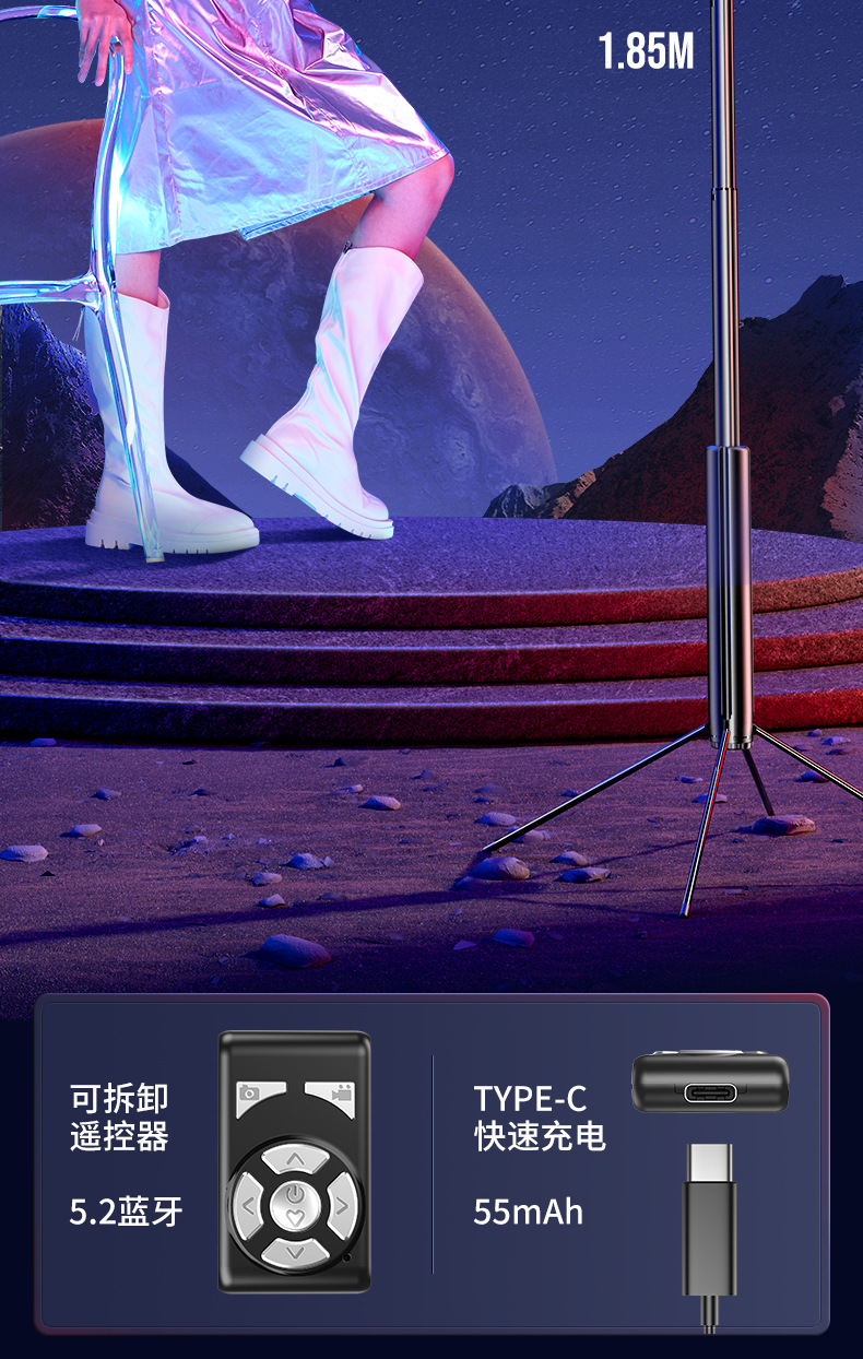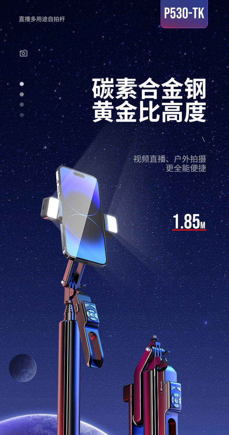 工厂新品批发P530TK蓝牙自拍杆 现货360度AI识人脸别直播手机支架
