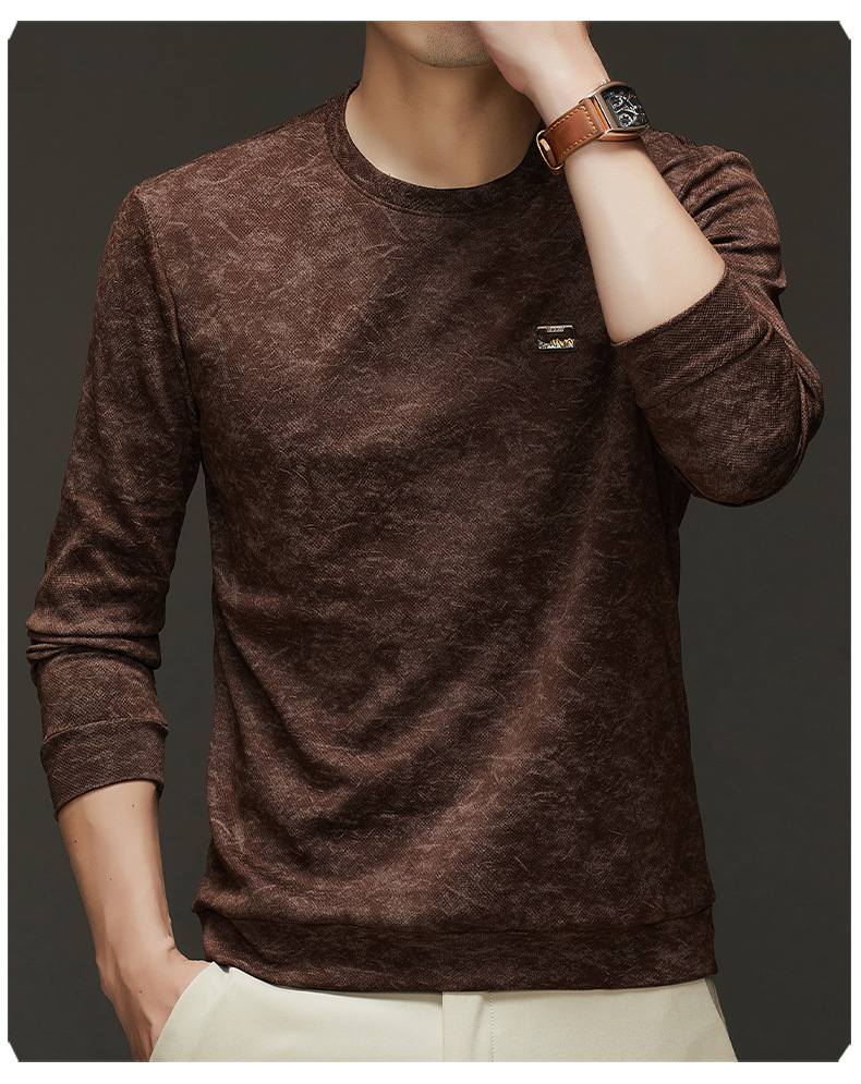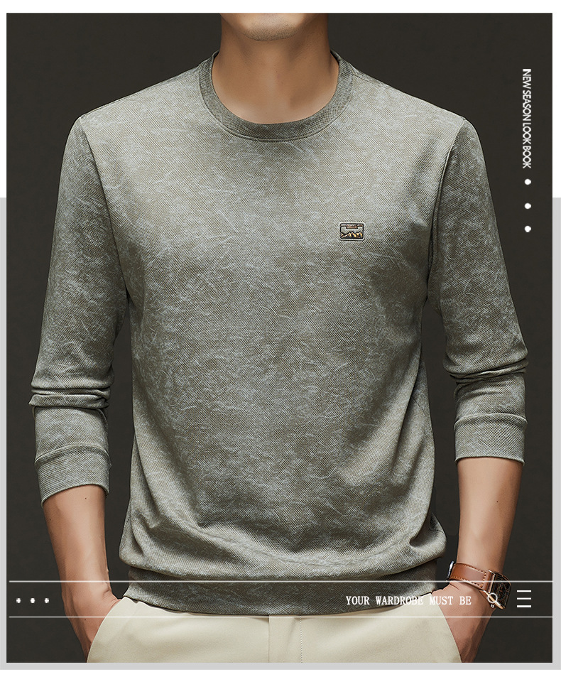 국경 도매 2024 가을 새로운 패션 캐주얼 긴 소매 스웨터 남성용 라운드 넥 티셔츠베이스 셔츠 남성용 헤어