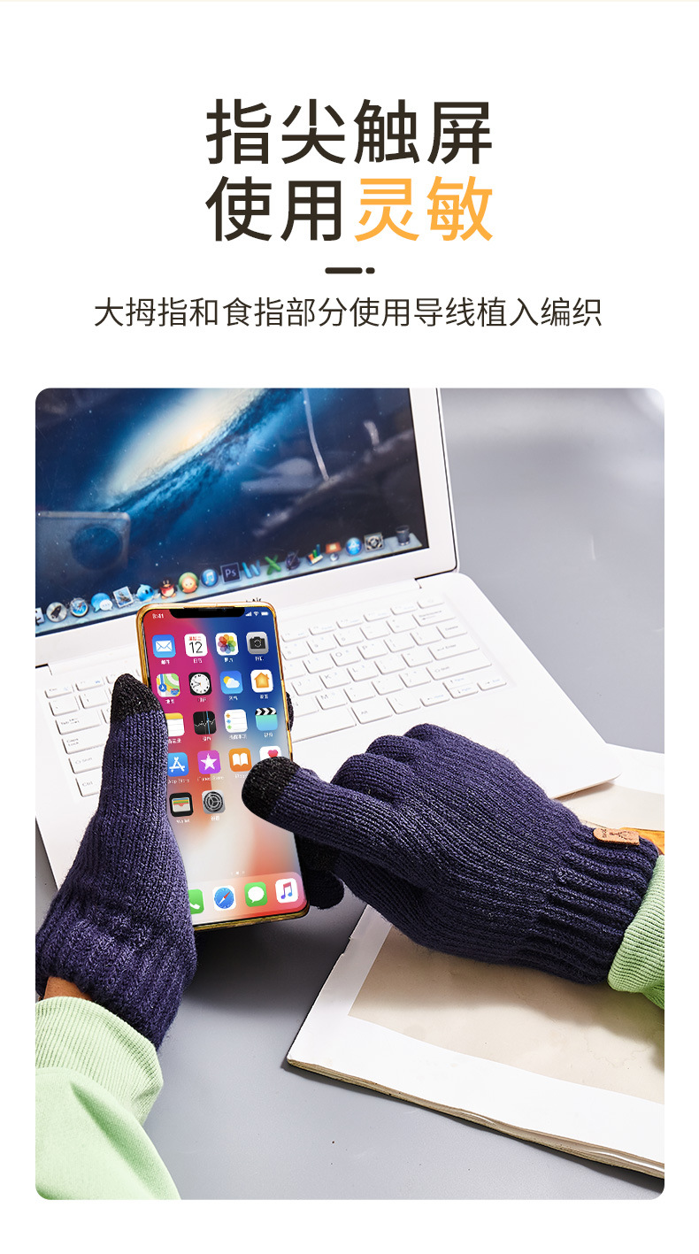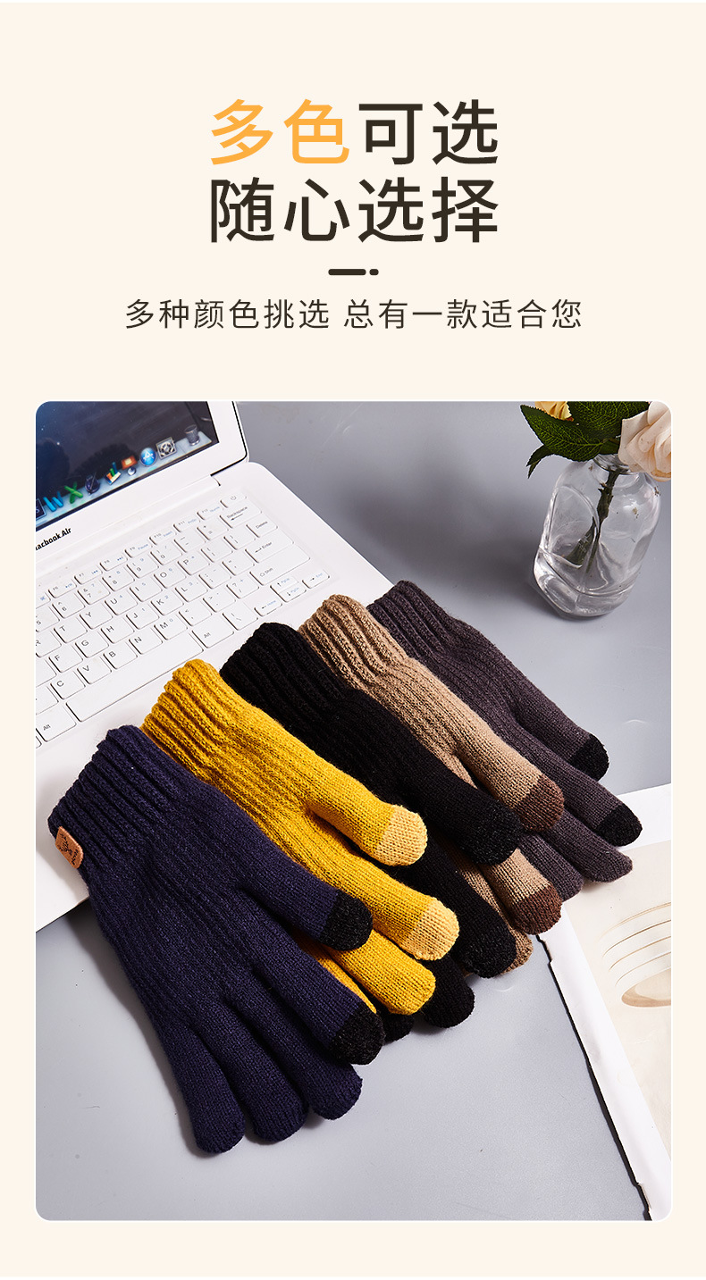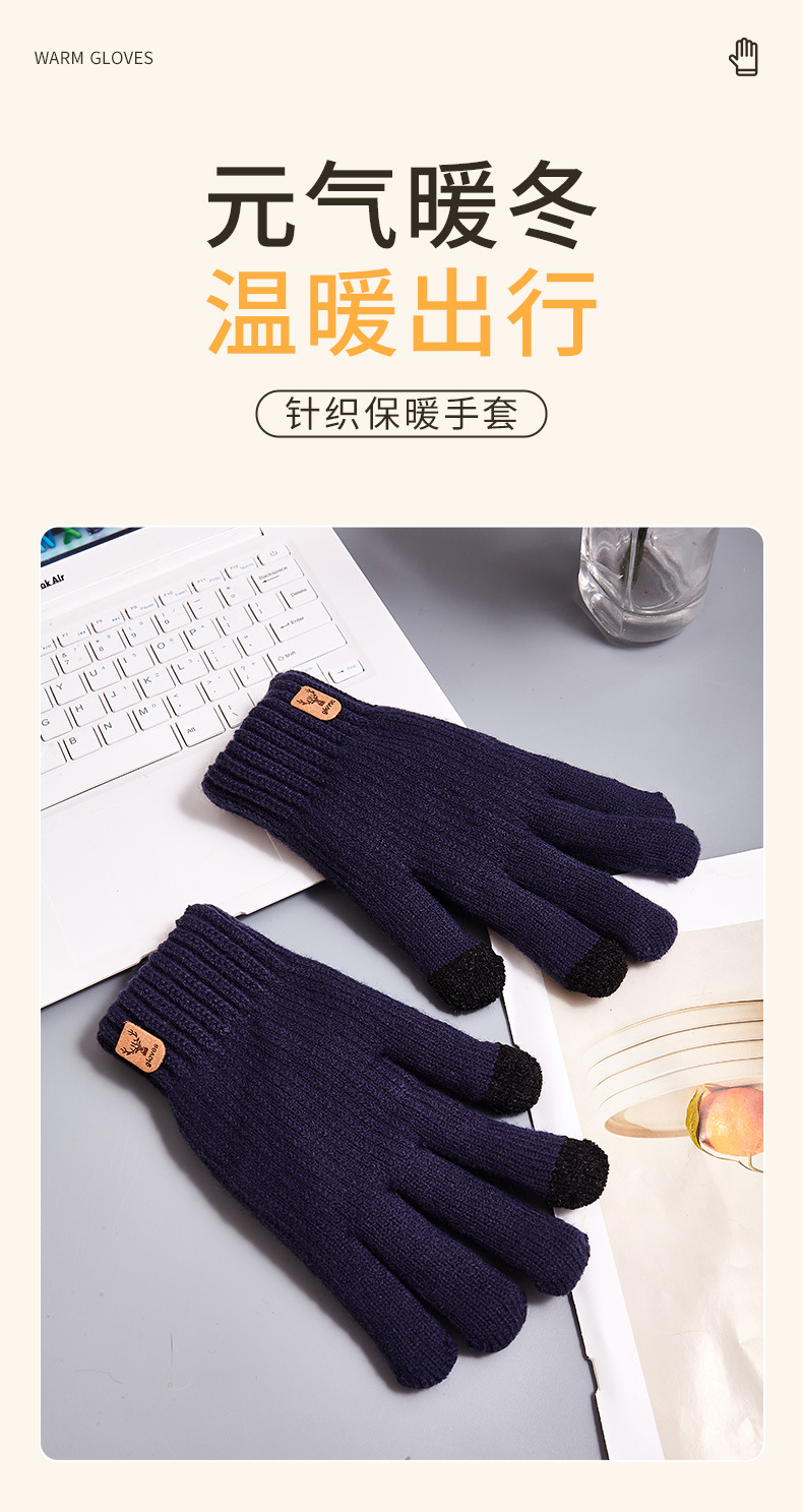크로스보더 이중 레이어 플리스 안감 보온 장갑, 사슴 머리 로고, 터치스크린 가능, 가을 겨울용 니트 장갑스토어 가기
