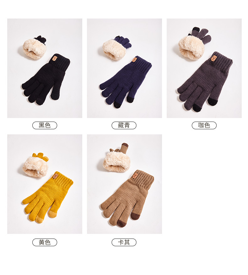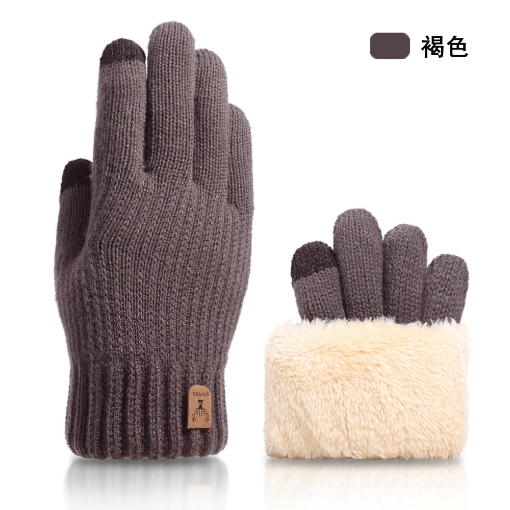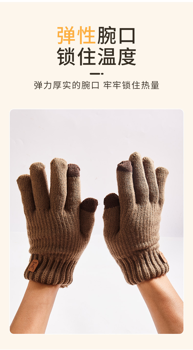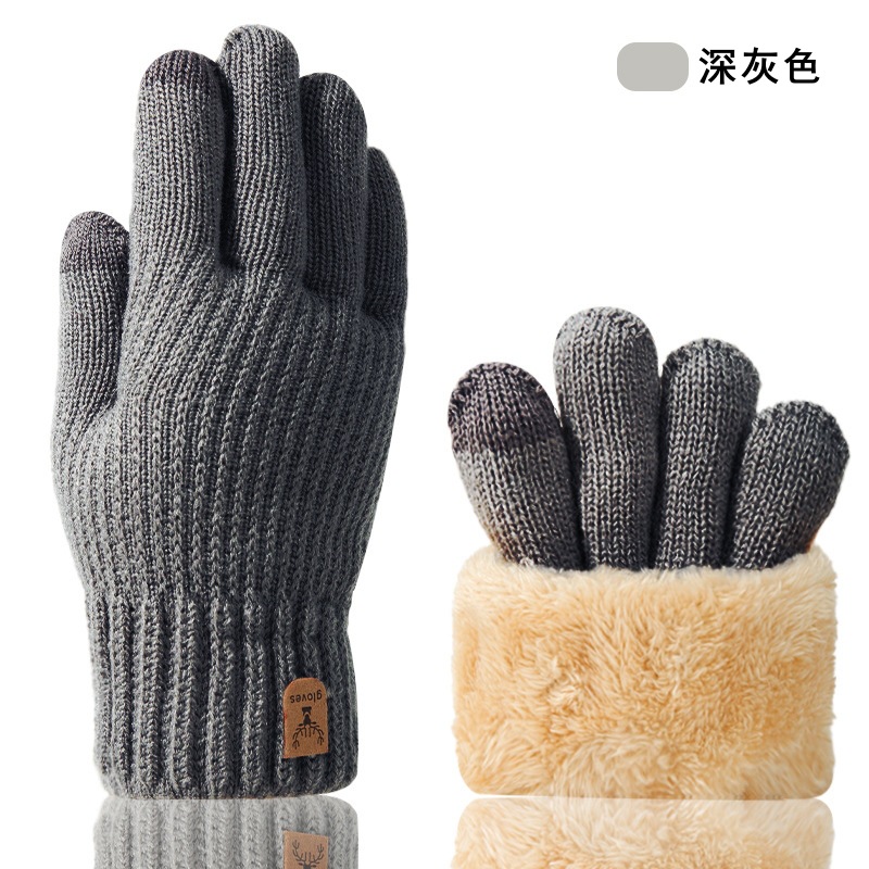 크로스보더 이중 레이어 플리스 안감 보온 장갑, 사슴 머리 로고, 터치스크린 가능, 가을 겨울용 니트 장갑