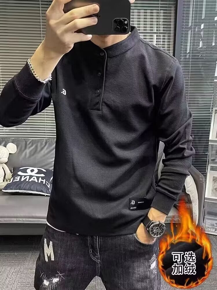 인쇄 된 가을과 겨울 땀 남자의 봄과 가을 2024 한국 스타일 새로운 라운드 넥 루즈 탑 시크한 홍콩 스타일 트렌디스토어 가기