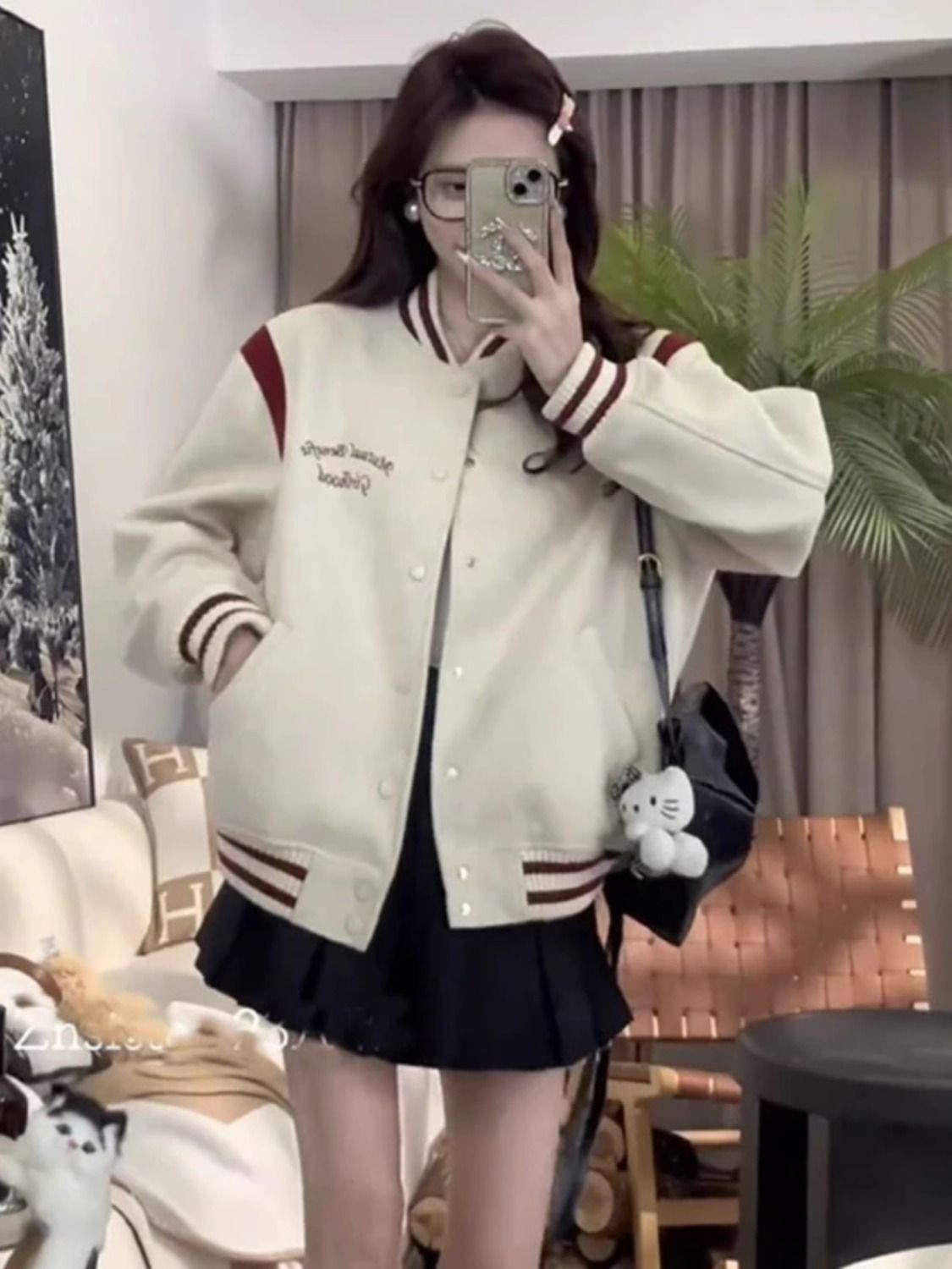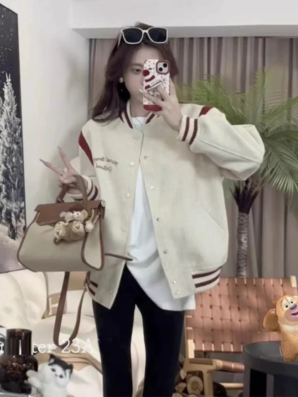 아메리칸 스타일 대학 스타일 야구 세트 코트 여자 2024 봄과 가을 시즌 한국 스타일 느슨한 자수 편지 재킷 트렌디 탑스토어 가기